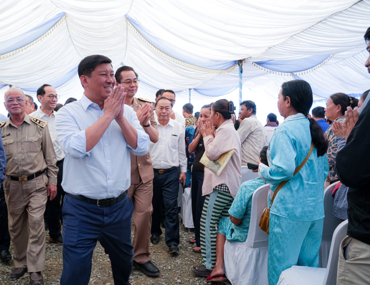 ឯកឧត្តមសន្តិបណ្ឌិត នេត សាវឿន ឧបនាយករដ្ឋមន្រ្តី អញ្ជើញអមដំណើរសម្តេចមហាបវរធិបតី ហ៊ុន ម៉ាណែត អញ្ជើញជាអធិបតីភាពដ៏ខ្ពង់ខ្ពស់ ក្នុងពិធីជួបសំណេះសំណាល សួរសុខទុក្ខ និងចែកអំណោយ ជូនប្រជាពលរដ្ឋភៀសសឹក ស្ថិតនៅស្រុកអូរជ្រៅ ខេត្តបន្ទាយមានជ័យ