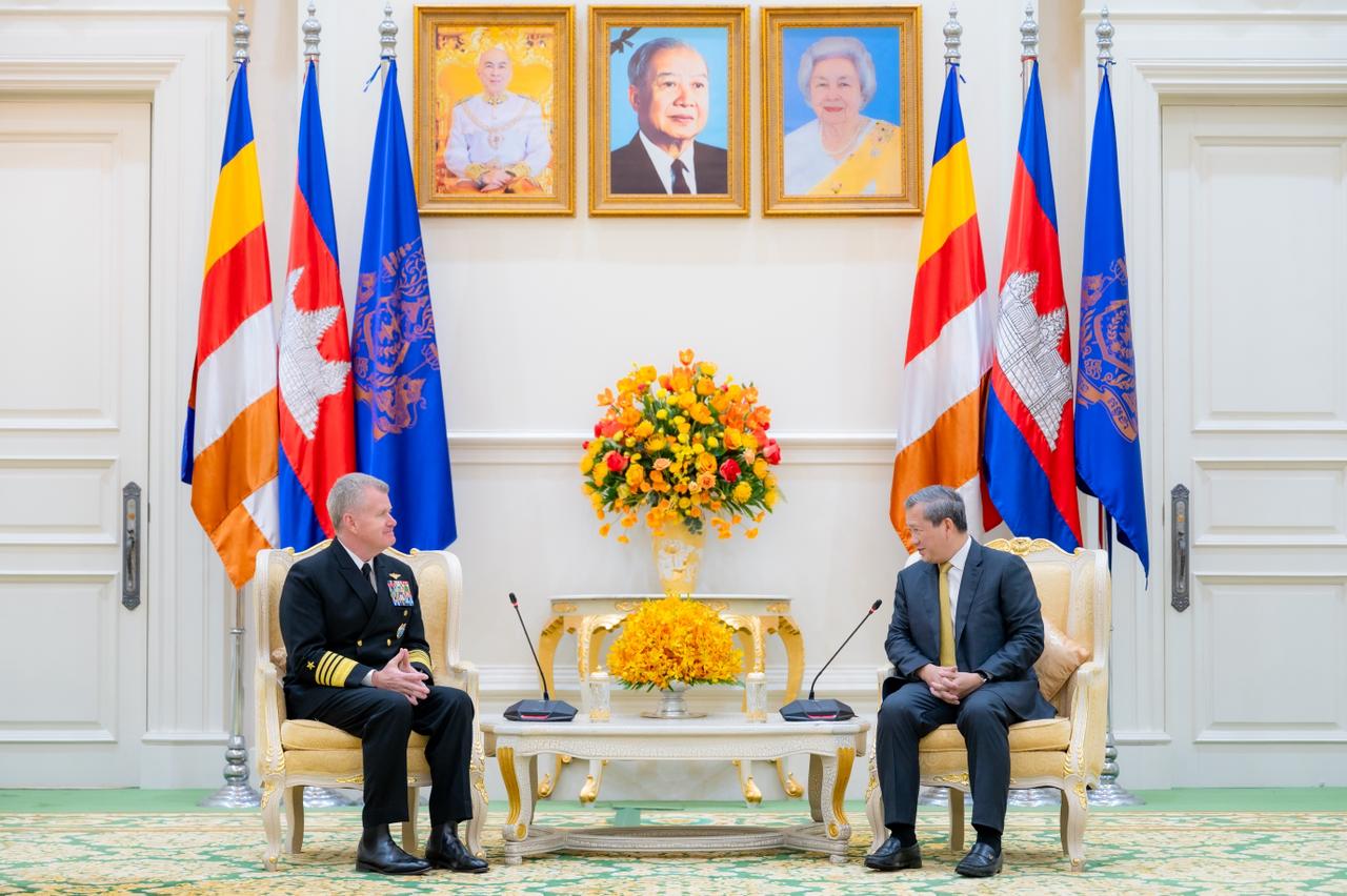 មេបញ្ជាការ នៃបញ្ជាការដ្ឋានឥណ្ឌូ-ប៉ាស៊ីហ្វិកអាម៉េរិក ពេញចិត្ត និងវាយតម្លៃខ្ពស់ចំពោះវឌ្ឍនភាពនៃទំនាក់ទំនងសហរដ្ឋអាម៉េរិក-កម្ពុជា នាព្រឹកថ្ងៃទី២៦ ខែមករា ឆ្នាំ២០២៦, សម្តេចមហាបវរធិបតី ហ៊ុន ម៉ាណែត នាយករដ្ឋមន្ត្រីនៃព្រះរាជាណាចក្រកម្ពុជា បានអនុញ្ញាតឱ្យ ឯកឧត្តម នាយឧត្តមនាវី Samuel Paparo មេបញ្ជាការនៃបញ្ជាការដ្ឋានឥណ្ឌូ-ប៉ាស៊ីហ្វិក នៃសហរដ្ឋអាម៉េរិក ចូលជួបសម្តែងការគួរសម និងពិភាក្សាការងារ នៅវិមានសន្តិភាព។ក្នុងឱកាសនៃជំនួបនេះ, ឯកឧត្តម នាយឧត្តមនាវី Samuel Paparo បានថ្លែងអំណរគុណ និងសម្តែងនូវក្តីសោមនស្សរីករាយដែលបានជួបសម្តេចបវរធិបតីជាថ្មីម្តងទៀត ក្នុងដំណើរបំពេញទស្សនកិច្ចលើកទី២ នៅកម្ពុជា។ ឯកឧត្តមបានសម្តែងការពេញចិត្ត និងវាយតម្លៃខ្ពស់ចំពោះវឌ្ឍនភាពនៃទំនាក់ទំនងសហរដ្ឋអាម៉េរិក-កម្ពុជា ជាពិសេសកិច្ចសហប្រតិបត្តិការលើវិស័យការពារជាតិ។ ជាមួយគ្នានេះ, ឯកឧត្តមបានថ្លែងអំណរគុណចំពោះរាជរដ្ឋាភិបាលកម្ពុជា ដែលបានអនុញ្ញាតឱ្យនាវាកងទ័ពជើងទឹកសហរដ្ឋអាម៉េរិកចូលចតនៅមូលដ្ឋានសមុទ្ររាម ដែលនេះជាសក្ខីភាពឆ្លុះបញ្ចាំងពីការពង្រឹងទំនាក់ទំនងយោធាកាន់តែស៊ីជម្រៅរវាងប្រទេសទាំងពីរ។ជាការឆ្លើយតប, សម្តេចបវរធិបតី បានវាយតម្លៃខ្ពស់ចំពោះកិច្ចសហប្រតិបត្តិការដ៏ល្អប្រសើរលើវិស័យយោធារវាងប្រទេសទាំងពីរ នាពេលកន្លងមក និងបានគូសបញ្ជាក់ថា ការចូលចតនៃនាវាជើងទឹកសហរដ្ឋអាម៉េរិកនៅកម្ពុជា នាពេលនេះ គឺជាលទ្ធផលជាក់ស្តែងនៃទំនាក់ទំនងទ្វេភាគីដែលកំពុងរីកចម្រើន។ សម្តេចបវរធិបតីមានជំនឿយ៉ាងមុតមាំថា ទំនាក់ទំនងរវាងប្រទេសទាំងពីរ នឹងត្រូវបានបន្តពង្រឹង និងពង្រីកបន្ថែមទៀត។ ទន្ទឹមនឹងនេះ, សម្តេចបវរធិបតី បានថ្លែងអំណរគុណយ៉ាងជ្រាលជ្រៅចំពោះ ឯកឧត្តមប្រធានាធិបតី ដូណាល់ ត្រាំ ដែលបានដើរតួនាទីយ៉ាងសំខាន់ក្នុងការជំរុញឱ្យមានបទឈប់បាញ់ កម្ពុជា-ថៃ និងបានធ្វើជាសាក្សីក្នុងពិធីចុះហត្ថលេខាលើ "សេចក្តីថ្លែងការណ៍រួមទីក្រុងគូឡាឡាំពួ" កាលពីថ្ងៃទី២៦ ខែតុលា ឆ្នាំ២០២៥ នៅប្រទេសម៉ាឡេស៊ី។ សម្តេចបវរធិបតី ក៏បានជម្រាបជូនឯកឧត្តមនាយឧត្តមនាវី ថា កម្ពុជាបានទទួលលិខិតអញ្ញើញរបស់ឯកឧត្តមប្រធានាធិបតី ដូណាល់ ត្រាំ ក្នុងការចូលរួម "ក្រុមប្រឹក្សាសន្តិភាព"។ កម្ពុជានឹងចូលរួមក្នុងក្រុមប្រឹក្សាសន្តិភាពនេះ ដែលការណ៍នេះ បានបង្ហាញនូវសុឆន្ទៈ និងការប្តេជ្ញាចិត្តខ្ពស់របស់កម្ពុជាចំពោះសន្តិភាពសកល។ សម្តេចបវរធិបតី ក៏បានជម្រាបជូនឯកឧត្តម នាយឧត្តមនាវី អំពីការវិវត្តជាក់ស្តែង នៃស្ថានភាពព្រំដែនកម្ពុជា-ថៃ និងបានបញ្ជាក់ពីជំហរយ៉ាងច្បាស់លាស់របស់កម្ពុជា ក្នុងការគោរពបទឈប់បាញ់ និងសេចក្តីថ្លែងការណ៍រួមទីក្រុងគូឡាឡាំពួឱ្យបានខ្ជា