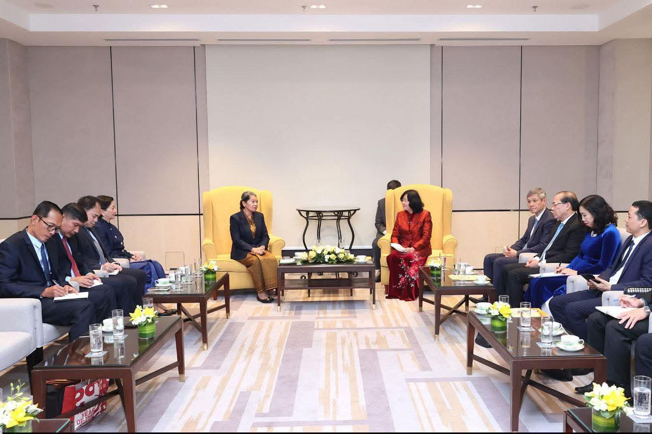 សម្តេចកិត្តិសង្គហបណ្ឌិត ម៉ែន សំអន រណសិរ្សនៃប្រទេសទាំងពីរ មានតួនាទីសំខាន់ណាស់ក្នុងការបន្តពង្រឹង និងពង្រីកនូវទំនាក់ទំនងអ្នកជិតខាងល្អ មិត្តភាពប្រពៃណី និងកិច្ចសហប្រតិបត្តិការគ្រប់ជ្រុងជ្រោយ ឱ្យកាន់តែរឹងមាំ====================ទីក្រុងហាណូយ៖ សម្តេចកិត្តិសង្គហបណ្ឌិត ម៉ែន សំអន ប្រធានក្រុមប្រឹក្សាជាតិរណសិរ្សសាមគ្គី អភិវឌ្ឍន៍មាតុភូមិកម្ពុជា បានជួបសម្តែងការគួរសមជាមួយ លោកជំទាវ បួយ ធីមិញហ័យ (Bùi Thị Minh Hoài) ប្រធានគណៈកម្មាធិការមជ្ឈិមរណសិរ្សមាតុភូមិវៀតណាម នារសៀលថ្ងៃចន្ទ ៨កើត ខែមាឃ ឆ្នាំម្សាញ់ សប្តស័ក ព.ស.២៥៦៩ ត្រូវនឹងថ្ងៃទី២៦ ខែមករា ឆ្នាំ២០២៦។លោកជំទាវ បួយ ធីមិញហ័យ (Bùi Thị Minh Hoài) បានសម្ដែងនូវការស្វាគមន៍យ៉ាងកក់ក្ដៅ និងវាយតម្លៃខ្ពស់ចំពោះដំណើរទស្សនកិច្ចរបស់គណៈប្រតិភូ ថាបានជួបមិត្តចាស់ មិត្តជិតស្និទ្ធ និងជាមិត្តល្អ ដែលតែងតែដើរតួនាទីព្រូនជ្រុំនៃទំនាក់ទំនងកម្ពុជា វៀតណាម ឱ្យកាន់តែរឹងមាំ និងស្ថិតស្ថេរ។ បានជម្រាបជូនអំពីដំណើរការ និងលទ្ធផលនៃមហាសន្និបាតមជ្ឈិមបក្សកុំមុយនីស្ដវៀតណាមលើកទី១៤ ដែលជាក្ដីសង្ឃឹមថ្មីសម្រាប់ប្រជាជនវៀតណាម។លោកជំទាវ ក៏បានសម្ដែងនូវការអបអរសាទរចំពោះការអភិវឌ្ឍ និងសមិទ្ធផលនានា ដែលកម្ពុជាជាបងប្អូនសម្រេចបាន ក្រោមការដឹកនាំដ៏ត្រឹមត្រូវរបស់គណបក្សប្រជាជនកម្ពុជា ដែលមានសម្ដេចតេជោ ជាប្រធាន និងសម្ដេចធិបតី ជានាយករដ្ឋមន្រ្តី ដោយចាត់ទុកជោគជ័យរបស់កម្ពុជា ក៏ដូចជាជោគជ័យរបស់វៀតណាមដែរ។ចំពោះទំនាក់ទំនងនៃប្រទេសទាំងពីរ លោកជំទាវ បានវាយតម្លៃខ្ពស់ថាកំពុងតែត្រូវពង្រឹងពង្រីកស៊ីជម្រៅពីមួយថ្ងៃទៅមួយថ្ងៃ ដែលជាមូលដ្ឋានគ្រឹះសម្រាប់លើកកម្ពស់កិច្ចសហការលើវិស័យសំខាន់ៗរួមមាន ការពារជាតិ សន្តិសុខ វិនិយោគ ថាមពល បច្ចេកវិទ្យា ទេសចរណ៍ សុខាភិបាល និងអប់រំបណ្ដុះបណ្ដាល។ ដោយឡែកបណ្ដាអង្គភាព និងខេត្តជាប់ព្រំដែន ក៏កំពុងតែពង្រឹងពង្រីកនូវភាពជិតសិទ្ធ និងទំនាក់ទំនងល្អពីមួយថ្ងៃទៅមួយថ្ងៃ។ ទំនាក់ទំនងកាន់តែស៊ីជម្រៅ និងរឹងមាំរវាងប្រទេសទាំងពីរនេះ ត្រូវបានលោកជំទាវមើលឃើញថា ពិតជាមិនអាចកាត់ផ្ដាច់បានពីតួនាទីដ៏សកម្ម និងរស់រវើករបស់ សម្តេចកិត្តិសង្គហបណ្ឌិត ម៉ែន សំអន បានឡើយ។ លោកជំទាវក៏បានគោរពអញ្ជើញ សម្តេចកិត្តិសង្គហបណ្ឌិត ម៉ែន សំអន ដឹកនាំប្រតិភូក្រុមប្រឹក្សាជាតិរណសិរ្សសាមគ្គី អភិវឌ្ឍន៍មាតុភូមិកម្ពុជា បំពេញទស្សនកិច្ចនៅប្រទេសវៀតណាម ដើម្បីជួបពិភាក្សា និងផ្លាស់ប្ដូរទស្សនៈគ្នា សំដៅលើកកម្ពស់តួនាទីរបស់រណសិរ្សនៃប្រទេសទាំងពីរ ក្នុងការរួមចំណែកធ្វើឱ្យទំនាក់ទំនងនៃប្រទេសទាំងពីរកាន់តែរឹងមាំ និងយល់ជ្រួតជ្រាបដល់ស្រទាប់យុវជនជំនាន់ក្រោយ ព្រមទាំងចុះហត្ថលេខ