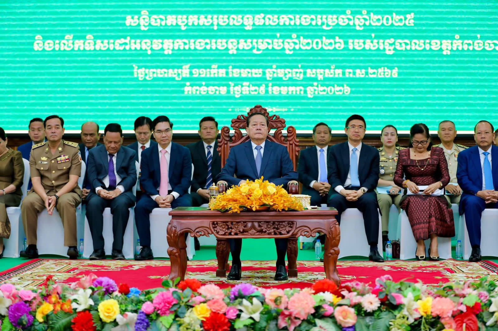 ឯកឧត្តមសន្តិបណ្ឌិត នេត សាវឿន ឧបនាយករដ្ឋមន្ត្រី អញ្ចើញជាអធិបតីភាពដ៏ខ្ពង់ខ្ពស់ក្នុងពិធីបិទសន្និបាតបូកសរុបលទ្ធផលការងារប្រចាំឆ្នាំ២០២៥ និងលើកទិសដៅអនុវត្តការងារបន្ដសម្រាប់ឆ្នាំ២០២៦ របស់រដ្ឋបាលខេត្តកំពង់ចាម==============(កំពង់ចាម)៖នៅព្រឹកថ្ងៃព្រហស្បតិ៍ ១១កើត ខែមាឃ ឆ្នាំម្សាញ់ សប្ដស័ក ព.ស ២៥៦៩ ត្រូវនឹងថ្ងៃទី២៩ ខែមករា ឆ្នាំ២០២៦ ឯកឧត្តមសន្តិបណ្ឌិត នេត សាវឿន ឧបនាយករដ្ឋមន្ត្រី និងជាប្រធានក្រុមការងាររាជរដ្ឋាភិបាលចុះមូលដ្ឋានខេត្តកំពង់ចាម បានអញ្ចើញជាអធិបតីភាពដ៏ខ្ពង់ខ្ពស់ក្នុងពិធីបិទសន្និបាតបូកសរុបលទ្ធផលការងារប្រចាំឆ្នាំ២០២៥ និងលើកទិសដៅអនុវត្តការងារបន្ដសម្រាប់ឆ្នាំ២០២៦ របស់រដ្ឋបាលខេត្តកំពង់ចាម។ពិធីនេះប្រារព្ធធ្វើឡើងនៅសាលាខេត្តកំពង់ចាម ។ពិធីនេះក៏មានការអញ្ជើញចូលរួមពី រដ្ឋលេខាធិការ-អនុរដ្ឋលេខាធិការ ក្រសួងមហាផ្ទៃ, ប្រធានក្រុមប្រឹក្សាខេត្ត-អភិបាលខេត្ត, អគ្គនាយក, អគ្គស្នងការរង-អគ្គនាយករង និងអ្នកពាក់ព័ន្ធជាច្រើនរូបទៀត ពិធីនេះប្រារព្ធធ្វើឡើងនៅសាលាខេត្តកំពង់ចាម៕ក្នុងឱកាសនោះ ឯកឧត្តមសន្ដិបណ្ឌិត នេត សាវឿន ឧបនាយករដ្នមន្ត្រី បានថ្លែងការកោតសរសើរ ដល់រដ្ឋបាលខេត្ត, សមត្ថកិច្ចជំនាញ និងអ្នកពាក់ព័ន្ធ ដែលបានរួមគ្នាធ្វើខេត្តកំពង់ចាម ទទួលបានជោគជ័យយ៉ាងត្រចះត្រចង់ ជាពិសេសរដ្ឋបាលខេត្ត ក្រោមការការដឹកនាំរបស់ ឯកឧត្តម អ៊ុន ចាន់ដា អភិបាលនៃគណៈអភិបាលខេត្ត។ឯកឧត្តមសន្ដិបណ្ឌិត ក៏បានជំរុញឱ្យធ្វើការបង្ក្រាបបទល្មើសដែលប៉ះពាល់ធ្ងន់ធ្ងរដល់សង្គម ដូចជាគ្រឿងញៀន និងក្រុម ក្មេងទំនើង ព្រមទាំងខិតខំជំរុញការអនុវត្តគោលនយោបាយ “ភូមិ ឃុំ សង្កាត់មានសុវត្ថិភាព” ដោយមានកម្លាំងប្រមូលផ្តុំនៅក្នុងការ បង្ការ ទប់ស្កាត់ និងបង្ក្រាបបទល្មើសគ្រប់ប្រភេទនៅមូលដ្ឋាន របស់ខ្លួន។ថ្លែងបែបនេះក្នុងឱកាសបិទអង្គសន្និបាតបូកសរុបលទ្ធផលការងារប្រចាំឆ្នាំ២០២៥ និង លើកទិសដៅបន្តរបស់រដ្ឋបាលខេត្តកំពង់ចាម នាព្រឹកថ្ងៃទី២៩ ខែមករា ឆ្នាំ២០២៦។ឯកឧត្តមសន្តិបណ្ឌិត នេត សាវឿន បានណែនាំដល់អាជ្ញាធរ ក៏ដូចជា កងកម្លាំងមានសមត្ថកិច្ចក្នុងខេត្តកំពង់ចាម ត្រូវបន្តថែរក្សាការពារឱ្យបានគត់ម៉ត់នូវសុខសន្តិភាព ស្ថិរភាពនយោបាយ និង ការពារឱ្យបានជាដាច់ខាតនូវបូរណភាពទឹកដី និងអធិបតេយ្យភាពជាតិ ដែលមិនអនុញ្ញាតឱ្យមានការរំលោភបំពានបានឡើយ ពិសេសត្រូវបង្ការទប់ស្កាត់ និងបង្ក្រាបឱ្យ ខាងតែបាននូវរាល់សកម្មភាព ឬទង្វើដែលប៉ុនប៉ងធ្វើឱ្យកម្ពុជា ធ្លាក់ចូលទៅក្នុងស្ថានភាពសង្គ្រាម ភាពចលាចល វឹកវរក្នុងសង្គម៕