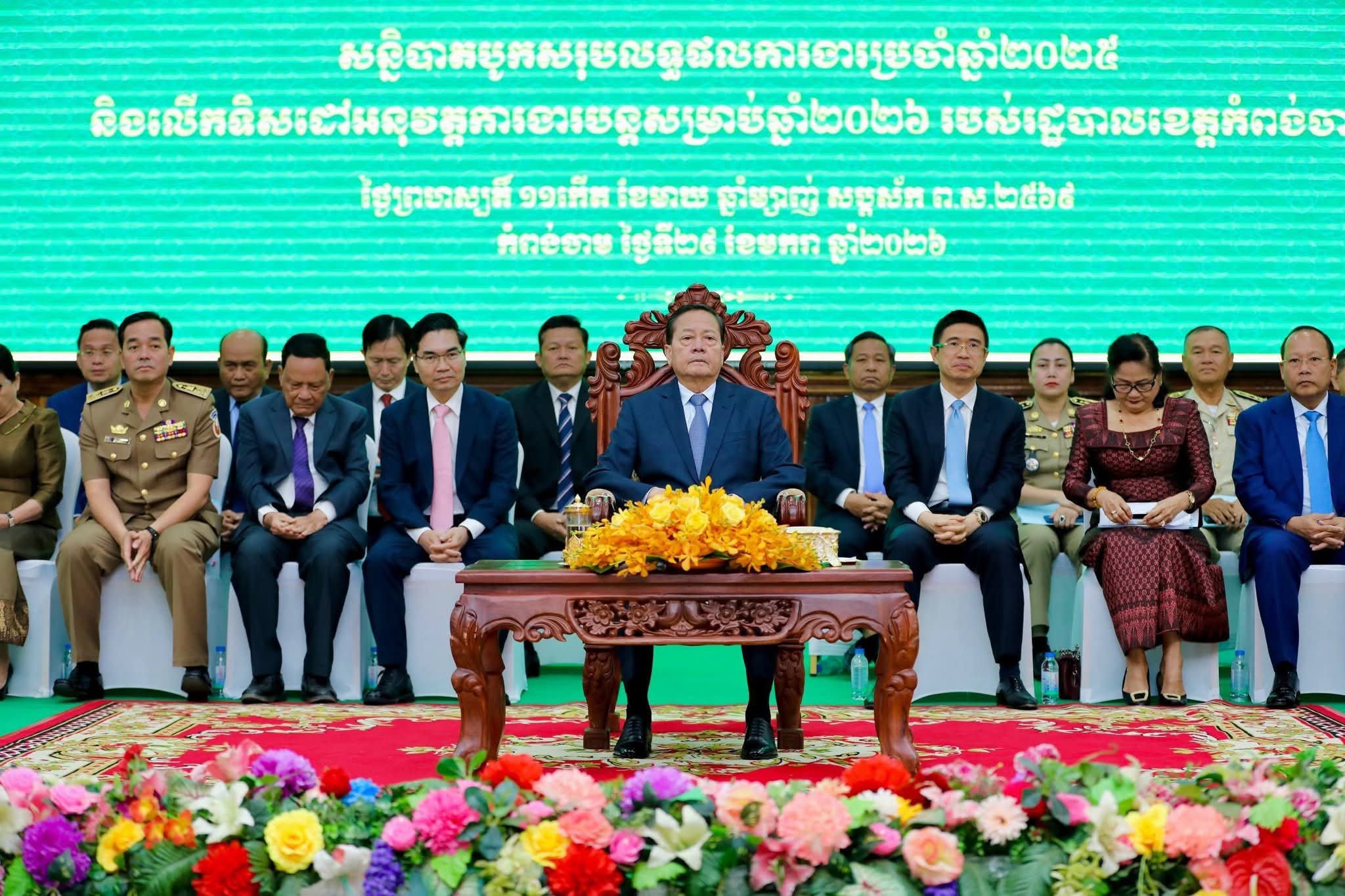 អបអរសាទរ ពិធីបិទសន្និបាតបូកសរុបលទ្ធផលការងារប្រចាំឆ្នាំ២០២៥ និង លើកទិសដៅបន្តរបស់រដ្ឋបាលខេត្តកំពង់ចាម ឆ្នាំ២០២៦ ក្រោមអធិបតីភាពដ៏ខ្ពង់ខ្ពស់ឯកឧត្តមសន្តិបណ្ឌិត នេត សាវឿន ឧបនាយករដ្ឋមន្ត្រី នៅព្រឹកថ្ងៃទី២៩ ខែមករា ឆ្នាំ២០២៦ ឯកឧត្តម អ៊ុន ចាន់ដា អភិបាលនៃគណៈអភិបាលខេត្តកំពង់ចាម និង ឯកឧត្តម ខ្លូត ផន ប្រធានក្រុមប្រឹក្សាខេត្ត បានអញ្ជើញចូលរួមក្នុងពិធី អបអរសាទរ ពិធីបិទសន្និបាតបូកសរុបលទ្ធផលការងារប្រចាំឆ្នាំ២០២៥ និង លើកទិសដៅបន្តរបស់រដ្ឋបាលខេត្តកំពង់ចាម ឆ្នាំ២០២៦ ក្រោមអធិបតីភាពដ៏ខ្ពង់ខ្ពស់ ឯកឧត្តមសន្តិបណ្ឌិត នេត សាវឿន ឧបនាយករដ្ឋមន្ត្រី ទទួលបន្ទុកប្រធាន អាជ្ញាធរជា តិប្រយុទ្ធប្រឆាំងគ្រឿងញៀន និងជាប្រធានក្រុមការងាររាជរដ្ឋាភិបាល ចុះមូលដ្ឋានខេត្តកំពង់ចាម ដែលប្រព្រឹតទៅ នៅសាសាខេត្តកំពង់ចាម។ នាឱកាសនោះ ឯកឧត្តម អ៊ុន ចាន់ដា អភិបាលខេត្តកំពង់ចាម បានអះអាងថា ក្នុងការអនុវត្ត បទបញ្ជា របស់រាជរដ្ឋាភិបាលកម្ពុជា ក្នុងភូមិសាស្ត្រខេត្តកំពង់ចាម មិនមានអំពើឆបោកតាមប្រព័ន្ធ បច្ចេកវិទ្យា (Online scams) នោះទេ ហើយក៏គ្មានការហើរចូលពីខាងក្រៅនៃជនសង្ស័យដើម្បី សម្ងំលាក់ខ្លួន ឬបង្កើត ការឆបាកតាមប្រព័ន្ធបច្ចេកវិទ្យា និងក៏គ្មានការបង្ខាំងមនុស្សឡើយ។ ជាមួយគ្នានេះដែរ រដ្ឋបាលខេត្ត ក៏បានផ្សព្វផ្សាយ និងធ្វើការណែនាំឱ្យមន្ត្រីរាជការ លោកគ្រូអ្នកគ្រូ សិស្សានុសិស្ស និងបងប្អូនប្រជា ពលរដ្ឋ បាននឹងចេះប្រើប្រាស់នូវកម្មវិធី App No Drug ដើម្បី រួមចំណែកក្នុងសង្គម រួមគ្នាទប់ស្កាត់ការ ជួញដូរ ការចែកចាយ និងការប្រើប្រាស់គ្រឿងញៀនផងដែរ។ឯកឧត្តមអភិបាលខេត្ត ថ្លែងបញ្ជាក់ថា អ្វីដែលជាមោទនភាពដ៏ឧត្តុង្គឧត្តមរបស់រដ្ឋបាលខេត្តកំពង់ចាម សម្រាប់ឆ្នាំនេះគឺ ១-អង្គភាពការិយាល័យច្រកចេញចូលតែមួយខេត្ត, ២-ការិយាល័យប្រជាពលរដ្ឋ និង ៣- មន្ទីរបង្អែកខេត្តកំពង់ចាម បានជាប់ចំណាត់ថ្នាក់ថ្នាក់លេខ១ នៅទូទាំងប្រទេសកម្ពុជា។ ឯកឧត្តម បានថ្លែងអំណរគុណ ចំពោះមន្ត្រីអង្គភាពទាំងបី ដែលកន្លងបាន ខិតខំ ប្រឹងប្រែង លះបង់ ពេលវេលា ផ្តល់សេវាព្យាបាលជម្ងឺ ជូនប្រជាពលរដ្ឋ ទាំងយប់ ទាំងថ្ងៃ ដោយមិនគិតពីការងើយហត់ ដើម្បីផ្តល់សេវាសាធារណៈជូនប្រជាពលរដ្ឋ យកទៅប្រើប្រាស់។ ឯកឧត្តម បានផ្តាំផ្ញើឲ្យ ប្រធានមន្ទីរបង្អែកខេត្តកំពង់ចាម ការិយាល័យច្រកចេញចូលតែមួយ ការិយាល័យប្រជាពលរដ្ឋ សុំបន្ត ថែរក្សាខ្សែក្រវាត់របស់ខ្លួនបានស្ថិតស្ថេរ យូរអង្វែង កុំឲ្យរបូតចេញចំណាត់ថ្នាក់ ដោយត្រូវបន្ថែម ការងារ រុករក កែឆ្នៃ បង្កើនសមត្ថភាព ក្នុងការផ្តល់សេវាជូនប្រជាពល រដ្ឋ ឲ្យកាន់តែល្អប្រសើរបន្តទៅទៀត។ក្នុងឱកាសនោះ ឯកឧត្តមសន្ដិបណ្ឌិត នេត សាវឿន បានថ្លែងការ