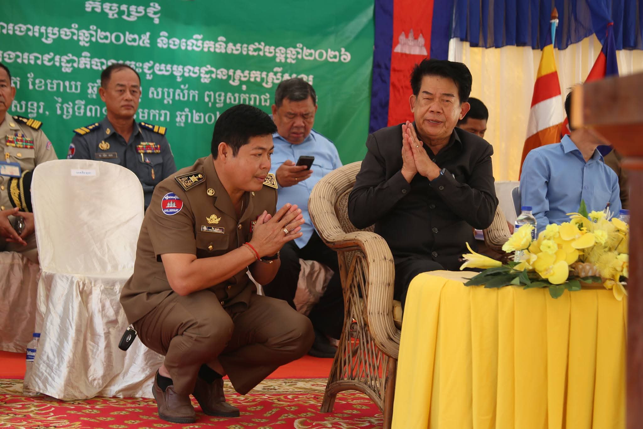 ឯកឧត្តម វ៉ី សំណាង និងលោកជំទាវ អញ្ជើញអមរដំណើរ សម្តេចកិត្តិសង្គហបណ្ឌិត ម៉ែន សំអន ក្នុងពិធីបួងសួងសុំសេចក្តីសុខ សេចក្តីចម្រើន និងសុខសន្តិភាព ជូនដល់ព្រះរាជាណាចក្រកម្ពុជា នៅប្រាសាទបាយ៉ង់កោរ ស្ថិតក្នុងស្រុកគិរីវង់ ខេត្តតាកែវ