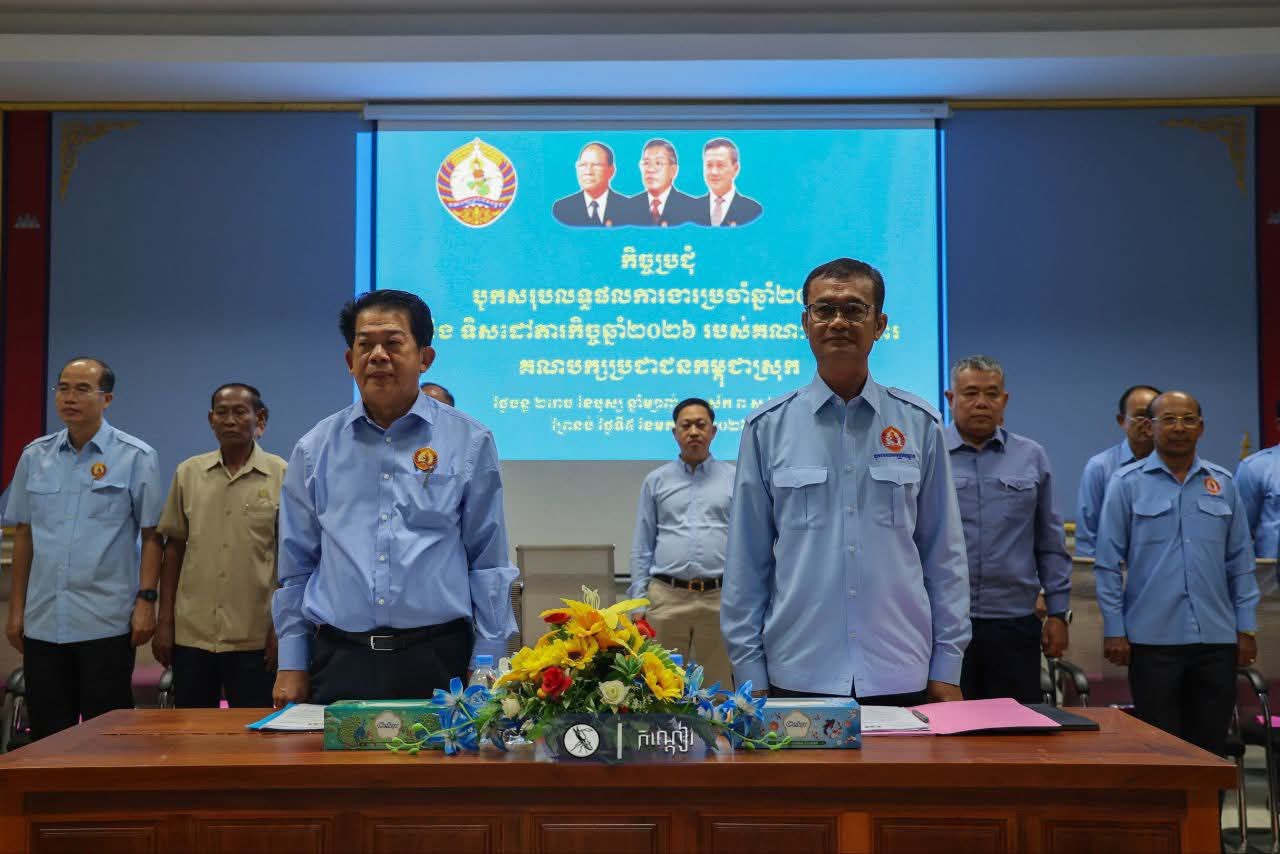 ឯកឧត្តម លូ គឹមឈន់ ប្រធានក្រុមការងារគណបក្សចុះមូលដ្ឋានស្រុកព្រៃនប់ អញ្ចើញជាអធិបតីដឹកនាំកិច្ចប្រជុំបូកសរុបលទ្ធផលការងារប្រចាំឆ្នាំ២០២៥ និងទិសដៅភារកិច្ចឆ្នាំ២០២៦ របស់គណៈកម្មាធិការគណបក្សប្រជាជនកម្ពុជាស្រុកព្រៃនប់===============(ព្រះសីហនុ)៖នាព្រឹកថ្ងៃចន្ទ ២រោច ខែបុស្ស ឆ្នាំម្សាញ់ សប្តស័ក ពុទ្ធសករាជ ២៥៦៩ ត្រូវនឹងថ្ងៃទី៥ ខែមករា ឆ្នាំ២០២៦ ឯកឧត្តម លូ គឹមឈន់ សមាជិក គណៈកម្មាធិការកណ្តាល គណបក្សប្រជាជនកម្ពុជា និងប្រធានក្រុមការងារគណបក្សចុះមូលដ្ឋានស្រុកព្រៃនប់ រួមជាមួយឯកឧត្តម សូ ខនឬទ្ធីគុណ សមាជិកគណៈកម្មាធិការកណ្ដាល និងជាអនុប្រធានទី១ ក្រុមការងារគណបក្សចុះមូលដ្ឋានស្រុកព្រៃនប់ បានចូលរួមជាអធិបតីក្នុងកិច្ចប្រជុំបូកសរុបលទ្ធផលការងារប្រចាំឆ្នាំ២០២៥ និងទិសដៅភារកិច្ចឆ្នាំ២០២៦ របស់គណៈកម្មាធិការគណបក្សប្រជាជនកម្ពុជាស្រុកព្រៃនប់ នៅទីស្នាក់ការគណបក្សស្រុកព្រៃនប់ ខេត្តព្រះសីហនុ ។