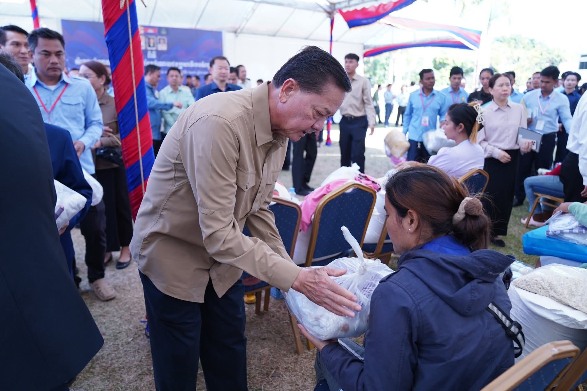 ឯកឧត្តមសន្តិបណ្ឌិត នេត សាវឿន ឧបនាយករដ្ឋមន្រ្តី អញ្ជើញអមដំណើរសម្តេចមហាបវរធិបតី ហ៊ុន ម៉ាណែត អញ្ជើញជាអធិបតីភាពដ៏ខ្ពង់ខ្ពស់ ក្នុងពិធីជួបសំណេះសំណាល សួរសុខទុក្ខ និងចែកអំណោយ ជូនប្រជាពលរដ្ឋភៀសសឹក ស្ថិតនៅស្រុកអូរជ្រៅ ខេត្តបន្ទាយមានជ័យ