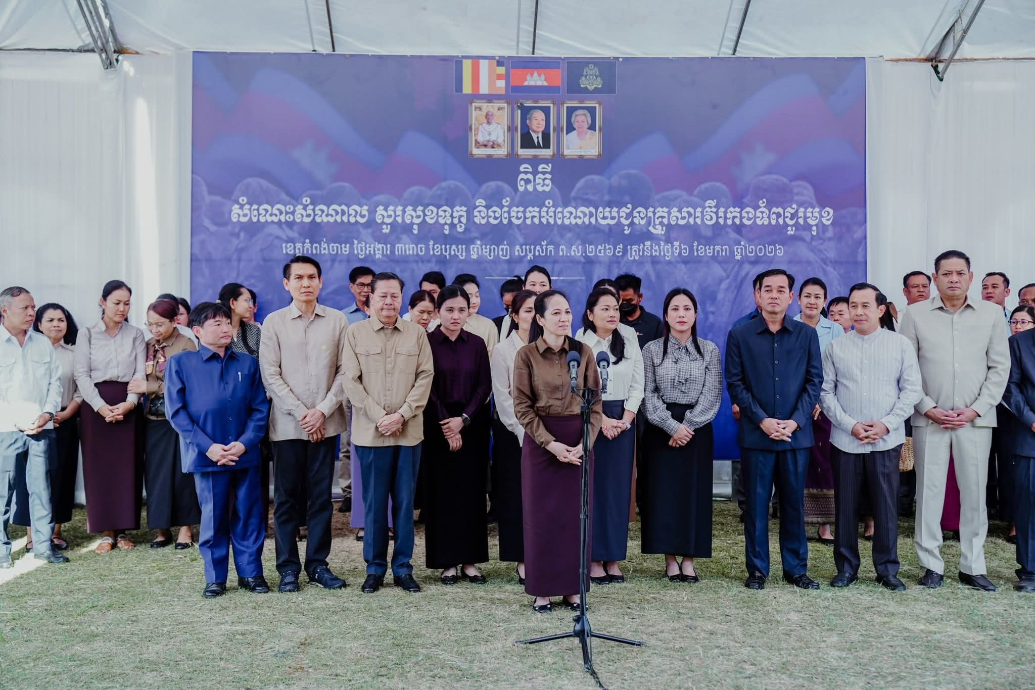 លោក ប៊ិន ឡាដា អភិបាលស្រុកស្រីសន្ធរ បានដឹកនាំគ្រួសារកងទ័ព និងកុមារភៀសសឹក ក្នុងស្រុកស្រីសន្ធរ ដើម្បីចូលរួមពិធីសំណេះសំណាល សួរសុខទុក្ខ និងទទួលអំណោយ ពីលោកជំទាវបណ្ឌិត ពេជ ចន្ទមុន្នី ហ៊ុនម៉ាណែត នៅមុខសាលាខេត្តកំពង់ចាម==============នាព្រឹកថ្ងៃអង្គារ ៣រោច ខែបុស្ស ឆ្នាំម្សាញ់ សប្តស័ក ពុទ្ធសករាជ ២៥៦៩ ត្រូវនឹងថ្ងៃទី៦ ខែមករា ឆ្នាំ២០២៦ លោក ប៊ិន ឡាដា អភិបាល នៃគណៈអភិបាលស្រុកស្រីសន្ធរ លោក លោកស្រីអភិបាលរង និងលោកមេឃុំ បានអញ្ចើញដឹកនាំគ្រួសារកងទ័ព ស្រ្តីមានផ្ទៃពោះ និងកុមារភៀសសឹក ក្នុងស្រុកស្រីសន្ធរ សរុបចំនួន ៥៩នាក់ ស្រី ៣៣នាក់ ដើម្បីចូលរួមពិធីសំណេះសំណាល សួរសុខទុក្ខ និងទទួលអំណោយដោយផ្ទាល់ពីលោកជំទាវបណ្ឌិត ពេជ ចន្ទមុន្នី ហ៊ុន ម៉ាណែត ដែលពិធីនេះប្រព្រឹត្តទៅនៅមុខសាលាខេត្តកំពង់ចាម។មានប្រសាសន៍ថ្លែងក្នុងពិធីនេះ លោកជំទាវបណ្ឌិត ពេជ ចន្ទមុន្នី ហ៊ុន ម៉ាណែត បានពាំនាំប្រសាសន៍ផ្តាំផ្ញេីសួរសុខទុក្ខប្រកបដោយការគិតគូរដ៏ខ្ពង់ខ្ពស់បំផុតរបស់សម្តេចអគ្គមហាសេនាបតីតេជោ ហ៊ុន សែន និងសម្តេចកិតិ្តព្រឹទ្ធបណ្ឌិត ប៊ុន រ៉ានី ហ៊ុនសែន ព្រមទាំងសម្តេចធិបតី ហ៊ុន ម៉ាណែត ជូនក្រុមគ្រួសាររបស់វីរកងទ័ពគ្រប់រូប។ បន្ថែមពីនេះ លោកជំទាវបណ្ឌិត បាននាំយកអំណោយដ៏ថ្លៃថ្លាបំផុតរបស់ សម្តេចបវរធិបតី និងលោកជំទាវបណ្ឌិតផ្ទាល់ ប្រគល់ជូនសមាជិកក្រុមគ្រួសារវីរកងទ័ពគ្រប់ៗរូប ដើម្បីប្រើប្រាស់ និងសម្រួលដល់ជីវភាពរស់នៅប្រចាំថ្ងៃ ។