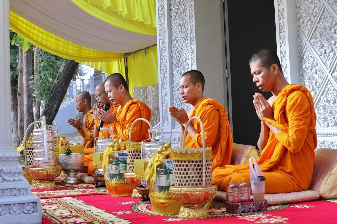 សម្តេចកិត្តិសង្គហបណ្ឌិត ម៉ែន សំអន អញ្ជើញជាបួងសួងសុំសេចក្តីសុខ សេចក្តីចម្រើន និងសុខសន្តិភាព ជូនដល់ព្រះរាជាណាចក្រកម្ពុជា នៅប្រាសាទបាយ៉ង់កោ ក្នុងស្រុកគិរីវង់ ខេត្តតាកែវ