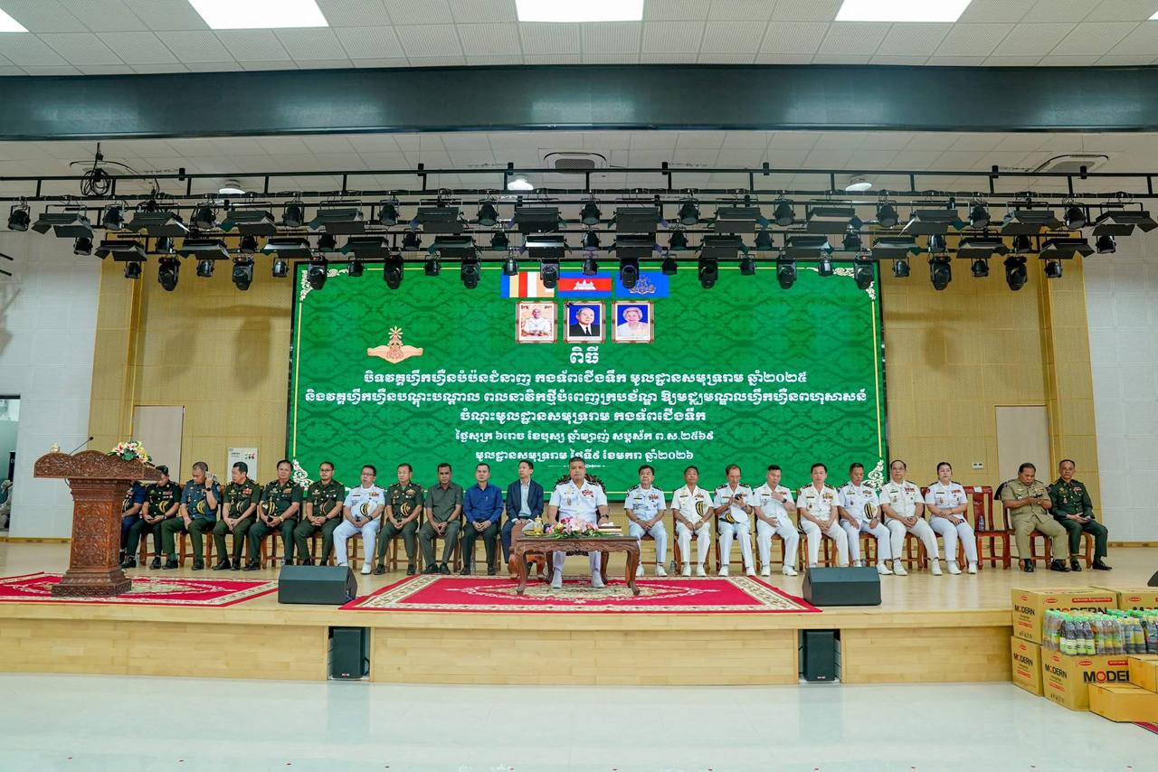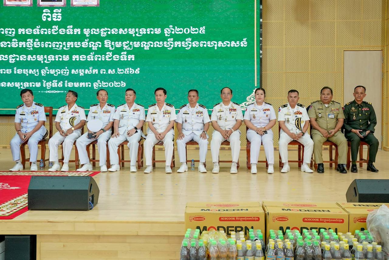 ឯកឧត្តម ឧត្តមនាវីឯក ទៀ សុខា អញ្ចើញជាអធិបតីភាពក្នុងពិធីបិទវគ្គហ្វឹកហ្វឺនបំប៉នជំនាញ កងទ័ពជើងទឹក មូលដ្ឋានសមុទ្ររាម ឆ្នាំ២០២៥ និងវគ្គហ្វឹកហ្វឺនបណ្តុះបណ្តាល ពលនាវិកថ្មីបំពេញក្របខ័ណ្ឌ ឱ្យមជ្ឈមណ្ឌលហ្វឹកហ្វឺនពហុសាសន៍ចំណុះមូលដ្ឋានសមុទ្ររាម កងទ័ពជើងទឹក=================(ព្រះសីហនុ)៖នៅព្រឹកថ្ងៃសុក្រ ៦រោច ខែបុស្ស ឆ្នាំម្សាញ់ សប្តស័ក ពុទ្ធសករាជ ២៥៦៩ ត្រូវនឹងថ្ងៃទី៩ ខែមករា ឆ្នាំ២០២៦ ឯកឧត្ដម ឧត្តមនាវីឯក ទៀ សុខា មេបញ្ជាការ កងទ័ពជើងទឹក អនុប្រធានប្រចាំការ និងជាអគ្គលេខាធិការ នៃគណៈកម្មាធិការជាតិសន្តិសុខលម្អសមុទ្រ បានអញ្ចើញជាអធិបតីភាពក្នុងពិធីបិទវគ្គហ្វឹកហ្វឺនបំប៉នជំនាញ កងទ័ពជើងទឹក មូលដ្ឋានសមុទ្ររាម ឆ្នាំ២០២៥ និងវគ្គហ្វឹកហ្វឺនបណ្តុះបណ្តាល ពលនាវិកថ្មីបំពេញក្របខ័ណ្ឌ ឱ្យមជ្ឈមណ្ឌលហ្វឹកហ្វឺនពហុសាសន៍ចំណុះមូលដ្ឋានសមុទ្ររាម កងទ័ពជើងទឹក។ព្រមទាំងមានការអញ្ជើញចូលរួមពី ឯកឧត្ដម លោកជំទាវ មេបញ្ជាការរង នាយសេនាធិការរង កងទ័ពជើងទឹក លោកនាយវិទ្យាស្ថានកងទ័ពជើងទឹក ឯកឧត្ដម អគ្គលេខាធិការរង នៃ គ.ជ.ស.ស. តំណាង ឯកឧត្ដម អភិបាលនៃគណៈអភិបាលខេត្ត កំពង់ផែស្វយ័តក្រុងព្រះសីហនុ កងកម្លាំងប្រដាប់អាវុធ ទាំងបីប្រភេទចំណុះខេត្ត និងតំណាងឱ្យ អង្គភាពនានាដែលឈរជើងក្នុងភូមិសាស្ត្រខេត្តព្រះសីហនុ ព្រមទាំងក្រុមគ្រូយោធាចារ្យ និងលោកមេបញ្ជាការ មេបញ្ជាការរង នាយសេនាធិការរង នាយនាវី នាយនាវីរង មូលដ្ឋានសមុទ្ររាម និងសិក្ខាកាម ជាច្រើនរូបទៀត។