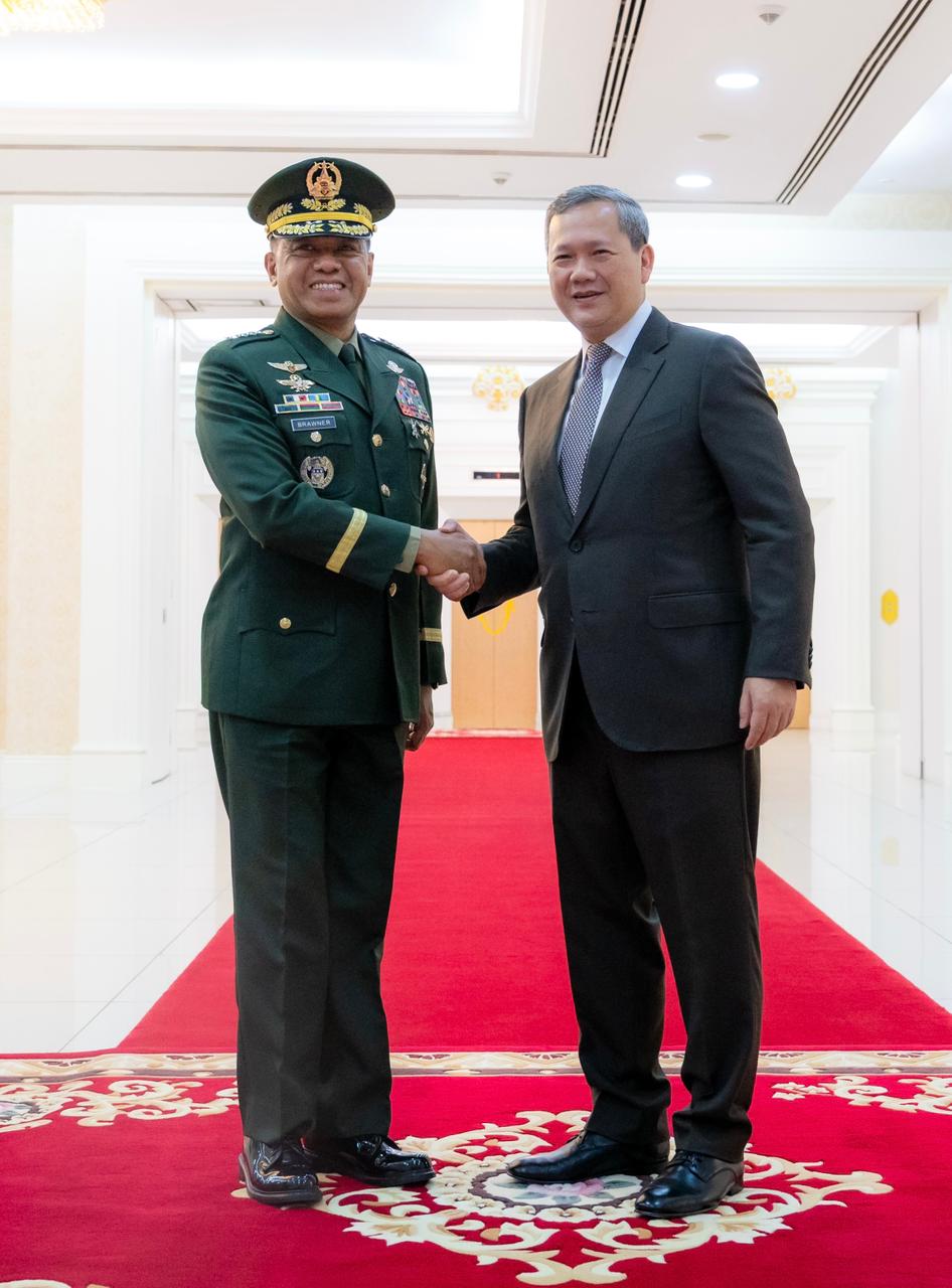 អគ្គមេបញ្ជាការកងទ័ពហ្វីលីពីន៖ ហ្វីលីពីនត្រៀមខ្លួនរួចរាល់ក្នុងការបន្តដឹកនាំក្រុម AOT ដើម្បីសម្របសម្រួលដោះស្រាយបញ្ហាព្រំដែន កម្ពុជា-ថៃនាព្រឹកថ្ងៃទី១២ ខែកុម្ភៈ ឆ្នាំ២០២៦, សម្ដេចមហាបវរធិបតី ហ៊ុន ម៉ាណែត នាយករដ្ឋមន្ត្រី នៃព្រះរាជាណាចក្រកម្ពុជា បានអនុញ្ញាតឱ្យឯកឧត្តម នាយឧត្តមសេនីយ៍ Romeo S. Brawner Jr. អគ្គមេបញ្ជាការកងទ័ពហ្វីលីពីន ចូលជួបសម្ដែងការគួរសម និងពិភាក្សាការងារ នៅវិមានសន្ដិភាព។ក្នុងឱកាសនៃជំនួបនេះ, ឯកឧត្តម នាយឧត្តមសេនីយ៍ អគ្គមេបញ្ជាការកងទ័ពហ្វីលីពីន បានថ្លែងអំណរគុណយ៉ាងជ្រាលជ្រៅជូនចំពោះ សម្ដេចធិបតី ដែលបានអនុញ្ញាតឱ្យរូបឯកឧត្តម និងគណៈប្រតិភូ ចូលជួបសម្ដែងការគួរសម និងពិភាក្សាការងារ។ ឯកឧត្តមអគ្គមេបញ្ជាការ ក៏បានរំលឹកឡើងវិញនូវទំនាក់ទំនង និងកិច្ចសហប្រតិបត្តិការដ៏ល្អ និងយូរអង្វែង រវាងប្រទេសទាំងពីរ ជាពិសេសរវាងកងទ័ព និងកងទ័ព។ ក្នុងន័យនេះ, ឯកឧត្តមបានគូសបញ្ជាក់អំពីការប្ដេជ្ញាចិត្តក្នុងការបន្តជំរុញទំនាក់ទំនង និងកិច្ចសហប្រតិបត្តិការកងទ័ព រវាងប្រទេសទាំងពីរឱ្យកាន់តែរីកចម្រើនបន្ថែមទៀត។ជាការឆ្លើយតប, សម្ដេចធិបតី បានសម្ដែងនូវការស្វាគមន៍យ៉ាងកក់ក្ដៅចំពោះ ឯកឧត្តមអគ្គមេបញ្ជាការ និងគណៈប្រតិភូ ដែលបានអញ្ជើញមកបំពេញទស្សនកិច្ចនៅកម្ពុជា និងរីក រាយ ដែលបានជួប ជាមួយ ឯកឧត្តមអគ្គមេ បញ្ជាការជាថ្មីម្តងទៀត។ សម្ដេចធិបតី ក៏បានសម្ដែងនូវការពេញចិត្ត និងវាយតម្លៃខ្ពស់ចំពោះវឌ្ឍនភាពនៃទំនាក់ទំនង និងកិច្ចសហប្រតិបត្តិការក្នុងវិស័យការពារជាតិ នៃប្រទេសទាំងពីរ ជាពិសេស កិច្ចសហប្រតិបត្តិការ ក្នុងការចែករំលែកបទពិសោធន៍ និងការកសាងសមត្ថភាពរវាងកងទ័ពនៃប្រទេសទាំងពីរ។ សម្ដេចធិបតី បានបង្ហាញនូវក្ដីសង្ឃឹមយ៉ាងមុតមាំថា កិច្ចសហប្រតិបត្តិការរវាងកងទ័ពទាំងពីរ នឹងត្រូវបានពង្រឹង និងពង្រីកបន្ថែមទៀត ទាំងផ្នែកកងទ័ពជើងគោក ជើងទឹក និងជើងអាកាស។ពាក់ព័ន្ធនឹងសភាពការណ៍តាមបណ្ដោយព្រំដែនកម្ពុជា-ថៃ, សម្ដេចធិបតី ក៏បានបញ្ជាក់ជូនឯកឧត្តមអគ្គមេបញ្ជាការ និងគណៈប្រតិភូ នូវការវិវត្តថ្មីៗ នៃសភាព ការណ៍ព្រំដែន កម្ពុជា-ថៃ និងបញ្ជាក់ពីជំហររបស់កម្ពុជាក្នុងការដោះស្រាយបញ្ហាព្រំដែនដោយសន្តិវិធី ផ្អែកលើកិច្ចព្រមព្រៀងទ្វេភាគី អនុសញ្ញា និងសន្ធិសញ្ញាដែលមានស្រាប់ ព្រមទាំងច្បាប់អន្តរជាតិ។ កម្ពុជាប្ដេជ្ញាចិត្តយ៉ាងមុតមាំក្នុងការគោរពនូវកិច្ចព្រមព្រៀងដែលប្រទេសទាំងពីរបានឯកភាពគ្នានាពេលកន្លងមក។ បន្ថែមលើនេះ, សម្ដេចធិបតី បានវាយតម្លៃខ្ពស់ចំពោះតួនាទីរបស់ក្រុមអ្នកសង្កេតការណ៍អាស៊ាន (AOT) និងជឿជាក់ថា ក្រោមការដឹកនាំរបស់ហ្វីលីពីន ក្នុងនាមជាប្រធានអាស៊ានប្ដូរវេន ក្រុម AOT នឹងបន្តចូលរួម