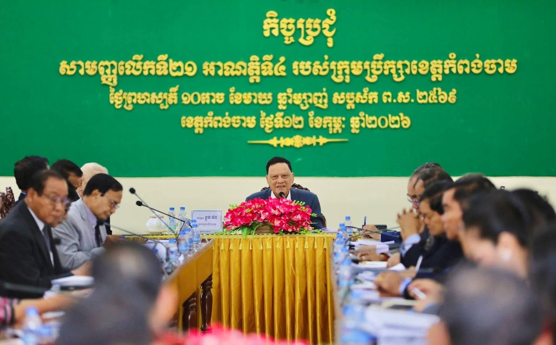 លោកឧត្តមសេនីយ៍ទោ ហេង វុទ្ធី ស្នងការនគរបាលខេត្តកំពង់ចាម បានអញ្ចើញចូលរួមកិច្ចប្រជុំសាមញ្ញលេីកទី២១ អាណត្តិទី៤ របស់ក្រុមប្រឹក្សាខេត្ត នៅសាលប្រជុំសាលាខេត្ត======================នៅព្រឹកថ្ងៃព្រហស្បតិ៍ ១០រោច ខែមាឃ ឆ្នាំម្សាញ់ សប្តស័ក ពុទ្ធសករាជ ២៥៦៩ ត្រូវនឹងថ្ងៃទី១២ ខែកុម្ភៈ ឆ្នាំ២០២៦ លោកឧត្តមសេនីយ៍ទោ ហេង វុទ្ធី ស្នងការនគរបាលខេត្តកំពង់ចាម បានអញ្ចើញចូលរួមកិច្ចប្រជុំសាមញ្ញលេីកទី២១ អាណត្តិទី៤ របស់ក្រុមប្រឹក្សាខេត្ត ក្រោមអធិបតីភាពឯកឧត្តម ខ្លូត ផន ប្រធានក្រុមប្រឹក្សាខេត្ត និង ឯកឧត្តម អ៊ុន ចាន់ដា អភិបាលនៃគណៈអភិបាលខេត្តកំពង់ចាម។ដោយមានការអញ្ជើញចូលរួមពី ឯកឧត្តម លោកជំទាវ សមាជិកក្រុមប្រឹក្សាខេត្ត, អភិបាលរងខេត្ត, នាយក នាយករងរដ្ឋបាលសាលាខេត្ត, លោកមេបញ្ជាការរងកងរាជអាវុធហត្ថខេត្ត, ប្រធានការិយាល័យប្រជាពលរដ្ឋ, ថ្នាក់ដឹកនាំ មន្ទីរវិស័យជុំវិញខេត្ត និងមន្ត្រីពាក់ព័ន្ធ ស្ថិតនៅសាលាខេត្តកំពង់ចាម។កិច្ចប្រជុំបានអនុម័តលេីរបៀបវារៈដូចខាងក្រោម:១-ពិនិត្យ និងអនុម័តសេចក្តីព្រាងកំណត់ហេតុនៃកិច្ចប្រជុំសាមញ្ញលើកទី២០ អាណត្តិ ទី៤ របស់ក្រុមប្រឹក្សាខេត្តកំពង់ចាម។២-ពិនិត្យ ពិភាក្សា និងអនុម័តសេចក្ដីព្រាងរបាយការណ៍ស្តីពី ការអនុវត្តការងារប្រចាំខែ មករា និងលើកទិសដៅប្រចាំខែកុម្ភៈ ឆ្នាំ២០២៦ របស់រដ្ឋបាលខេត្តកំពង់ចាម។៣-ពិនិត្យ ពិភាក្សា និងអនុម័តលើសេចក្តីព្រាងស្តីពីការរៀបចំបែងចែកប្រាក់រង្វាន់ប្រចាំ ខែ ដល់មន្ត្រីសាលាខេត្តកំពង់ចាម ដែលទទួលបានពីការផ្តល់សេវារដ្ឋបាលសម្រាប់ខែមករា។៤-បញ្ហាផ្សេងៗ៕