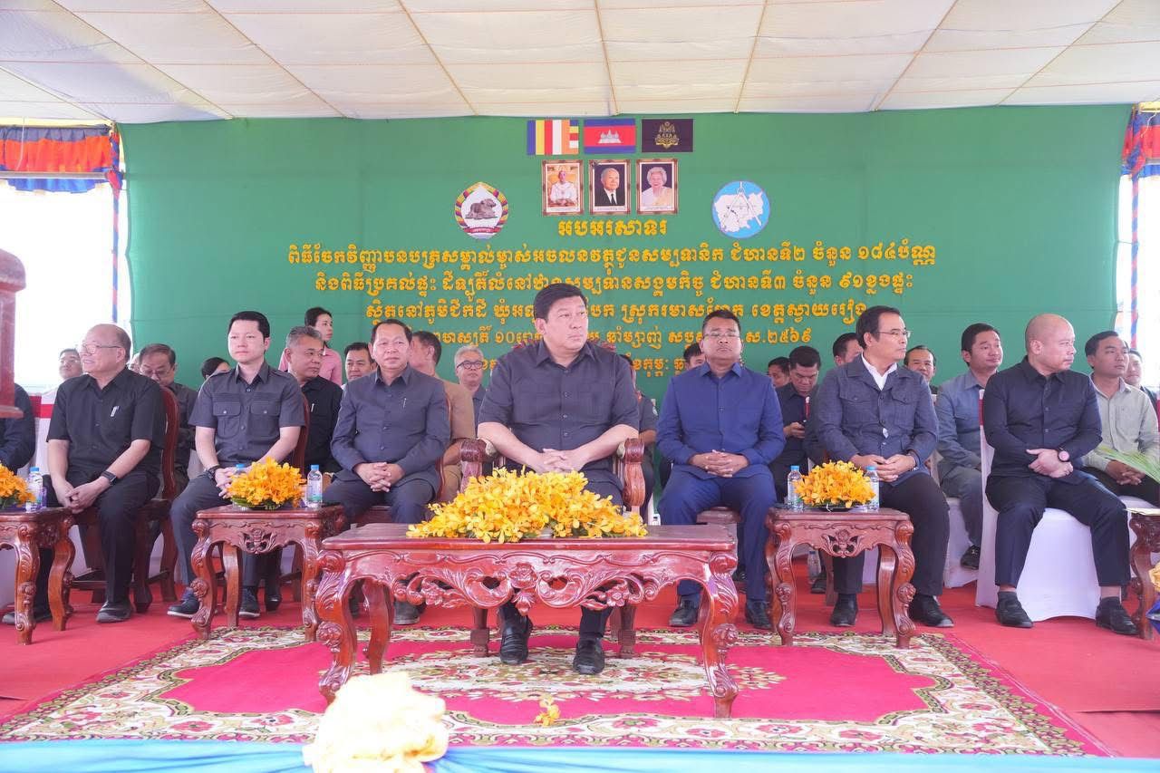 ឯកឧត្តម ឧបនាយករដ្នមន្ត្រី សាយ សំអាល់ អញ្ចើញជាអធិបតីភាពដ៏ខ្ពង់ខ្ពស់ក្នុងពិធីចែកវិញ្ញាបនបត្រសម្គាល់ម្ចាស់អចលនវត្ថុជូនសម្បទានិកជំហាន២ និងពិធីប្រគល់ផ្ទះ ដីឡូតិ៍លំនៅឋាន ជូនសម្បទានិកជំហាន៣ ស្ថិតនៅស្រុករមាសហែក ខេត្តស្វាយរៀង===================នាព្រឹកថ្ងៃព្រហស្បតិ៍ ១០ រោច ខែមាឃ ឆ្នាំម្សាញ់ សប្តស័ក ពុទ្ធសករាជ ២៥៦៩ ត្រូវនឹងថ្ងៃទី១២ ខែកុម្ភៈ ឆ្នាំ២០២៦ ឯកឧត្តម សាយ សំអាល់ ឧបនាយករដ្នមន្ត្រី រដ្នមន្ត្រីក្រសួងរៀបចំដែនដី នគរូបនីយកម្ម និងសំណង់ និងជាប្រធានគណៈកម្មាធិការសម្បទានដីសង្គមកិច្ចថ្នាក់ជាតិ បានអញ្ចើញជាអធិបតីភាពដ៏ខ្ពង់ខ្ពស់ក្នុងពិធីចែកវិញ្ញាបនបត្រសម្គាល់ម្ចាស់អចលនវត្ថុជូនសម្បទានិកជំហាន២ ចំនួន ១៨៤បណ្ណ និងពិធីប្រគល់ផ្ទះ ដីឡូតិ៍លំនៅឋានជូនសម្បទានិកជំហាន៣ ចំនួន៩១ខ្នង នៅភូមិជីកដី ឃុំអណ្ដូងត្របែង ស្រុករមាសហែក ខេត្តស្វាយរៀង។ពីនេះទៅមុខ ការរៀបចំសម្បទានដីសង្គមកិច្ចគឺមិនត្រឹមតែរៀបចំដីប៉ុណ្ណោះទេ គឺរៀបចំជីវិតជូនពុកម៉ែបងប្អូនសម្បទានិកទាំងអស់ ដើម្បីបងប្អូនមានលំនៅឋានសមរម្យហើយទន្ទឹមនឹងគ្នានេះអាចប្រែក្លាយជីវភាពឱ្យមានភាពប្រសើរឡើង។ឯកឧត្តម ឧបនាយករដ្ឋមន្ត្រី សាយ សំអាល់ រដ្ឋមន្ត្រីក្រសួងរៀបចំដែនដី នគរូបនីយកម្ម និងសំណង់ និងជាប្រធានគណៈកម្មាធិការសម្បទានដីសង្គមកិច្ចថ្នាក់ជាតិ បានមានប្រសាសន៍ថា យើងទាំងអស់គ្នាមកទីនេះនៅថ្ងៃនេះ គឺដើម្បីរួមគ្នាគិតគូរ និងចូលរួមរៀបចំអ្វីដែលជាតម្រូវការចាំបាច់ជួនបងប្អូនសម្បទានិករួមមាន ប្រព័ន្ធទឹកស្អាត ភ្លើង ផ្លូវ ព្រមទាំងអភិវឌ្ឍន៍ហេដ្ឋារចនាសម្ព័ន្ធចាំបាច់ផ្សេងទៀតដូចជា សាលារៀន មណ្ឌលសុខភាព រៀបចំផ្ទះសំណាញ់ ទឹកស្រោចស្រព សម្រួលដល់ការដាំបន្លែ ចិញ្ចឹមសត្វ ដើម្បីអាចផ្គត់ផ្គង់និងលើកស្ទួយជីវភាពគ្រួសារ។សូមបញ្ជាក់ជូនថា ពិធីនេះមានការអញ្ជើញចូលរួមពី រដ្ឋមន្រ្តីក្រសួងសាធារណការនិងដឹកជញ្ជូន រដ្ឋមន្រ្តីក្រសួងធនធានទឹកនិងឧតុនិយម រដ្ឋមន្រ្តីក្រសួងអភិវឌ្ឍន៍ជនបទ រដ្ឋមន្ត្រីក្រសួងអធិការកិច្ច រដ្ឋមន្ត្រីប្រតិភូអមនាយករដ្ឋមន្ត្រី តំណាងរដ្ឋមន្ត្រីក្រសួងឧស្សាហកម្មនិងនវានុវត្ត តំណាងរដ្ឋមន្ត្រីក្រសួងរ៉ែនិងថាមពល តំណាងរដ្ឋមន្ត្រីក្រសួងកសិកម្ម រុក្ខាប្រមាញ់ និងនេសាទ និងអភិបាលខេត្តស្វាយរៀង។