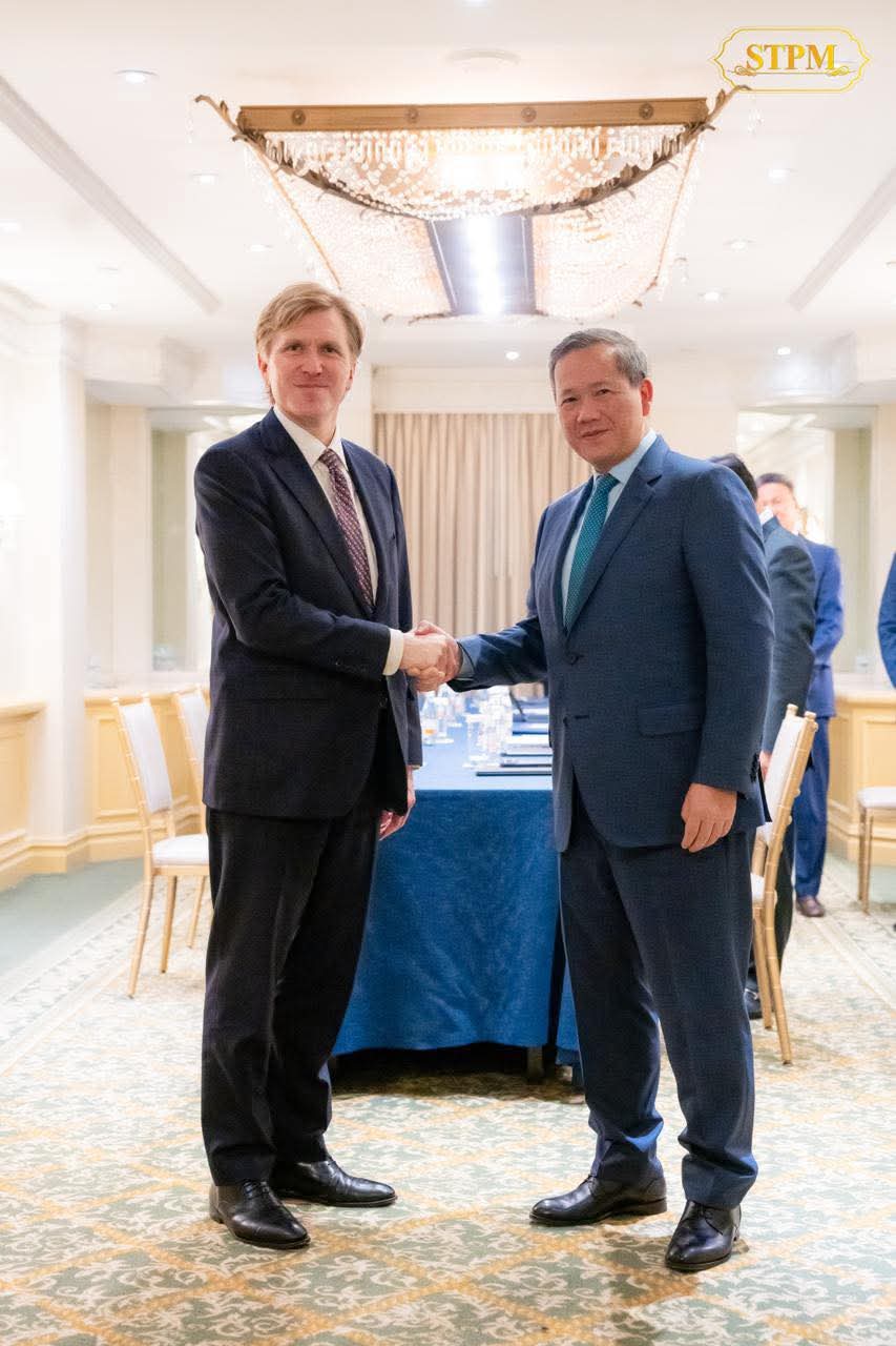 សម្ដេចមហាបវរធិបតី ហ៊ុន ម៉ាណែត អញ្ចើញដឹកនាំគណៈប្រតិភូជាន់ខ្ពស់កម្ពុជា ជួបជាមួយ ឯកឧត្តម Elbridge A. Colby អនុរដ្ឋមន្ត្រីសង្គ្រាម សហរដ្ឋអាមេរិក ក្នុងជំនួបសម្តែងការគួរសម និងពិភាក្សាការងារ==================(សហរដ្ឋអាមេរិក)៖នារសៀលថ្ងៃពុធ ៤កើត ខែមាឃ ឆ្នាំម្សាញ់ សប្តស័ក ព.ស.២៥៦៩ ត្រូវនឹងថ្ងៃទី២០ ខែកុម្ភៈ ឆ្នាំ២០២៦ សម្ដេចមហាបវរធិបតី ហ៊ុន ម៉ាណែត នាយករដ្នមន្ត្រីនៃព្រះរាជាណាចក្រកម្ពុជា បានអញ្ចើញដឹកនាំគណៈប្រតិភូជាន់ខ្ពស់កម្ពុជា ជួបជាមួយ ឯកឧត្តម Elbridge A. Colby អនុរដ្ឋមន្ត្រីសង្គ្រាម សហរដ្ឋអាមេរិក ក្នុងជំនួបសម្តែងការគួរសម និងពិភាក្សាការងារ។