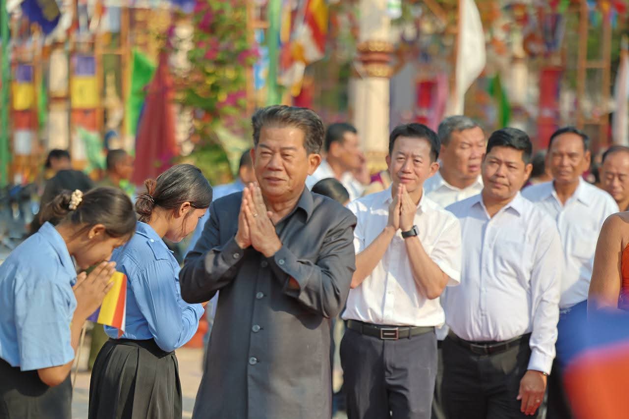 ឯកឧត្តម វ៉ី សំណាង និងលោកជំទាវ អញ្ជើញអមរដំណើរ សម្តេចកិត្តិសង្គហបណ្ឌិត ម៉ែន សំអន ក្នុងពិធីបួងសួងសុំសេចក្តីសុខ សេចក្តីចម្រើន និងសុខសន្តិភាព ជូនដល់ព្រះរាជាណាចក្រកម្ពុជា នៅប្រាសាទបាយ៉ង់កោរ ស្ថិតក្នុងស្រុកគិរីវង់ ខេត្តតាកែវ