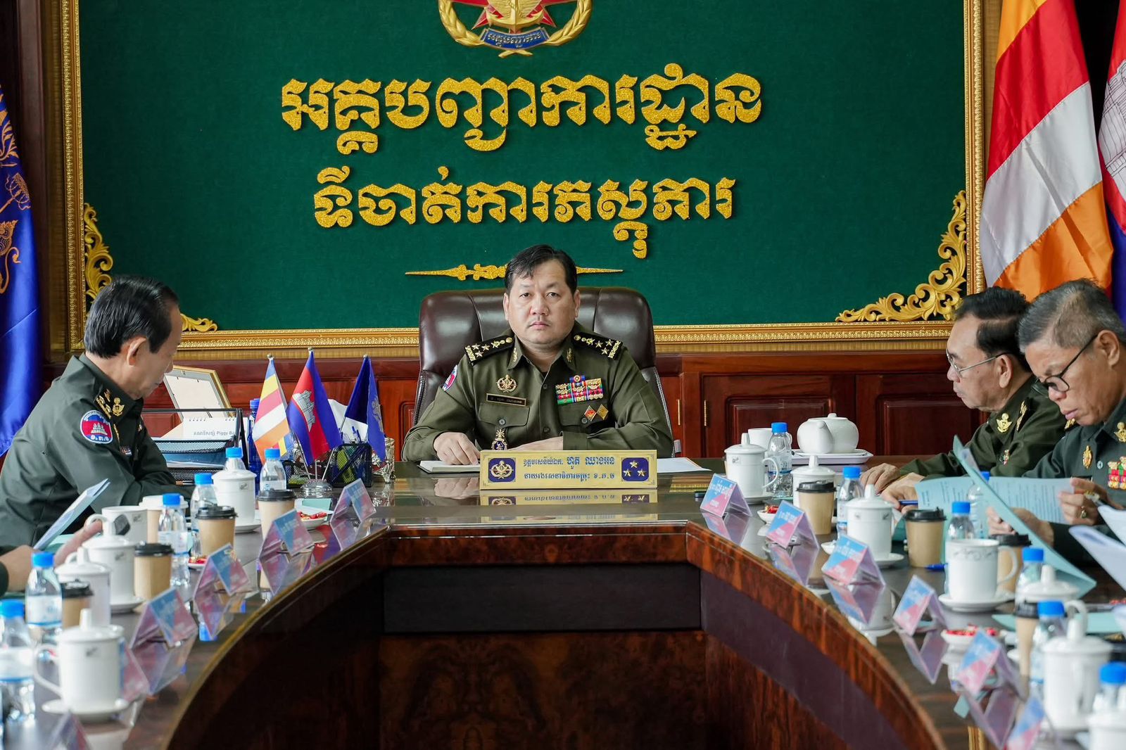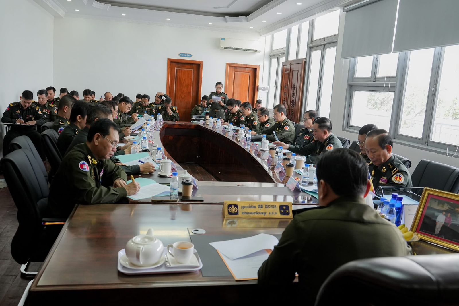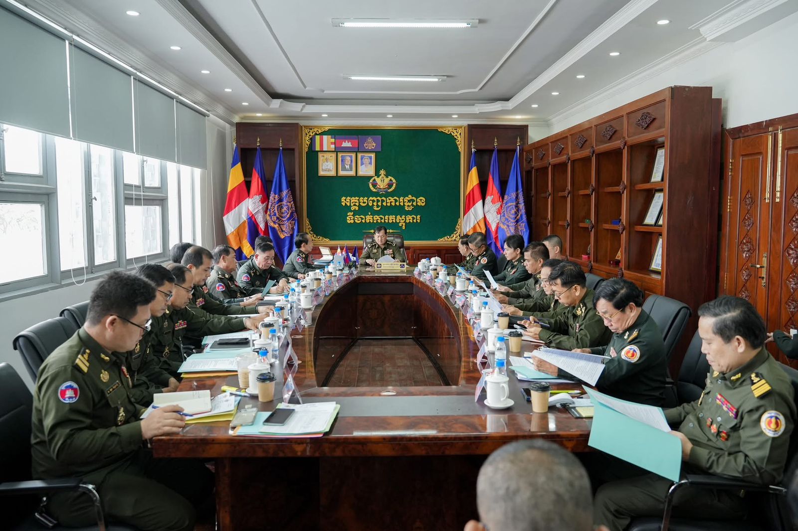 ឯកឧត្តម ឧត្តមសេនីយ៍ឯក ហួត ឈាងអន អញ្ញដឹកនាំកិច្ចប្រជុំត្រួតពិនិត្យការងារផ្ទៃក្នុងរបស់ទីចាត់ការភស្តុភារ ប្រចាំខែកុម្ភៈ ឆ្នាំ២០២៦(ភ្នំពេញ)៖ នៅព្រឹកថ្ងៃទី២៤ ខែកុម្ភៈ ឆ្នាំ២០២៦នេះ ឯកឧត្តម ឧត្តមសេនីយ៍ឯក ហួត ឈាងអន នាយរងសេនាធិការចម្រុះ នាយកទីចាត់ការភស្តុភារ អគ្គបញ្ជាការដ្ឋាន បានអញ្ជើញជាអធិបតីដ៏ខ្ពង់ខ្ពស់ ដឹកនាំកិច្ចប្រជុំត្រួតពិនិត្យការងារផ្ទៃក្នុងរបស់ទីចាត់ការ ដើម្បីបូកសរុបលទ្ធផលការងារកន្លងមក និងលើកទិសដៅការងារបន្ត។ក្នុងកិច្ចប្រជុំនេះដែរ ឯកឧត្តម ឧត្ដមសេនីយ៍ឯក ហួត ឈាងអន បានមានប្រសាសន៍ លើកសរសើរ និងវាយតម្លៃខ្ពស់ ចំពោះនាយទាហាន នាយទាហានរង និងពលទាហានទាំងអស់ ក្នុងទីចាត់ការភស្តុភារ ដែលបានខិតខំប្រឹងប្រែងបំពេញភារកិច្ច និងបេសកកម្មសមរភូមិមុខយ៉ាងសកម្ម ប្រកបដោយស្មារតីទទួលខុសត្រូវខ្ពស់នាពេលកន្លងមក។ ជាមួយនោះ ឯកឧត្តម ឧត្តមសេនីយ៍ឯក ហួត ឈាងអន បានណែនាំ និងជំរុញឱ្យសាលា និងការិយាល័យជំនាញ មានការយកចិត្តទុកដាក់ខ្ពស់លើការងារហ្វឹកហ្វឺនបណ្តុះបណ្តាលធនធានមនុស្សដើម្បីបង្កើនសមត្ថភាពជំនាញភស្តុភារដល់យោធិនដែលជាកត្តាចាំបាច់បំផុត ឆ្លើយតបទៅនឹងតម្រូវការជាក់ស្តែងនៃកងយោធពលខេមរភូមិន្ទ។ ឯកឧត្តមបានណែនាំឱ្យរៀបចំកម្មវិធីសិក្សា និងវគ្គបំប៉នជំនាញឱ្យបានទៀងទាត់ ដើម្បីធានាថា មន្ត្រីភស្តុភារគ្រប់រូបមានសមត្ថភាពពេញលេញក្នុងការបំពេញភារកិច្ច។ជាទីបញ្ចប់ ឯកឧត្តម ឧត្តមសេនីយ៍ឯក ហួត ឈាងអន បានផ្តាំផ្ញើដល់នាយទាហាន នាយទាហានរង និងពលទាហានទាំងអស់ ក្នុងទីចាត់ការភស្តុភារ ត្រូវបន្តពង្រឹងសាមគ្គីភាពផ្ទៃក្នុង គោរពវិន័យឱ្យបានខ្ជាប់ខ្ជួន និងខិតខំអភិវឌ្ឍសមត្ថភាពខ្លួនឯងបន្ថែមទៀត ដើម្បីបម្រើបុព្វហេតុជាតិមាតុភូមិរបស់យើង៕