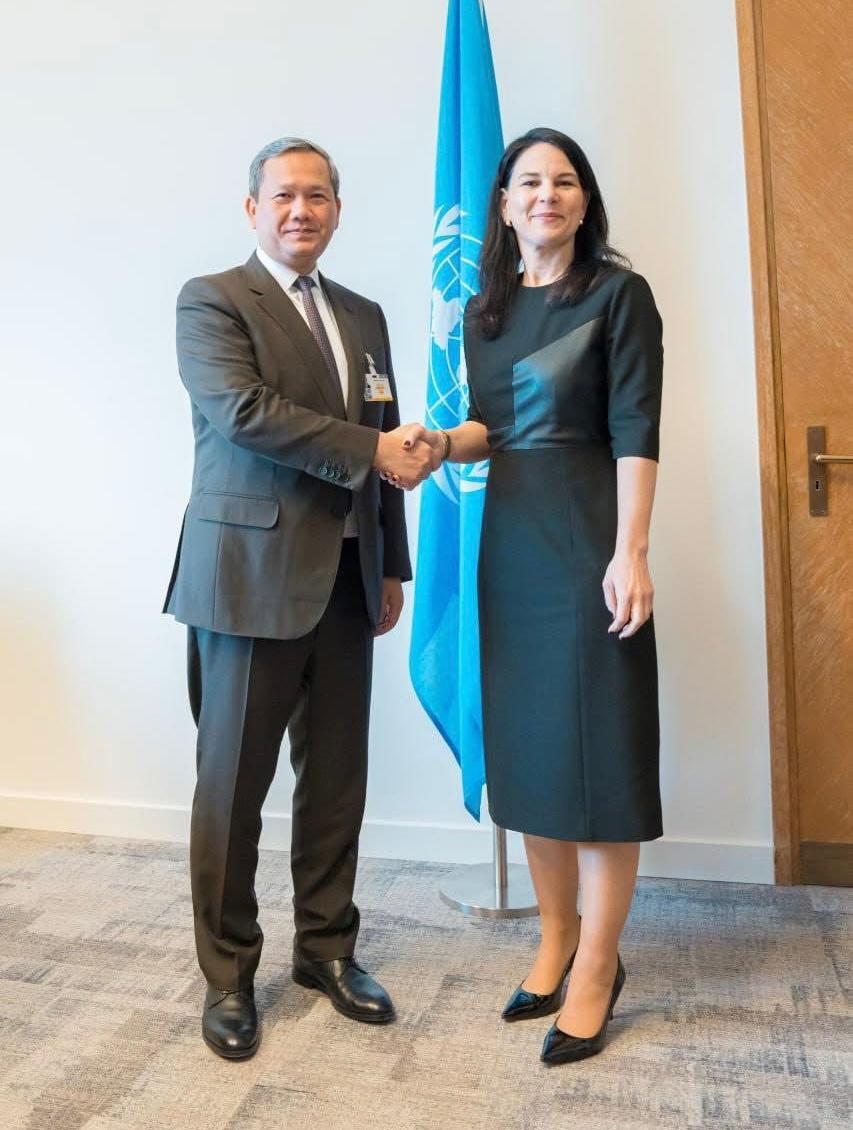 សម្ដេចមហាបវរធិបតី ហ៊ុន ម៉ាណែត នាយករដ្នមន្ត្រីនៃព្រះរាជាណាចក្រកម្ពុជា អញ្ចើញជួបជាមួយ លោកជំទាវ Annalena Baerbock ប្រធានមហាសន្និបាត អង្គការសហប្រជាជាតិលើកទី៨០ ក្នុងជំនួបសម្តែងការគួរសម និងពិភាក្សាការងារ នៅប្រទេសស្វីស===============ប្រទេសស្វីស៖នៅរសៀលថ្ងៃចន្ទ ៧កើត ខែផល្គុន ឆ្នាំម្សាញ់ សប្តស័ក ព.ស.២៥៦៩ ត្រូវនឹងថ្ងៃទី២៣ ខែកុម្ភៈ ឆ្នាំ២០២៦ សម្ដេចមហាបវរធិបតី ហ៊ុន ម៉ាណែត នាយករដ្នមន្ត្រីនៃព្រះរាជាណាចក្រកម្ពុជា អញ្ចើញជួបជាមួយ លោកជំទាវ Annalena Baerbock ប្រធានមហាសន្និបាត អង្គការសហប្រជាជាតិលើកទី៨០ ក្នុងជំនួបសម្តែងការគួរសម និងពិភាក្សាការងារ។