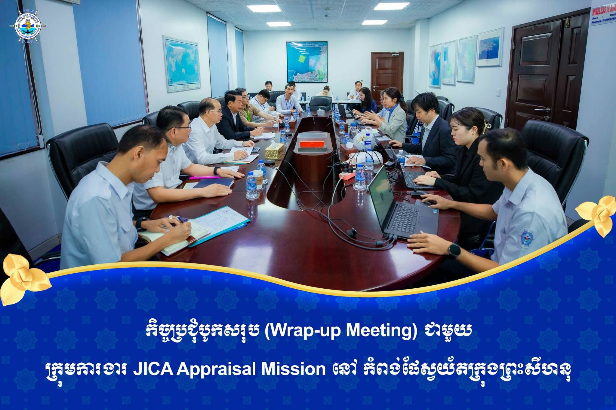 ឯកឧត្តម លូ គឹមឈន់ ប្រតិភូរាជរដ្ឋាភិបាលកម្ពុជា បានបើកកិច្ចប្រជុំបូកសរុប Wrap-up Meeting ពិភាក្សាការងារ ជាមួយក្រុមការងារបេសកកម្មប៉ាន់តម្លៃ របស់ទីស្នាក់ការកណ្តាលចៃការ JICA Appraisal Mission ដែលដឹកនាំដោយកញ្ញា MURAO Akari=================កំពង់ផែស្វយ័តក្រុងព្រះសីហនុ (កសស) ៖ នាព្រឹកថ្ងៃពុធ ៩ កើត ខែផល្គុន ឆ្នាំម្សាញ់ សប្តស័ក ពុទ្ធសករាជ ២៥៦៩ ត្រូវនឹងថ្ងៃទី២៥ ខែកុម្ភៈ ឆ្នាំ២០២៦ នៅសាលប្រជុំតូច កសស ឯកឧត្តម លូ គឹមឈន់ ប្រតិភូរាជរដ្ឋាភិបាលកម្ពុជា ទទួលបន្ទុកជាប្រធានអគ្គនាយក កំពង់ផែស្វយ័តក្រុងព្រះសីហនុ និងថ្នាក់ដឹកនាំ កសស បានបើកកិច្ចប្រជុំបូកសរុប (Wrap-up Meeting) ពិភាក្សាការងារជាមួយក្រុមការងារបេសកកម្មប៉ាន់តម្លៃរបស់ទីស្នាក់ការកណ្តាលចៃការ "JICA Appraisal Mission" ដែលដឹកនាំដោយកញ្ញា MURAO Akari, ជំនួយការនាយកនៃនាយកដ្ឋានអាស៊ីអាគ្នេយ៍ និងប៉ាស៊ីហ្វិក ទីស្នាក់កណ្តាលចៃការប្រចាំទីក្រុងតូក្យូ ស្តីពី ការស្នើសុំប្រាក់កម្ចីបន្ថែម សម្រាប់គម្រោងអភិវឌ្ឍន៍ចំណតផែកុងតឺន័រទឹកជ្រៅថ្មី-ជំហានទី ១។