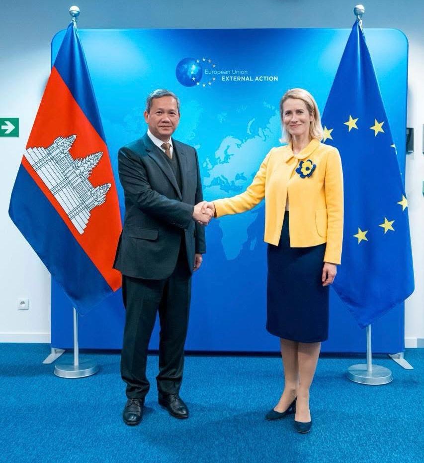 សម្ដេចមហាបវរធិបតី ហ៊ុន ម៉ាណែត អញ្ចើញជួបជាមួយ លោកជំទាវ Kaja Kallas អនុប្រធានគណៈកម្មការអឺរ៉ុប ក្នុងជំនួបសម្តែងការគួរសម និងពិភាក្សាការងារ នៅប្រទេសបែលហ្ស៊ិក=================(ប្រទេសបែលហ្ស៊ិក)៖នៅរសៀលថ្ងៃចន្ទ ៨កើត ខែផល្គុន ឆ្នាំម្សាញ់ សប្តស័ក ព.ស.២៥៦៩ ត្រូវនឹងថ្ងៃទី២៤ ខែកុម្ភៈ ឆ្នាំ២០២៦ សម្ដេចមហាបវរធិបតី ហ៊ុន ម៉ាណែត នាយករដ្នមន្ត្រីនៃព្រះរាជាណាចក្រកម្ពុជា អញ្ចើញជួបជាមួយ លោកជំទាវ Kaja Kallas អនុប្រធានគណៈកម្មការអឺរ៉ុប ក្នុងជំនួបសម្តែងការគួរសម និងពិភាក្សាការងារ នៅប្រទេសបែលហ្ស៊ិក។