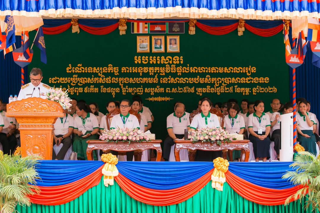 ឯកឧត្តមស៊ុន សុវណ្ណារិទ្ធិ អភិបាលខេត្តកំពង់ឆ្នាំង និងលោកជំទាវ បានចូលរួមអមដំណើរលោកជំទាវបណ្ឌិត ពេជ ចន្ទមុន្នី ហ៊ុន ម៉ាណែត និងសម្ដេចមហាមន្ត្រី គុយ សុផល អញ្ជើញទស្សនកិច្ចការអនុវត្តកម្មវិធីផ្តល់អាហារតាមសាលារៀន ដោយប្រើប្រាស់កសិផលក្នុងសហគមន៍ ស្ថិតនៅស្រុករលាប្អៀរ ==============នៅថ្ងៃទី២៥ ខែកុម្ភៈ ឆ្នាំ២០២៦ ឯកឧត្តមស៊ុន សុវណ្ណារិទ្ធិ អភិបាលខេត្តកំពង់ឆ្នាំង និងលោកជំទាវ រួមជាមួយឯកឧត្ដម ស៊ីវ រុន ប្រធានក្រុមប្រឹក្សាខេត្ត បានចូលរួមអមដំណើរលោកជំទាវបណ្ឌិត ពេជ ចន្ទមុន្នី ហ៊ុនម៉ាណែត និងសម្ដេចមហាមន្ត្រី គុយ សុផល ឧបនាយករដ្ឋមន្ត្រី រដ្ឋមន្ត្រីក្រសួងព្រះបរមរាជវាំង អញ្ជើញទស្សនកិច្ចការអនុវត្តកម្មវិធីផ្តល់អាហារតាមសាលារៀន ដោយប្រើប្រាស់កសិផលក្នុងសហគមន៍ នៅសាលាបឋមសិក្សាប្រាសាទជាងទង ក្នុងភូមិក្រាំងប្រស្វាយ ឃុំស្វាយជ្រុំ ស្រុករលាប្អៀរ ខេត្តកំពង់ឆ្នាំង ក្នុងគោលបំណងស្វែងយល់អំពីការអនុវត្តកម្មវិធីផ្ដល់អាហារតាមសាលារៀន ដោយប្រើប្រាស់កសិផលក្នុងសហគមន៍ និងបង្ហាញពីសមទ្ធិផលនៃការអនុវត្តកម្មវិធី ក៏ដូចជាបង្ហាញអំពីការយកចិត្ដទុកដាក់របស់រាជរដ្ឋាភិបាលលើការអនុវត្ដកម្មវិធីនេះ ដែលរួមចំណែកដល់ការកសាងមូលធនមនុស្ស ជាពិសេស ការយកចិត្ដទុកដាក់ខ្ពស់លើសុខភាព និងអំពីអាហារូបត្ថម្ភដល់កុមារនៅតាមសាលាបឋមសិក្សា។ពិធីមានការនិមន្តពីព្រះធម្មវនវាសីបណ្ឌិត ចន្ទ មុនី ព្រះសមុហ៍គណខេត្ត ព្រះសង្ឃាធិបតីវត្តចន្ទប្បជោត្តនារាម ហៅវត្តតាសុត និងមានការអញ្ជើញចូលរួមពីឯកឧត្តមបណ្ឌិតសភាចារ្យ ហង់ជួន ណារ៉ុន ឧបនាយករដ្ឋមន្ត្រី រដ្ឋមន្ត្រីក្រសួងអប់រំ យុវជន និងកីឡា ឯកឧត្តមបណ្ឌិតសភាចារ្យ អ៊ុក រ៉ាប៊ុន ទេសរដ្ឋមន្រ្តី ប្រធានក្រុមការងាររាជរដ្ឋាភិបាលចុះមូលដ្ឋានខេត្ត ឯកឧត្ដម លោកជំទាវ សមាជិកព្រឹទ្ធសភា សមាជិករដ្ឋសភា លោកជំទាវកិត្តិបណ្ឌិត អុឹង កន្ថាផាវី រដ្ឋមន្រ្តីក្រសួងកិច្ចការនារី ឯកឧត្ដម លោកជំទាវថ្នាក់ដឹកនាំក្រសួង ស្ថាប័ន តំណាងអង្គទូត ដៃគូអភិវឌ្ឍន៍ ថ្នាក់ដឹកនាំ កងកម្លាំង មន្ត្រីរាជការ អាជ្ញាធរមូលដ្ឋាន លោកគ្រូ អ្នកគ្រូ ប្រជាពលរដ្ឋ និងក្មួយៗសិស្សានុសិស្សយ៉ាងច្រើនកុះករ។
