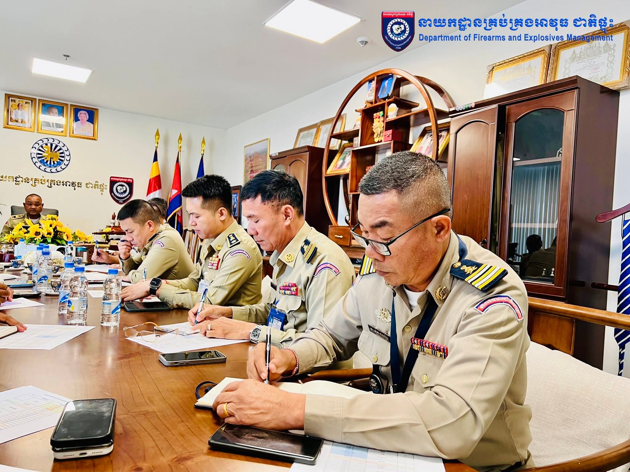 លោកឧត្តមសេនីយ៍ទោ សែម គន្ធា អញ្ចើញដឹកនាំកិច្ចប្រជុំលក្ខណ:បច្ចេកទេសតាមការិយាល័យជំនាញ នៅទីស្តីការក្រសួងមហាផ្ទៃ================ភ្នំពេញ៖នាព្រឹកថ្ងៃអង្គារ ១រោច ខែមាឃ ឆ្នាំម្សាញ់ សប្តស័ក ព.ស ២៥៦៩ត្រូវនឹងថ្ងៃទី៣ ខែកុម្ភៈ ឆ្នាំ២០២៦ ដោយអនុវត្តតាមអនុសាសន៍ណែនាំដ៏ខ្ពង់ខ្ពស់របស់ ឯកឧត្ដម នាយឧត្ដមសេនីយ៍ ស ថេត អគ្គស្នងការនគរបាលជាតិ លោកឧត្តមសេនីយ៍ទោ សែម គន្ធា ប្រធាននាយកដ្ឋានគ្រប់គ្រងអាវុធ ជាតិផ្ទុះ បានអញ្ជើញដឹកនាំកិច្ចប្រជុំលក្ខណ:បច្ចេកទេសតាមការិយាល័យជំនាញ នៅទីស្តីការក្រសួងមហាផ្ទៃ រួមមាន៖-ការិយាល័យគ្រប់គ្រងអាវុធ -ការិយាល័យគ្រប់គ្រងគ្រឿងផ្ទុះ -ការិយាល័យនីតិវិធី ចំណុះឱ្យនាយកដ្ឋានគ្រប់គ្រងអាវុធជាតិផ្ទុះ។
