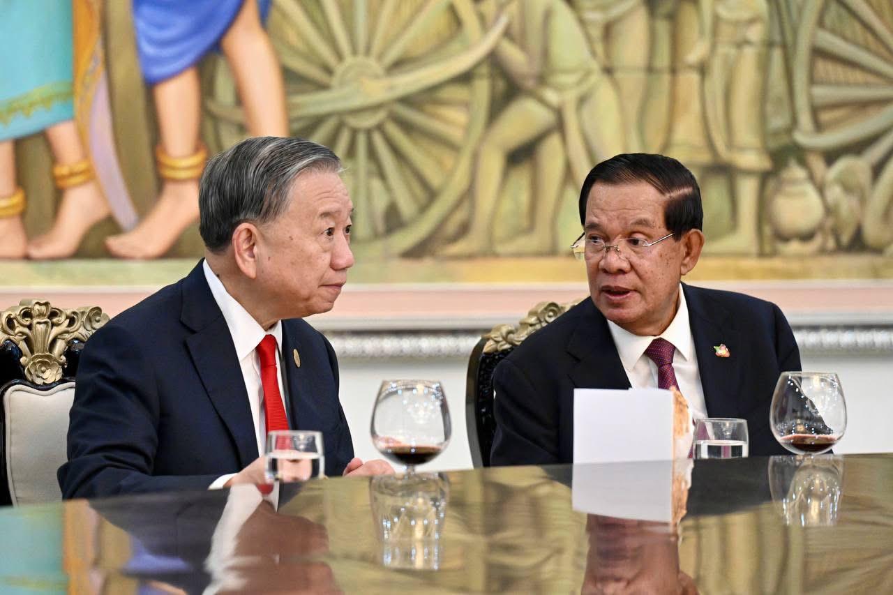 ឯកឧត្តមសន្តិបណ្ឌិត នេត សាវឿន សមាជិកគណៈអចិន្ត្រៃយ៍ នៃគណៈកម្មាធិការកណ្តាល អញ្ជើញចូលរួមពិធីអាហារថ្ងៃត្រង់ស្វាគមន៍ ឯកឧត្តម តូ ឡឹម អគ្គលេខាធិការបក្សកុម្មុយនីស្តវៀតណាម និងឯកឧត្តមបណ្ឌិត ថងលូន ស៊ីសូលីត អគ្គលេខាធិការបក្សប្រជាជនបដិវត្តន៍ឡាវ ====================(ភ្នំពេញ): នារសៀលថ្ងៃសុក្រ ៤រោច ខែមាឃ ឆ្នាំម្សាញ់ សប្តស័ក ព.ស.២៥៦៩ ត្រូវនឹងថ្ងៃទី៦ ខែកុម្ភៈ ឆ្នាំ២០២៦ ឯកឧត្តមសន្តិបណ្ឌិត នេត សាវឿន សមាជិកគណៈអចិន្ត្រៃយ៍នៃគណៈកម្មាធិការកណ្តាលគណបក្សប្រជាជនកម្ពុជា បានអញ្ជើញចូលរួមពិធីអាហារថ្ងៃត្រង់ស្វាគមន៍ ឯកឧត្តម តូ ឡឹម អគ្គលេខាធិការបក្សកុម្មុយនីស្តវៀតណាម និង ឯកឧត្តមបណ្ឌិត ថងលូន ស៊ីសូលីត អគ្គលេខាធិការបក្សប្រជាជនបដិវត្តន៍ឡាវ ក្រោមអធិបតីភាពដ៏ខ្ពង់ខ្ពស់ សម្តេចអគ្គមហាសេនាបតីតេជោ ហ៊ុន សែន ប្រធានគណបក្សប្រជាជនកម្ពុជា នៅវិមាន៧មករា ទីស្នាក់ការគណបក្សប្រជាជនកម្ពុជា។