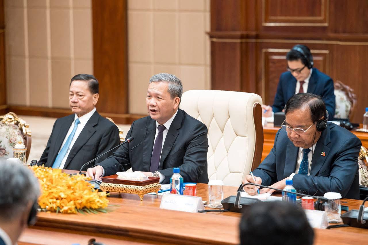 នារសៀលថ្ងៃទី០៧ ខែកុម្ភៈ ឆ្នាំ២០២៦, សម្តេចមហាបវរធិបតី ហ៊ុន ម៉ាណែត នាយករដ្ឋមន្រ្តី នៃព្រះរាជាណាចក្រកម្ពុជា បានទទួលជួបពិភាក្សាការងារជាមួយ ឯកឧត្តម សនសៃ ស៊ីផាន់ដន (Sonexay Siphandone) នាយករដ្ឋមន្រ្តីនៃសាធារណរដ្ឋប្រជាធិបតេយ្យប្រជាមានិតឡាវ នៅវិមានសាមគ្គីភាព ក្នុងឱកាសដែលឯកឧត្តមនាយករដ្ឋមន្ត្រីឡាវអញ្ជើញចូលរួមកិច្ចប្រជុំរវាងថ្នាក់ដឹកនាំកំពូលគណបក្សប្រជាជនកម្ពុជា, ថ្នាក់ដឹកនាំកំពូលគណបក្សកុម្មុយនីស្តវៀតណាម និងថ្នាក់ដឹកនាំកំពូលគណបក្សប្រជាជនបដិវត្តន៍ឡាវ នៅរាជធានីភ្នំពេញ ព្រះរាជាណាចក្រកម្ពុជា ពីថ្ងៃទី៦ដល់ថ្ងៃទី៧ ខែកុម្ភៈ ឆ្នាំ២០២៦។
