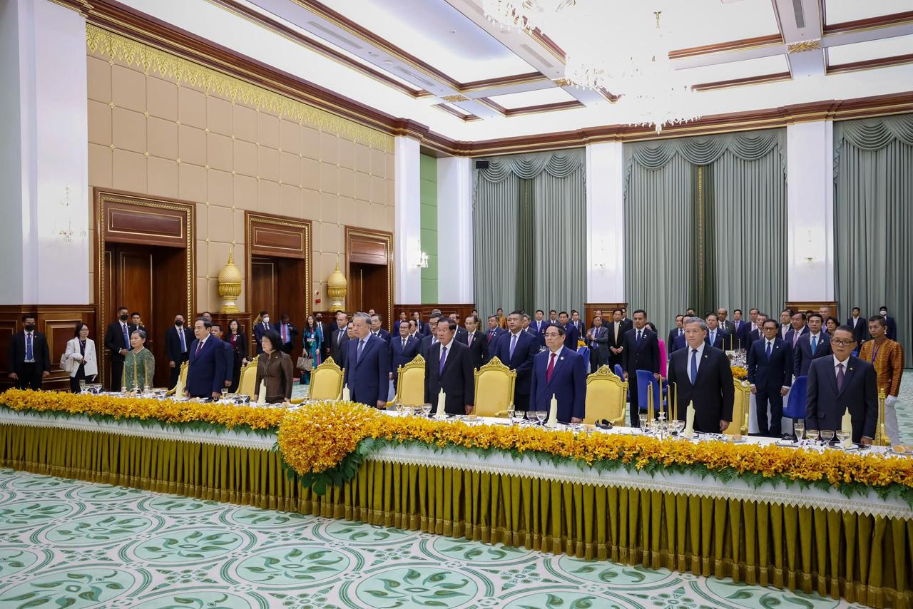 ឯកឧត្តមសន្តិបណ្ឌិត នេត សាវឿន ឧបនាយករដ្ឋមន្ត្រី អញ្ជើញចូលរួមពិធីលៀងសាយភោជន៍ផ្លូវរដ្ឋ ជាកិតិ្តយសជូន ឯកឧត្តម តូ ឡឹម អគ្គលេខាធិការ នៃគណៈកម្មាធិការមជ្ឈិមបក្សកុម្មុយនីស្តវៀតណាម រៀបចំដោយសម្តេចអគ្គមហាសេនាបតីតេជោ ហ៊ុន សែន ==============(ភ្នំពេញ): នាល្ងាចថ្ងៃសុក្រ ៤រោច ខែមាឃ ឆ្នាំម្សាញ់ សប្តស័ក ព.ស.២៥៦៩ ត្រូវនឹងថ្ងៃទី៦ ខែកុម្ភៈ ឆ្នាំ២០២៦ ឯកឧត្តមសន្តិបណ្ឌិត នេត សាវឿន ឧបនាយករដ្ឋមន្ត្រី បានអញ្ជើញចូលរួមពិធីលៀងសាយភោជន៍ផ្លូវរដ្ឋ ជាកិតិ្តយសជូន ឯកឧត្តម តូ ឡឹម អគ្គលេខាធិការ នៃគណៈកម្មាធិការមជ្ឈិមបក្សកុម្មុយនីស្តវៀតណាម រៀបចំដោយសម្តេចអគ្គមហាសេនាបតីតេជោ ហ៊ុន សែន ប្រធានព្រឹទ្ធសភា និងជាប្រធានក្រុមឧត្តមប្រឹក្សាផ្ទាល់ព្រះមហាក្សត្រ នៃព្រះរាជាណាចក្រកម្ពុជា នៅវិមានសាមគ្គីភាព ព្រឹទ្ធសភា។