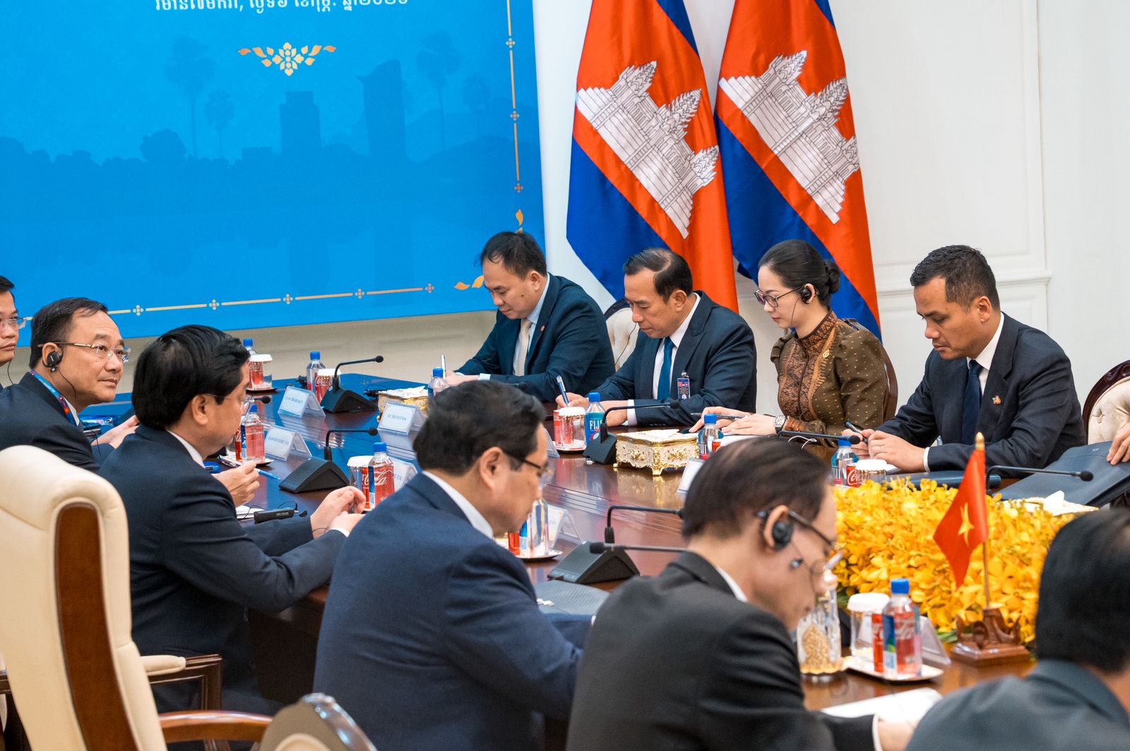 ប្រមុខរដ្ឋាភិបាលទាំងពីរ ក៏បានពិភាក្សាផ្លាស់ប្ដូរយោបល់គ្នាអំពីការពង្រឹង និងពង្រីកកិច្ចសហប្រតិបត្តិការឱ្យកាន់តែរីកចម្រើនបន្ថែមទៀត លេីវិស័យសំខាន់ៗ រួមមានជាអាទិ៍៖ នយោបាយការទូត, សេដ្ឋកិច្ច ពាណិជ្ជកម្ម និងការវិនិយោគ, ការពារជាតិនិងសន្តិសុខ, ថាមពល, អប់រំ និងបណ្តុះបណ្តាល, ទេសចរណ៍, វប្បធម៌ និងការតភ្ជាប់ហេដ្ឋារចនាសម្ព័ន្ធដឹកជញ្ជូន ពិសេសការតភ្ជាប់ផ្លូវល្បឿនលឿន ភ្នំពេញ-បាវិត និងផ្លូវល្បឿនលឿនហូជីមិញ-ម៉ុកបាយ រវាងប្រទេសទាំងពីរ។ ប្រមុខរាជរដ្ឋាភិបាលទាំងពីរ ក៏បានប្តេជ្ញាបន្តជំរុញកំណើនទំហំពាណិជ្ជកម្មទ្វេទិស ឱ្យដល់គោលដៅ ២០ពាន់លានដុល្លារ នាពេលខាងមុខ និងជំរុញកិច្ចសហប្រតិបត្តិការបណ្តាខេត្តជាប់ព្រំដែន ក្នុងការប្រយុទ្ធប្រឆាំងនឹងឧក្រិដ្ឋកម្មឆ្លងដែន, ការជួញដូរមនុស្ស, និងការឆបោកតាមប្រព័ន្ធបច្ចេកវិទ្យាជាដេីម ដេីម្បីប្រែក្លាយតំបន់ព្រំដែន ទៅជាព្រំដែនសន្តិភាព មិត្តភាព សហប្រតិបត្តិការ និងការអភិវឌ្ឍ។