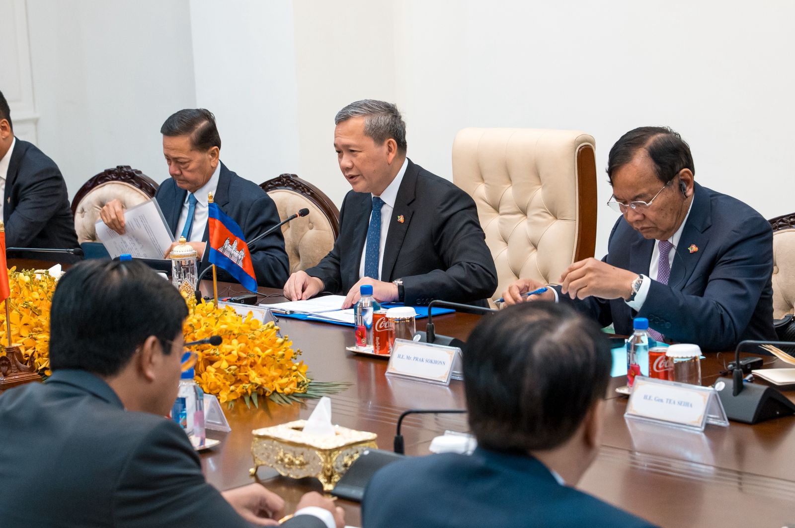 នារសៀលថ្ងៃទី០៦ ខែកុម្ភៈ ឆ្នាំ២០២៦, សម្តេចមហាបវរធិបតី ហ៊ុន ម៉ាណែត នាយករដ្ឋមន្រ្តី នៃព្រះរាជាណាចក្រកម្ពុជា បានទទួលជួបពិភាក្សាការងារជាមួយ ឯកឧត្តម ផាម មិញជិញ (PHAM Minh Chinh) នាយករដ្ឋមន្ត្រី នៃសាធារណរដ្ឋសង្គមនិយមវៀតណាម នៅវិមាន៧មករា ក្នុងឱកាសដែលឯកឧត្តមនាយករដ្ឋមន្ត្រីវៀតណាម បានអញ្ជើញចូលរួមកិច្ចប្រជុំរវាងថ្នាក់ដឹកនាំគណបក្សប្រជាជនកម្ពុជា, ថ្នាក់ដឹកនាំគណបក្សកុម្មុយនីស្តវៀតណាម និងថ្នាក់ដឹកនាំគណបក្សប្រជាជនបដិវត្តន៍ឡាវ នៅរាជធានីភ្នំពេញ ព្រះរាជាណាចក្រកម្ពុជា ពីថ្ងៃទី៦ដល់ថ្ងៃទី៧ ខែកុម្ភៈ ឆ្នាំ២០២៦។