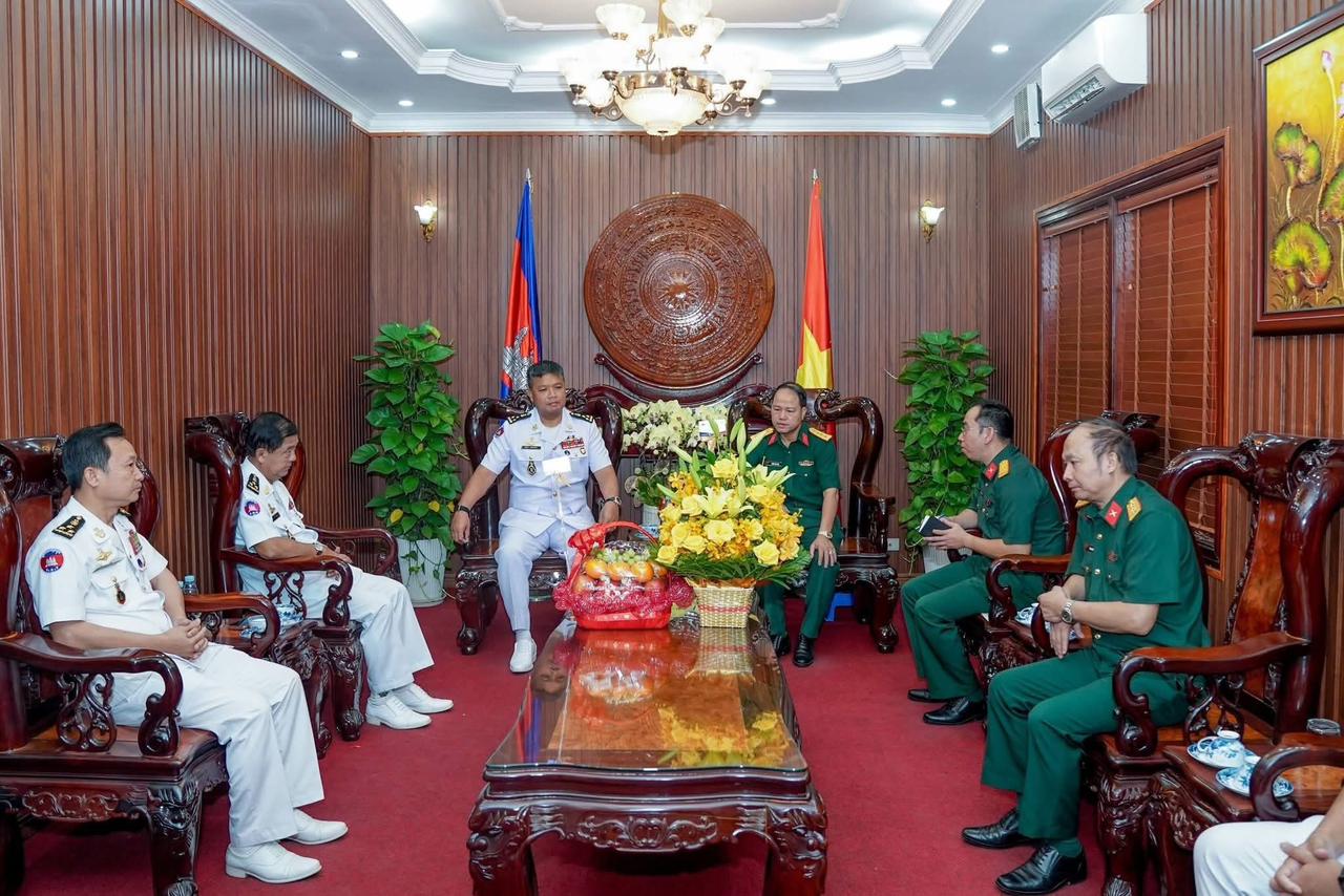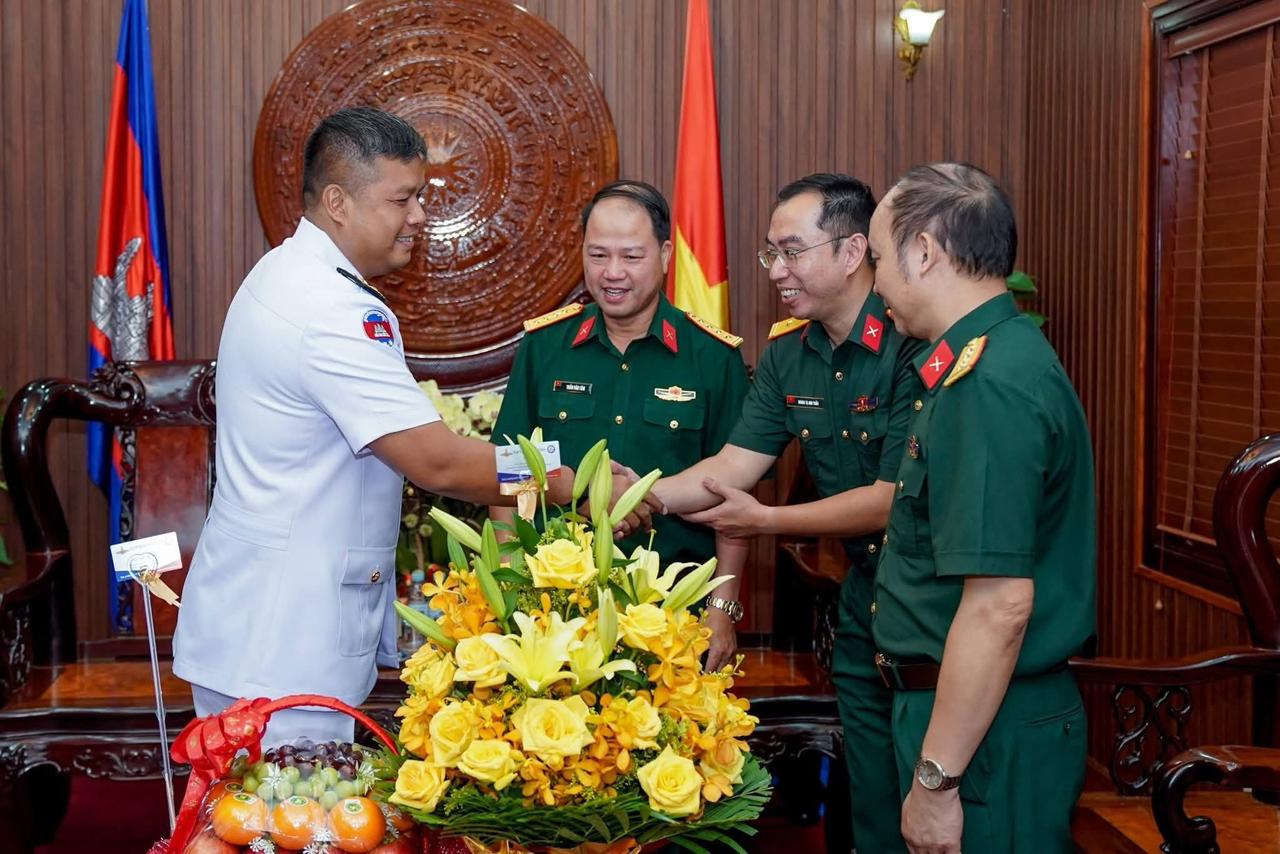 ឯកឧត្តម ឧត្តមនាវីឯក ទៀ សុខា មេបញ្ជាការកងទ័ពជើងទឹក អញ្ជើញដឹកនាំប្រតិភូកងទ័ពជើងទឹក ចូលជួបសំណេះសំណាល ជូនពរអនុព័ន្ធយោធាវៀតណាម ប្រចាំព្រះរាជាណាចក្រកម្ពុជា ក្នុងឱកាសបុណ្យចូលឆ្នាំថ្មី ប្រពៃណីជាតិវៀតណាម នាពេលខាងមុខនេះ=====================រាជធានីភ្នំពេញ៖នៅព្រឹកថ្ងៃចន្ទ ៧រោច ខែមាឃ ឆ្នាំម្សាញ់ សប្តស័ក ពុទ្ធសករាជ ២៥៦៩ ត្រូវនិងថ្ងៃទី៩ ខែកុម្ភៈ ឆ្នាំ២០២៦ ឯកឧត្តម ឧត្តមនាវីឯក ទៀ សុខា មេបញ្ជាការកងទ័ពជើងទឹក អនុប្រធានប្រចាំការ និងជាអគ្គលេខាធិការ នៃគណៈកម្មាធិការជាតិសន្តិសុខលម្ហសមុទ្រ អញ្ជើញដឹកនាំប្រតិភូកងទ័ពជើងទឹក ចូលជួបសំណេះសំណាល ជូនពរលោកវរសេនីយ៍ឯកពិសេស ជិន វន់ តឹម ប្រធានការិយាល័យអនុព័ន្ធយោធាសាធារណរដ្ឋសង្គមនិយមវៀតណាម ប្រចាំព្រះរាជាណាចក្រកម្ពុជា ក្នុងឱកាសបុណ្យចូលឆ្នាំថ្មី ប្រពៃណីជាតិវៀតណាម នាពេលខាងមុខនេះ នៅស្ថានទូតសាធារណរដ្ឋសង្គមនិយមវៀតណាម ប្រចាំនៅព្រះរាជាណាចក្រកម្ពុជា។
