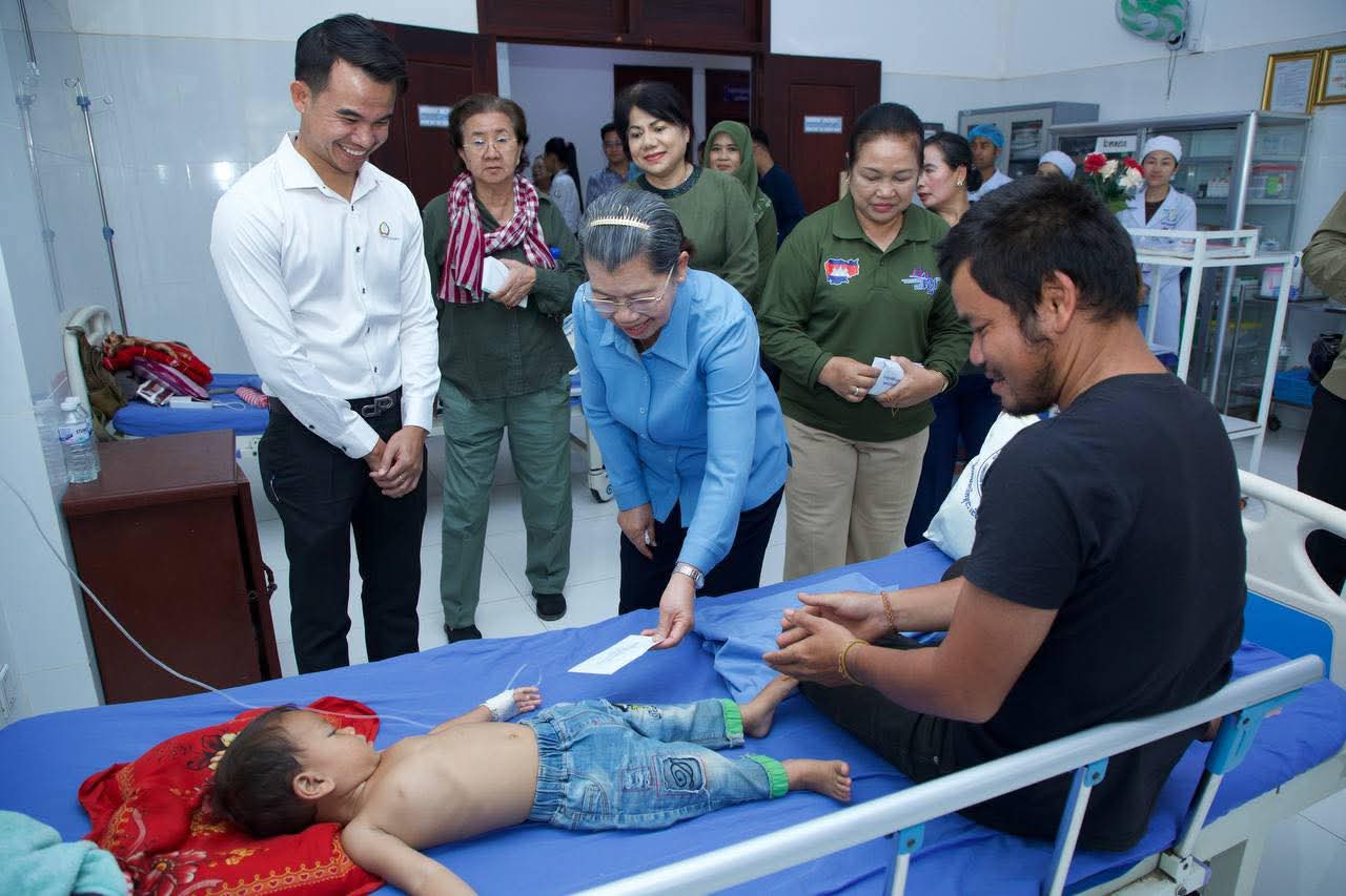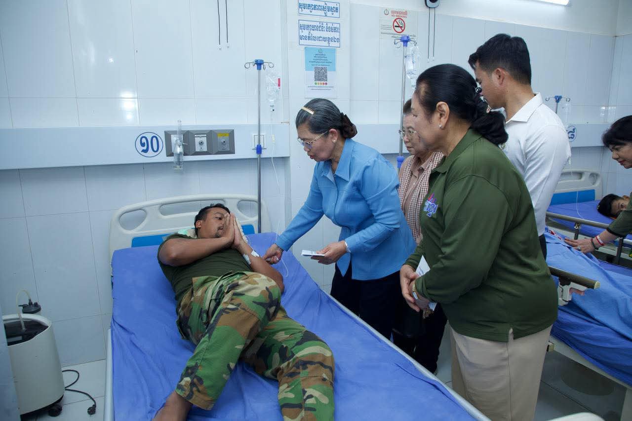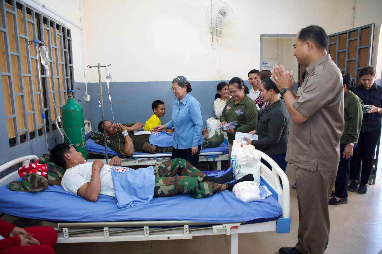 សម្តេច ម៉ែន សំអន អញ្ជើញសួរសុខទុក្ខវីរកងទ័ព និងប្រជាពលរដ្ឋកំពុងសម្រាកព្យាបាលជំងឺនៅមន្ទីរពេទ្យបង្អែកជាំក្សាន្ត =================សម្តេចកិត្តិសង្គហបណ្ឌិត ម៉ែន សំអន ឧត្តមប្រឹក្សាផ្ទាល់ព្រះមហាក្សត្រ និងជាប្រធានសមាគមនារីកម្ពុជា ដើម្បីសន្តិភាពនិងអភិវឌ្ឍន៍ បានអញ្ជើញសួរសុខទុក្ខ ដល់វីរកងទ័ព និងប្រជាពលរដ្ឋ ដែលបាននឹងកំពុងសម្រាកព្យាបាលនៅមន្ទីរពេទ្យបង្អែកជាំក្សាន្ត នារសៀលថ្ងៃចន្ទ ខែផល្គុន ឆ្នាំម្សាញ់ សប្តស័ក ព.ស ២៥៦៩ ត្រូវនឹងថ្ងៃទី៩ ខែមីនា ឆ្នាំ២០២៦។អញ្ជើញអមដំណើរនាពេលនោះ រួមមាន ៖ លោកជំទាវ មាន សំអាន ប្រធានគណៈកម្មការទី ៨ ព្រឹទ្ធសភា ឯកឧត្តម លោកជំទាវ សមាជិក សមាជិកា ព្រឹទ្ធសភា រដ្ឋសភា ឯកឧត្តម គីម រិទ្ធិ និងលោកជំទាវ និងប្រតិភូអមដំណើរមួយចំនួនទៀត។ឆ្លៀតក្នុងឱកាសនោះ សម្តេចកិត្តិសង្គហបណ្ឌិត ក៏បាននាំនូវប្រសាសន៍ផ្តាំផ្ញើសាកសួរសុខទុក្ខពីសំណាក់ សម្តេចអគ្គមហាសេនាបតីតេជោ ហ៊ុន សែន ប្រធានគណបក្សប្រជាជនកម្ពុជា និងសម្តេចកិត្តិព្រឹទ្ធបណ្ឌិត ប៊ុន រ៉ានី ហ៊ុនសែន ប្រធានកាកបាទក្រហមកម្ពុជា សម្តេចមហាបវរធិបតី ហ៊ុន ម៉ាណែត នាយករដ្ឋមន្ត្រី និងលោកជំទាវបណ្ឌិត ពេជ ចន្ទមុន្នី នូវការនឹករលឹក និងការគិតគូរអំពីសុខទុក្ខរបស់កងទ័ព ក៏ដូចជាប្រជាពលរដ្ឋទូទាំងប្រទេសផងដែរ ។សម្តេចកិត្តិសង្គហបណ្ឌិត ក៏បានលើកទឹកចិត្ត និងថ្លែងនូវការកោតសសើរ ចំពោះការលះបង់ដ៏ធំធេង ដែលមិនអាចកាត់ថ្លៃបាន ក្នុងនាមជាទ័ពជួរមុខ ក្នុងការរក្សាសន្តិភាព ការការពារអធិបតេយ្យភាព បូរណភាពទឹកដី ការពារពីការរំលោភបំពាន ។ សម្តេចកិត្តិសង្គហបណ្ឌិតក៏បានជូនពរឱ្យវីរកងទ័ពទាំងអស់ ឆាប់បានជាសះស្បើយ និងវិលត្រលប់ចូលអង្គភាព ដើម្បីបន្តបេសកកម្មការពារប្រទេសជាតិ។ជាការឆ្លើយតប វីរកងទ័ពក៏បានគោរពថ្លែងអំណរគុណ សម្តេចអគ្គមហាសេនាបតីតេជោ ហ៊ុន សែន សម្តេចកិត្តិព្រឹទ្ធបណ្ឌិត ប៊ុន រ៉ានី ហ៊ុនសែន, សម្តេចមហាបវរធិបតី ហ៊ុន ម៉ាណែត និងលោកជំទាវបណ្ឌិត ពេជ ចន្ទមុន្នី និងសម្តេចកិត្តិសង្គហបណ្ឌិត ក៏ដូចជាថ្នាក់ដឹកនាំគ្រប់លំដាប់ថ្នាក់ ដែលបានចាត់តំណាង និងចុះមកសួរសុខទុក្ខពួកគាត់ដល់មន្ទីរពេទ្យ និងសូមគោរពជូនពរ សម្តេច លោកជំទាវ លោក លោកស្រី ទាំងអស់ទទួលបាននូវពុទ្ធពរទាំង ៤ប្រការ គឺអាយុ វណ្ណៈ សុខៈ ពលៈ កុំបីឃ្លាងឃ្លាតឡើយ។ អំណោយសម្រាប់អ្នកសម្រាកនៅមន្ទីរពេទ្យចំនួន ៥៨នាក់ក្នុងម្នាក់ៗទទួលបាន ទឹកបរិសុទ្ធ ត្រីខ ឃីត (ដំណាប់ខ្ញី ថ្នាំពេទ្យ ក្រណាត់ដណ្តប់ ក្រមា ថ្នាំដុសធ្មេញ ច្រាសដុសធ្មេញ សាប៊ូដុំដុសខ្លួន ទឹកឃ្មុំ ប្រេងកូឡា បបរខាប់គ្រប់គ្រឿងកូនក្មេង) និងថវិកាមួយចំនួន ចំណែកឯគ្រូពេទ្យ ៦២នាក់ ទទួលបានថវិកាមួយចំនួនផងដែរ៕