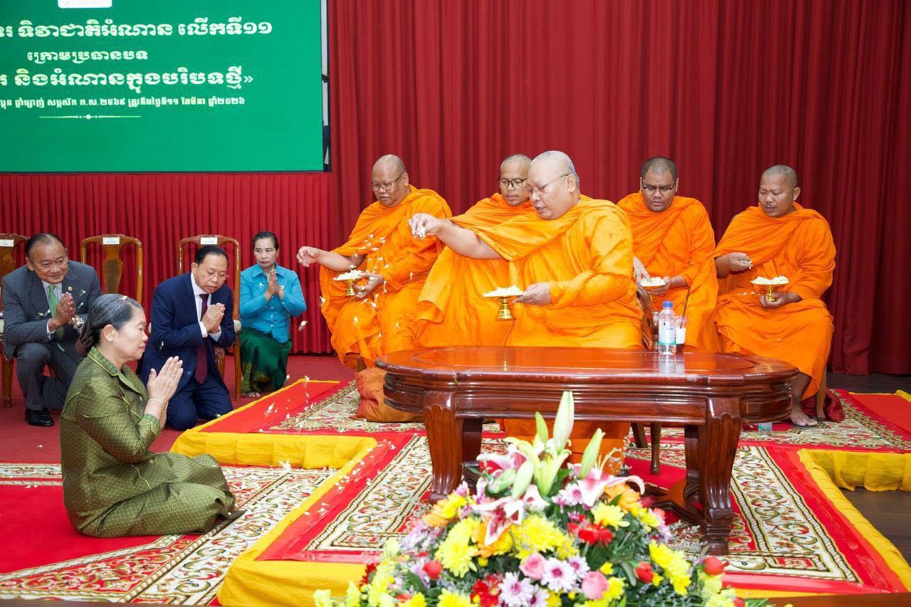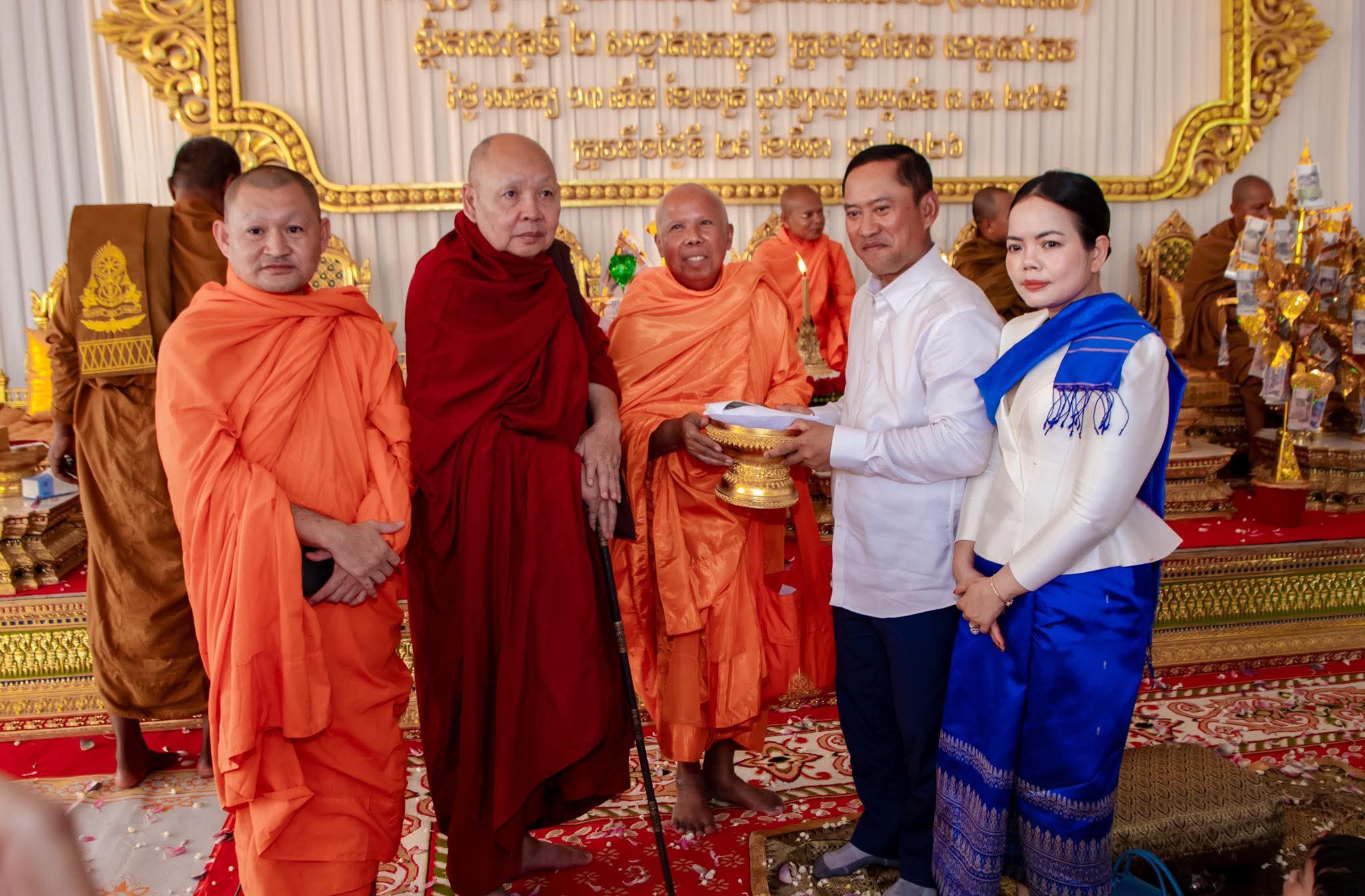 ឯកឧត្តម វ៉ី សំណាង អភិបាលខេត្តតាកែវ និងលោកជំទាវ ព្រមទាំងបុត្រា អញ្ជើញចូលរួមពិធីបុណ្យផ្ការស្មីសាមគ្គី ដើម្បីប្រមូលបច្ច័យ យកមកសាងសង់ ប្រាសាទសិរិវិជ័យមាត់បឹងតាកែវ នៅសាលាខេត្តតាកែវ