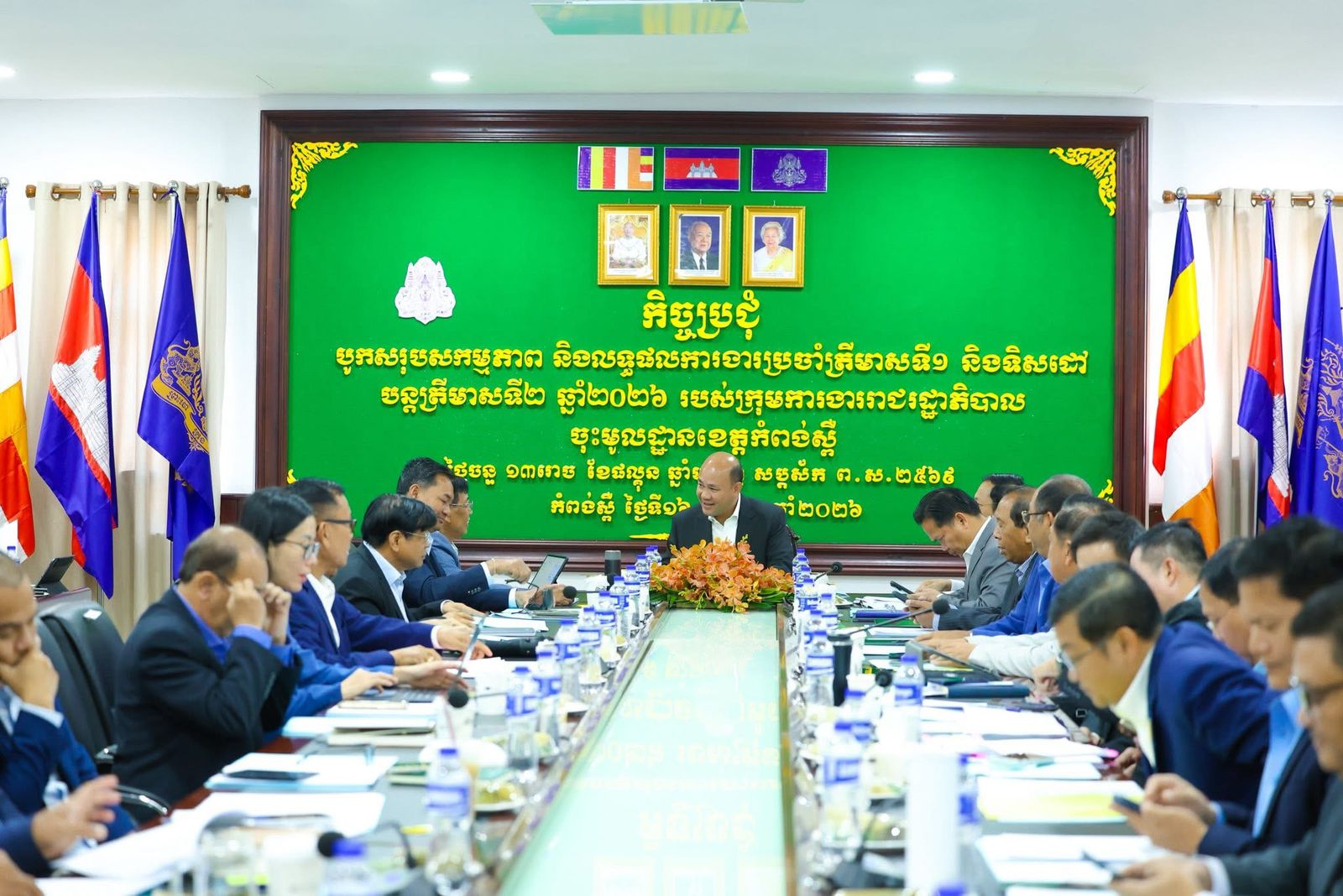 ឯកឧត្តមបណ្ឌិត ជាម ច័ន្ទសោភ័ណ អភិបាលខេត្តកំពង់ស្ពឺ អញ្ជើញចូលរួមកិច្ចប្រជុំបូកសរុបសកម្មភាព និងលទ្ធផលការងារប្រចាំត្រីមាសទី១ និងលើកទិសដៅបន្ត របស់ក្រុមការងាររាជរដ្ឋាភិបាលចុះមូលដ្ឋានខេត្តកំពង់ស្ពឺ =================នាព្រឹកថ្ងៃចន្ទ ១៣រោច ខែផល្គុន ឆ្នាំម្សាញ់ សប្ដស័ក ពុទ្ធសករាជ ២៥៦៩ ត្រូវនឹងថ្ងៃទី១៦ ខែមីនា ឆ្នាំ២០២៦ ឯកឧត្តម អ៉ិន ឃុន សមាជិកក្រុមប្រឹក្សាខេត្ត តំណាង ឯកឧត្តម យឹម សុខុម ប្រធានក្រុមប្រឹក្សាខេត្ត ឯកឧត្តមបណ្ឌិត ជាម ច័ន្ទសោភ័ណ អភិបាល នៃគណៈអភិបាលខេត្ត បានអញ្ជើញចូលរួមក្នុងកិច្ចប្រជុំបូកសរុបសកម្មភាព និងលទ្ធផលការងារប្រចាំត្រីមាសទី១ និងលើកទិសដៅបន្ត របស់ក្រុមការងាររាជរដ្ឋាភិបាលចុះមូលដ្ឋានខេត្តកំពង់ស្ពឺ ក្រោមអធិបតីដ៏ខ្ពង់ខ្ពស់ ឯកឧត្តម ហ៊ុន ម៉ានី ឧបនាយករដ្ឋមន្ត្រី រដ្ឋមន្ត្រីក្រសួងមុខងារសាធារណៈ និងជាប្រធានក្រុមការងាររាជរដ្ឋាភិបាលចុះមូលដ្ឋានខេត្តកំពង់ស្ពឺ ដែលរៀបចំឡើងនៅសាលប្រជុំ យឹម សុខុម ជាន់ទី១ អគាររដ្ឋបាលខេត្ត៕