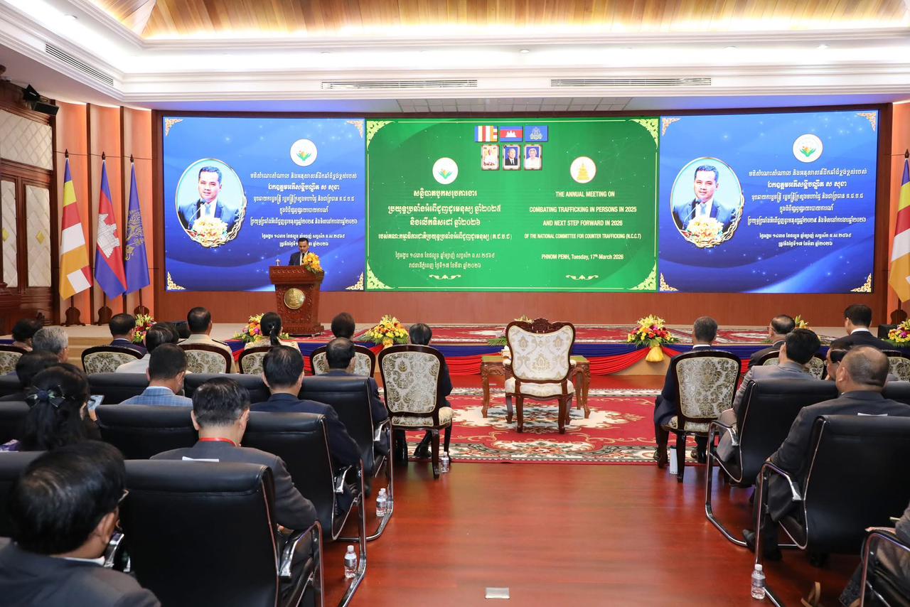 ឯកឧត្ដមសន្តិបណ្ឌិត សុខ ផល រដ្នលេខាធិការក្រសួងមហាផ្ទៃ អញ្ជើញចូលរួមកិច្ចប្រជុំផ្សព្វផ្សាយរបាយការណ៍ជាតិការងារប្រយុទ្ធប្រឆាំងអំពើជួញដូរមនុស្សឆ្នាំ២០២៥ និងលើកទិសដៅការងារឆ្នាំ២០២៦ នៅទីស្តីការក្រសួងមហាផ្ទៃ =================នៅព្រឹកថ្ងៃអង្គារ ១៤រោច ខែផល្គុន ឆ្នាំម្សាញ់ សប្តស័ក ព.ស.២៥៦៩ ត្រូវនឹងថ្ងៃទី១៧ ខែមីនា ឆ្នាំ២០២៦ ឯកឧត្ដមសន្តិបណ្ឌិត សុខ ផល រដ្នលេខាធិការក្រសួងមហាផ្ទៃ បានអញ្ជើញចូលរួមក្នុងកិច្ចប្រជុំផ្សព្វផ្សាយរបាយការណ៍ជាតិការងារប្រយុទ្ធប្រឆាំងអំពើជួញដូរមនុស្សឆ្នាំ២០២៥ និងលើកទិសដៅការងារឆ្នាំ២០២៦ ក្រោមអធិបតីភាពដ៏ខ្ពង់ខ្ពស់ ឯកឧត្តមអភិសន្តិបណ្ឌិត ស សុខា ឧបនាយករដ្ឋមន្ត្រី រដ្ឋមន្ត្រីក្រសួងមហាផ្ទៃ និងជាប្រធានគណៈកម្មាធិការជាតិប្រយុទ្ធប្រឆាំងអំពើជួញដូរមនុស្ស(គ.ជ.ប.ជ) ដែលពិធីនេះធ្វើឡើងនៅសាលប្រជុំអគារ S នៃទីស្តីការក្រសួងមហាផ្ទៃ ៕