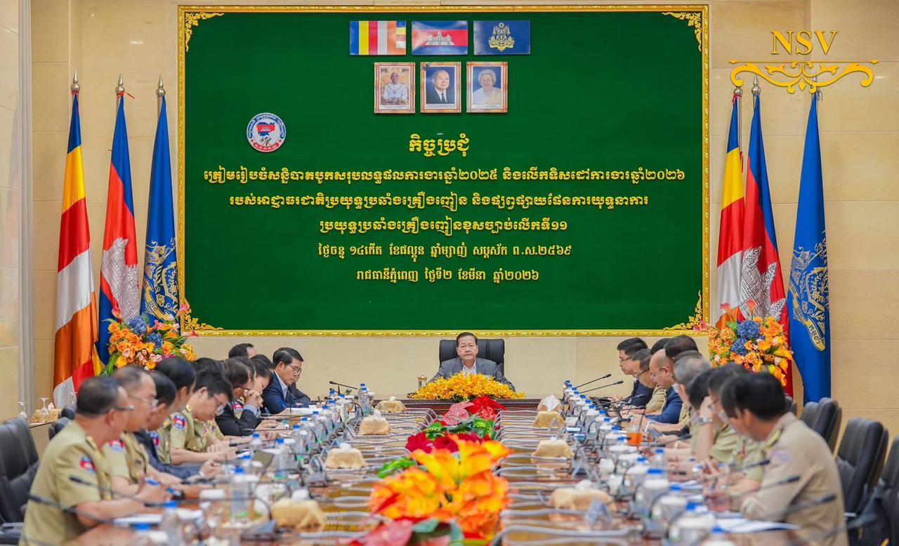 ឯកឧត្តមសន្តិបណ្ឌិត នេត សាវឿន ឧបនាយករដ្ឋមន្រ្តី អញ្ជើញជាអធិបតីដ៏ខ្ពង់ខ្ពស់ដឹកនាំកិច្ចប្រជុំត្រៀមរៀបចំសន្និបាតបូកសរុបលទ្ធផលការងារឆ្នាំ២០២៥ និងលើកទិសដៅការងារឆ្នាំ២០២៦ របស់អាជ្ញាធរជាតិប្រយុទ្ធប្រឆាំងគ្រឿងញៀន =============(ភ្នំពេញ): នាព្រឹកថ្ងៃចន្ទ ១៤កើត ខែផល្គុន ឆ្នាំម្សាញ់ សប្តស័ក ព.ស.២៥៦៩ ត្រូវនឹងថ្ងៃទី២ ខែមីនា ឆ្នាំ២០២៦ ឯកឧត្តមសន្តិបណ្ឌិត នេត សាវឿន ឧបនាយករដ្ឋមន្រ្តី ប្រធានអាជ្ញាធរជាតិប្រយុទ្ធប្រឆាំងគ្រឿងញៀន បានអញ្ជើញជាអធិបតីដ៏ខ្ពង់ខ្ពស់ ដឹកនាំកិច្ចប្រជុំត្រៀមរៀបចំសន្និបាតបូកសរុបលទ្ធផលការងារឆ្នាំ២០២៥ និងលើកទិសដៅការងារឆ្នាំ២០២៦ របស់អាជ្ញាធរជាតិប្រយុទ្ធប្រឆាំងគ្រឿងញៀន និងផ្សព្វផ្សាយផែនការយុទ្ធនាការប្រយុទ្ធប្រឆាំងគ្រឿងញៀនខុសច្បាប់លើកទី១១ នៅទីស្ដីការគណៈរដ្ឋមន្ត្រី។កិច្ចប្រជុំមានការអញ្ជើញចូលរួមពី ឯកឧត្តម ព្រុំ សុខា ទេសរដ្ឋមន្ត្រី អនុប្រធានអាជ្ញាធរជាតិប្រយុទ្ធប្រឆាំងគ្រឿងញៀន និង ឯកឧត្តម នាយឧត្តមសេនីយ៍ មាស វិរិទ្ធ អគ្គលេខាធិការ ឯកឧត្តម លោកជំទាវ អគ្គលេខាធិការរង លោកប្រធាននាយកដ្ឋាន/មន្ទីរ និងមន្ត្រីជំនាញ ។