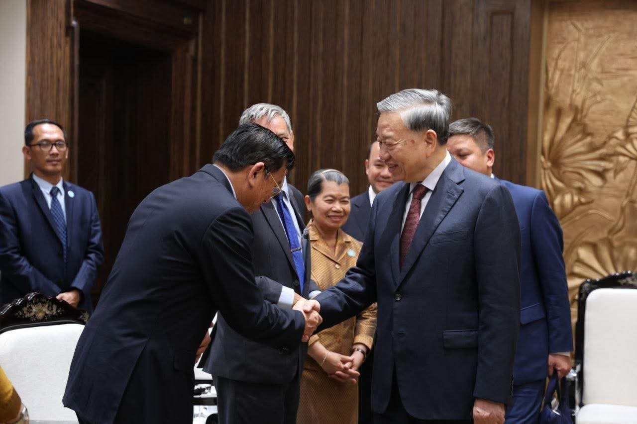 សម្តេចកិត្តិសង្គហបណ្ឌិត ម៉ែន សំអន អញ្ជើញជួបសម្តែងការគួរសមជាមួយ ឯកឧត្តម តូ ឡឹម ================រដ្ឋធានីហាណូយ ថ្ងៃចន្ទ ៥កើត ខែចេត្រ ឆ្នាំម្សាញ់ សប្តស័ក ព.ស.២៥៦៩ ត្រូវនឹងថ្ងៃទី២៣ ខែមីនា ឆ្នាំ២០២៦ គណៈប្រតិភូរណសិរ្សសាមគ្គីអភិវឌ្ឍន៍មាតុភូមិកម្ពុជា ដឹកនាំដោយ សម្តេចកិត្តិសង្គហបណ្ឌិត ម៉ែន សំអន ប្រធានក្រុមប្រឹក្សារណសិរ្ស បានជួបសម្តែងការគួរសមជាមួយ ឯកឧត្តម តូ ឡឹម អគ្គលេខាធិការបក្សកុម្មុយនីស្តវៀតណាម នៅទីស្នាក់មជ្ឈិមបក្ស។ ការឆ្លៀតពេលវេលាដ៏មមាញឹករបស់ ឯកឧត្តមអគ្គលេខាធិការ ដើម្បីទទទួលស្វាគមន៍គណៈប្រតិភូជាន់ខ្ពស់នៃរណសិរ្សកម្ពុជា នាខណៈនេះ បានឆ្លុះបញ្ចាំងច្បាស់នូវការយកចិត្តទុកដាក់ខ្ពស់ និងផ្តល់សារៈសំខាន់ពិសេស ចំពោះភាពជាអ្នកជិតខាងល្អមិត្តភាពជាប្រពៃណី កិច្ចសហប្រតិបត្តិការគ្រប់ជ្រុងជ្រោយ និងស្ថិរភាពយូរអង្វែងរវាងប្រទេសយើងទាំងពីរ។ ទោះក្នុងបរិការណ៍តំបន់ និងអន្តរជាតិ ដែលកំពុងវិវត្តយ៉ាងស្មុគស្មាញ និងមិនប្រាកដប្រជា ភាពជាអ្នកជិតខាងល្អ និងចំណងមិត្តភាពកម្ពុជា-វៀតណាម មិនអាចកាត់ផ្តាច់ពីគ្នាបានឡើយ និងនៅតែបន្តរឹងមាំ ផ្អែកលើសច្ចភាពនៃការជួយគាំទ្រគ្នាវិញទៅមក ដើម្បីការអភិវឌ្ឍ សន្តិភាព ស្ថិរភាព និងវិបុលភាពរួម ដែលបានបង្ហាញច្បាស់តាមរយៈទិដ្ឋភាពចម្បង ០៣៖ ទី១-កត្តាប្រវត្តិសាស្ត្រ៖ ប្រទេសយើងទាំងពីរ តែងជួយគ្នាទៅវិញទៅមកគ្រប់គ្រាលំបាក។ កម្ពុជា បានជួយជ្រោមជ្រែងវៀតណាមក្នុងបុព្វហេតុនៃការបង្រួបបង្រួមទឹកដី និងឯករាជ្យភាពនៅទសវត្សរ៍ឆ្នាំ១៩៦០ និង១៩៧០ ហើយក៏មិនអាចបំភ្លេចបាននូវការគាំទ្រទាន់ពេលវេលា និងមិនអាចខ្វះបានពីភាគីវៀតណាម ទាំងផ្នែកនយោបាយ និងសម្ភារៈ ជាពិសេសកងទ័ពស្ម័គ្រចិត្ត និងប្រជាជនវៀតណាម ក្នុងការជួយរំដោះប្រជាជនកម្ពុជាចេញពីរបបខ្មែរក្រហម នៅទសវត្សរ៍ឆ្នាំ១៩៧០ និង១៩៨០។ ទី២-កត្តាសេដ្ឋកិច្ច៖ ជាប្រទេសភូមិផងរបងជាមួយគ្នា កម្ពុជា និងវៀតណាម តែងគាំទ្រ សាទរសមិទ្ធផលសម្រេចបានក្នុងមាគ៌ានៃការកសាងអភិវឌ្ឍជាតិទៅវិញទៅមក ហើយបន្តបំពេញបន្ថែមឱ្យគ្នា ដើម្បីជំរុញពាណិជ្ជកម្មទ្វេភាគី និងរួមចំណកដល់សមាហរណកម្មសេដ្ឋកិច្ចតំបន់ រួមទាំងប្តេជ្ញាពង្រីកទំហំពាណិជ្ជកម្មទ្វេភាគីដល់ ២០ពាន់លានដុល្លារអាមេរិក នាអនាគត។ ក៏សូមកត់សម្គាល់នូវភាពជោគជ័យរបស់វៀតណាមក្នុងការកែទម្រង់ និងអភិវឌ្ឍសេដ្ឋកិច្ច-សង្គម ហើយកំពុងក្លាយជាកម្លាំងសេដ្ឋកិច្ចសំខាន់មួយក្នុងតំបន់។ ទី៣-កត្តាសង្គមវប្បធម៌៖ ការផ្លាស់ប្តូរវប្បធម៌ ប្រពៃណី និងទំនាក់ទំនងប្រជាជន-ប្រជាជន គឺជាមូលដ្ឋានគ្រឹះដ៏រឹងមាំ នៃទំនាក់ទំនងដ៏ជិតស្និទ្ធ មិត្តភាពយូរអង្វែងរវាងយុវជនជំនាន់ក្រោយ ព្រមទាំងការពង្រឹងទំនុកចិត
