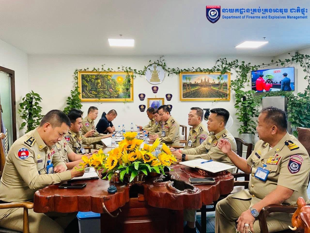 លោកឧត្តមសេនីយ៍ទោ សែម គន្ធា ប្រធាននាយកដ្ឋានគ្រប់គ្រងអាវុធ ជាតិផ្ទុះ អញ្ជើញដឹកនាំកិច្ចប្រជុំផ្សព្វផ្សាយសេចក្តីណែនាំរបស់ក្រសួងមហាផ្ទៃ និងអនុសាសន៍ណែនាំរបស់ ឯកឧត្តម នាយឧត្តមសេនីយ៍ ស ថេត អគ្គស្នងការនគរបាលជាតិ==============ទីស្តីការក្រសួងមហាផ្ទៃ៖ នារសៀលថ្ងៃព្រហស្បតិ៍ ទី២៦ ខែមីនា ឆ្នាំ២០២៦ លោកឧត្តមសេនីយ៍ទោ សែម គន្ធា ប្រធាននាយកដ្ឋានគ្រប់គ្រងអាវុធ ជាតិផ្ទុះ អញ្ជើញដឹកនាំកិច្ចប្រជុំផ្សព្វផ្សាយសេចក្តីណែនាំរបស់ក្រសួងមហាផ្ទៃ និងអនុសាសន៍ណែនាំរបស់ ឯកឧត្តម នាយឧត្តមសេនីយ៍ ស ថេត អគ្គស្នងការនគរបាលជាតិ ឱ្យពង្រឹងនីតិវិធី ក្នុងការត្រួតពិនិត្យ តាមដានការងារលើការគ្រប់គ្រងអាវុធ រំសេវ និងគ្រឿងផ្ទុះគ្រប់ប្រភេទ សំដៅធានាសន្តិសុខ សុវត្ថិភាពសាធារណៈ និងចៀសវាងហានិភ័យផ្សេងៗ ដែលអាចកើតឡើងជាយថាហេតុ ដោយមានការចូលរួមពីលោកឧត្តមសេនីយ៍ វរសេនីយ៍ អនុប្រធាននាយកដ្ឋាន នាយការិយាល័យជំនាញ និងមន្រ្តីពាក់ព័ន្ធរបស់នាយកដ្ឋានគ្រប់គ្រងអាវុធ ជាតិផ្ទុះ។