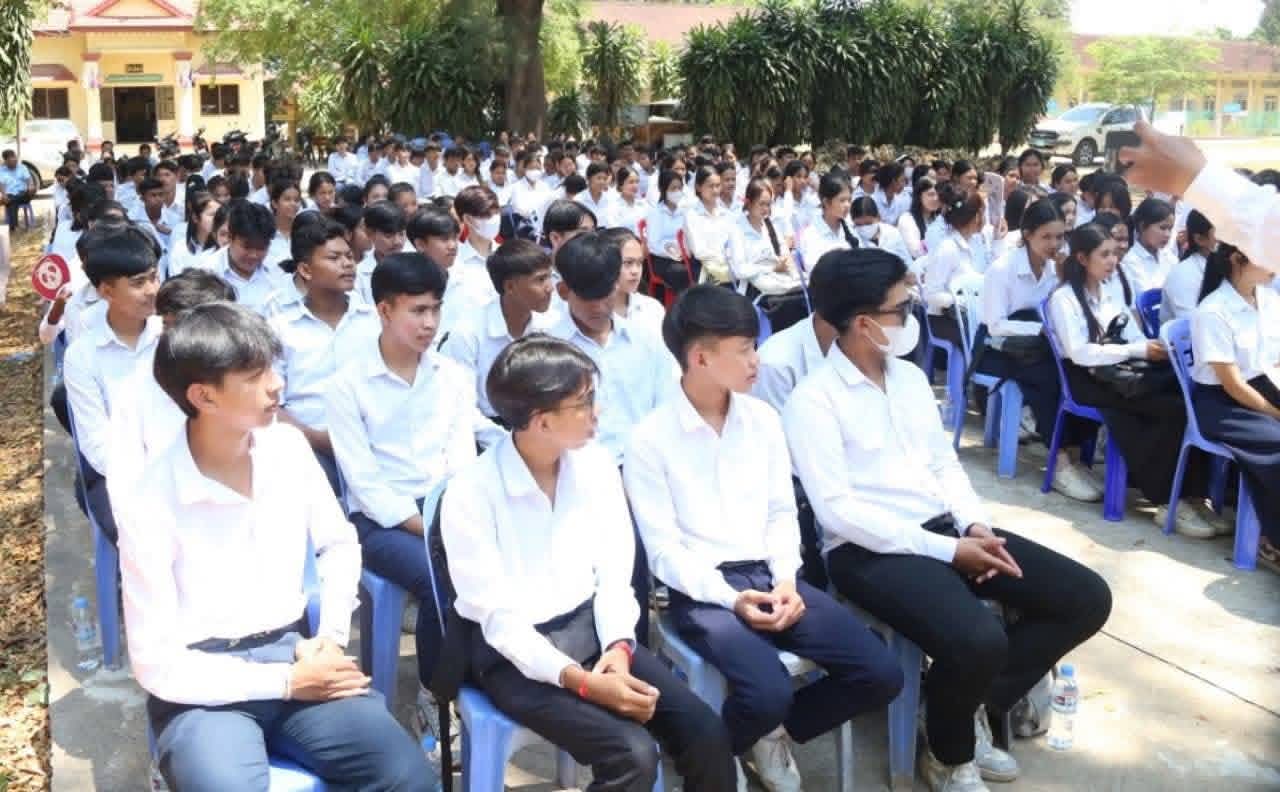 លោក ប៊ិន ឡាដា អភិបាលស្រុកស្រីសន្ធរ អញ្ចើញចូលរួមជួបសំណេះសំណាលជាមួយលោកគ្រូ អ្នកគ្រូ និងសិស្សានុសិស្សថ្នាក់ទី១១ និងទី១២ នៃវិទ្យាល័យស្រីសន្ធរ==============នាព្រឹកថ្ងៃសៅរ៍ ទី២៨ ខែមីនា ឆ្នាំ២០២៦ លោក ប៊ិន ឡាដា អភិបាល នៃគណៈអភិបាលស្រុកស្រីសន្ធរ បានអញ្ចើញដឹកនាំក្រុមការងារ រួមជាមួយតំណាងឯកឧត្តម លូ គឹមឈន់ ប្រធានក្រុមការងាររាជរដ្ឋាភិបាលចុះមូលដ្ឋានស្រុក អមដំណើរឯកឧត្តម ផៃ សុខខេង អនុរដ្ឋលេខាធិការ ក្រសួងអប់រំ យុវជន និងកីឡា ចុះជួបសំណេះសំណាលផ្ទាល់ជាមួយលោកគ្រូ អ្នកគ្រូ និងសិស្សានុសិស្សថ្នាក់ទី១១ និងទី១២ នៃវិទ្យាល័យស្រីសន្ធរ សរុបចំនួន៣២៣នាក់ ស្រី១៩៧នាក់។
