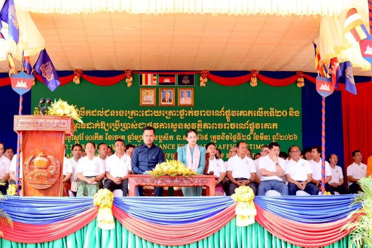 ឯកឧត្តម ស៊ុន សុវណ្ណារិទ្ធិ អភិបាលខេត្តកំពង់ឆ្នាំង អញ្ចើញចូលរួមក្នុងទិវាអន្តរជាតិរំលឹកដល់ជនរងគ្រោះដោយគ្រោះថ្នាក់ចរាចរណ៍ផ្លូវគោកលើកទី២០ និងពិធីសម្ពោធដាក់ឱ្យប្រើប្រាស់សួនសុវត្ថិភាពចរាចរណ៍ផ្លូវគោក ក្រោមអធិបតីភាពដ៏ខ្ពង់ខ្ពស់ឯកឧត្តមអភិសន្ដិបណ្ឌិត ស សុខា ឧបនាយករដ្ឋមន្ដ្រី និងលោកជំទាវ =====================នៅថ្ងៃសៅរ៍ ១០កើត ខែចេត្រ ឆ្នាំម្សាញ់ សប្តស័ក ព.ស.២៥៦៩ ត្រូវនឹងថ្ងៃទី២៨ ខែមីនា ឆ្នាំ២០២៦ ឯកឧត្តម ស៊ុន សុវណ្ណារិទ្ធិ អភិបាលនៃគណៈអភិបាលខេត្តកំពង់ឆ្នាំង បានអញ្ចើញចូលរួមក្នុងទិវាអន្តរជាតិរំលឹកដល់ជនរងគ្រោះដោយគ្រោះថ្នាក់ចរាចរណ៍ផ្លូវគោកលើកទី២០ និងពិធីសម្ពោធដាក់ឱ្យប្រើប្រាស់សួនសុវត្ថិភាពចរាចរណ៍ផ្លូវគោក ក្រោមអធិបតីភាពដ៏ខ្ពង់ខ្ពស់ឯកឧត្តមអភិសន្ដិបណ្ឌិត ស សុខា ឧបនាយករដ្ឋមន្ដ្រី រដ្ឋមន្ត្រីក្រសួងមហាផ្ទៃ និងជាប្រធានគណៈកម្មាធិការជាតិសុវត្ថិភាពចរាចណ៍ផ្លូវគោក និងលោកជំទាវ កែ សួនសុភី សសុខា ស្ថិតនៅវិទ្យាល័យក្រុងកំពង់ឆ្នាំង ខេត្តកំពង់ឆ្នាំង។ពិធីមានការអញ្ជើញចូលរួមពីឯកឧត្ដម លោកជំទាវអ្នកតំណាងរាស្ត្រ ឯកឧត្តម ប៉េង ពោធិ៍នា រដ្ឋមន្រ្តីក្រសួងសាធារណការ និងដឹកជញ្ជូន ឯកឧត្ដម លោកជំទាវថ្នាក់ដឹកនាំក្រសួង ស្ថាប័ន ឯកឧត្ដម លោកជំទាវអភិបាលរាជធានី-ខេត្ត ក្រុមប្រឹក្សាខេត្ត គណៈអភិបាលខេត្តកំពង់ឆ្នាំង ថ្នាក់ដឹកនាំកងកម្លាំង ប្រធានមន្ទីរ អង្គភាព អភិបាលក្រុង ស្រុក កងកម្លាំងប្រដាប់អាវុធគ្រប់ប្រភេទ មន្ត្រីរាជការ ប្រជាការពារ លោកគ្រូ អ្នកគ្រូ និងសិស្សានុសិស្សប្រមាណ ២ពាន់នាក់។ទិវាត្រូវបានប្រារព្ធឡើងដើម្បីលើកកម្ពស់ការយល់ដឹងរបស់ប្រជាពលរដ្ឋ អំពីហានិភ័យនៃគ្រោះថ្នាក់ចរាចរណ៍ដែលបានបង្កបាត់បង់ជីវិតមនុស្ស កាយសម្បទា និងបង្កការខូចខាតទ្រព្យសម្បត្តិ។ ទិវានេះក៏បានបំផុសស្មារតីអ្នកប្រើប្រាស់ផ្លូវទាំងអស់បង្កើនការប្រុងប្រយ័ត្នចូលរួមទប់ស្កាត់គ្រោះថ្នាក់ចរាចរណ៍ឱ្យស្ថិតនៅក្នុងកម្រិតទាបបំផុត។ក្រោមការផ្ដួចផ្ដើមរបស់ឯកឧត្តមអភិសន្ដិបណ្ឌិត ឧបនាយករដ្ឋមន្ត្រី សួនសុវត្ថិភាពចរាចណ៍ផ្លូវគោកត្រូវបានកសាងឡើងនៅក្នុងបរិវេណវិទ្យាល័យក្រុងកំពង់ឆ្នាំង ដែលជាសួនសិប្បនិម្មិតដំបូងបង្អស់ក្នុងប្រទេសកម្ពុជា ជាកន្លែងសម្រាប់ផ្ដល់ចំណេះដឹងទាំងទ្រឹស្ដី និងការអនុវត្តជាក់ស្ដែងនៅទីវាល ដើម្បីពង្រឹងដល់ការយល់ដឹងអំពីច្បាប់ចរាចរណ៍ ការគោរពសិទ្ធិអាទិភាព បច្ចេកទេស និងក្រមសីលធម៌នៃការបើកបរ ដល់សិស្សានុសិស្ស និងសាធារណជនទូទៅ ក្នុងគោលបំណងធានាសុវត្ថិភាព សណ្ដាប់ធ្នាប់សាធារណៈ និងការពារអាយុជីវិតប្រជាពលរដ្ឋ។