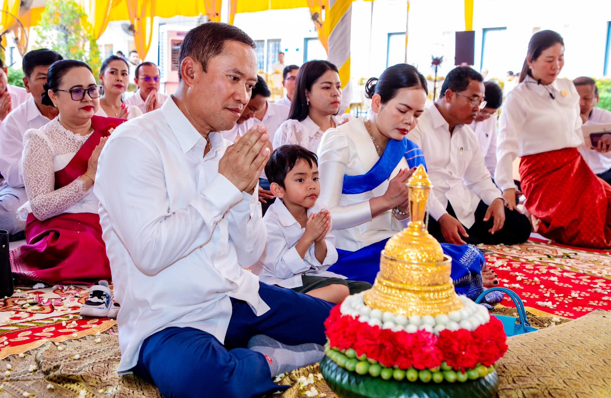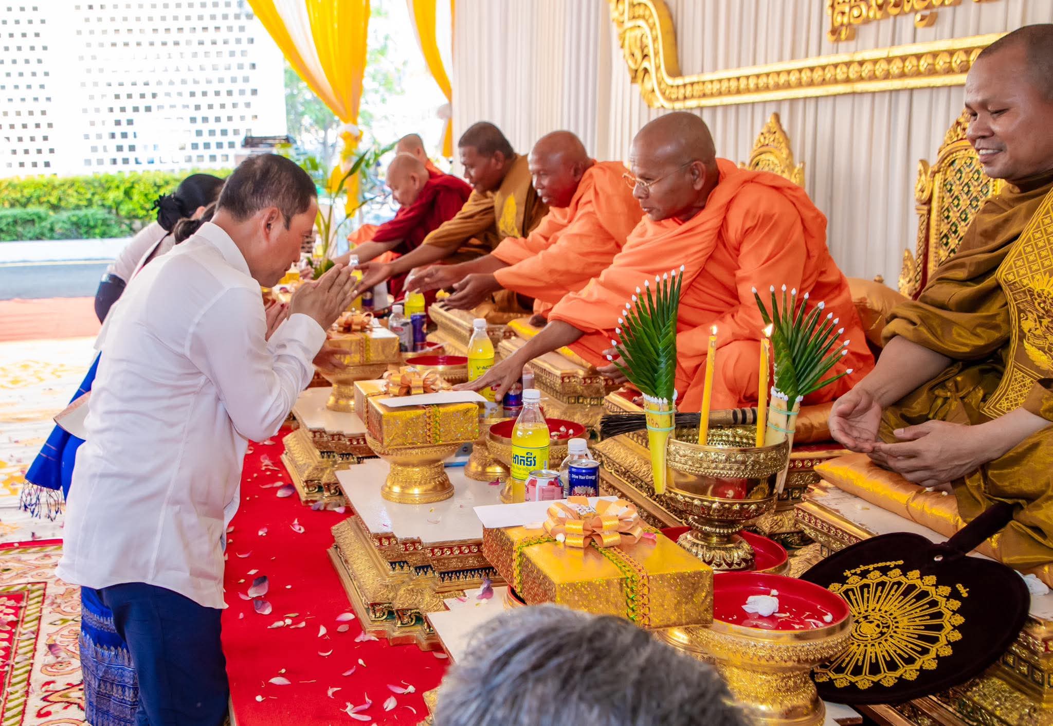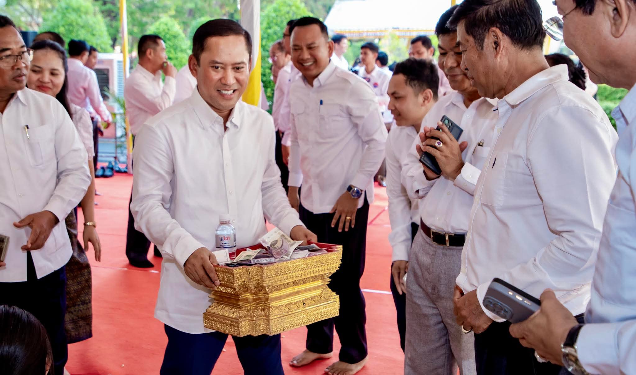ឯកឧត្តម វ៉ី សំណាង អភិបាលខេត្តតាកែវ និងលោកជំទាវ ព្រមទាំងបុត្រា អញ្ជើញចូលរួមពិធីបុណ្យផ្ការស្មីសាមគ្គី ដើម្បីប្រមូលបច្ច័យ យកមកសាងសង់ ប្រាសាទសិរិវិជ័យមាត់បឹងតាកែវ នៅសាលាខេត្តតាកែវ