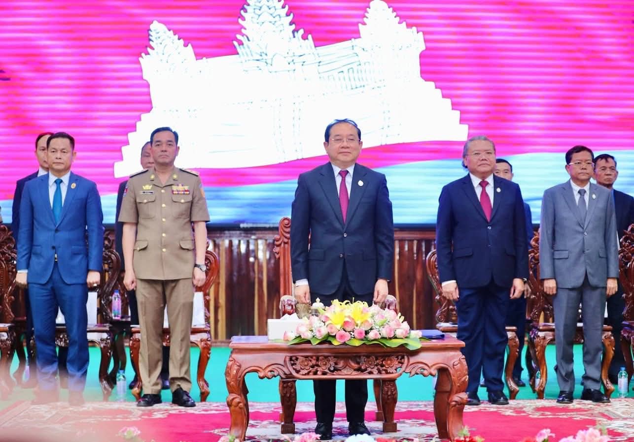 លោក ប៊ិន ឡាដា អភិបាលស្រុកស្រីសន្ធរ អញ្ចើញចូលរួមពិធីប្រកាស ចូលកាន់មុខដំណែងជាផ្លូវការ ប្រធានមន្ទីរសុខាភិបាល នៃរដ្ឋបាលខេត្តកំពង់ចាម ក្រោមអធិបតីភាពដ៏ខ្ពង់ខ្ពស់ឯកឧត្តម ឈាង រ៉ា រដ្ឋមន្រ្តីក្រសួងសុខាភិបាល នៅសាលាខេត្តកំពង់ចាម