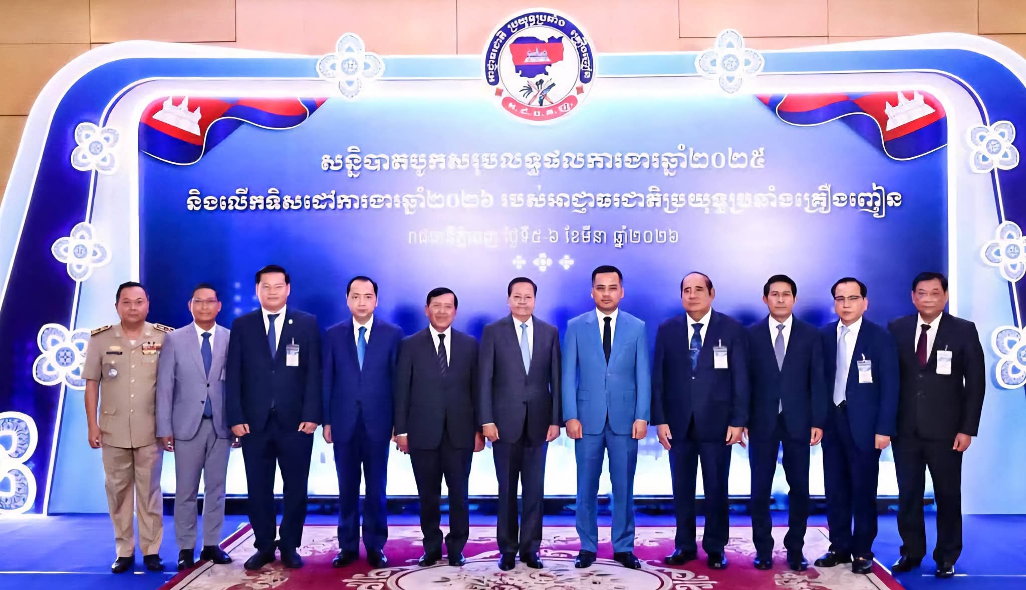 ឯកឧត្តមបណ្ឌិត ម៉ក់ ជីតូ រដ្ឋលេខាធិការក្រសួងមហាផ្ទៃ និងជាប្រធានគណៈកម្មការបង្ការ ទប់ស្កាត់ និងបង្រ្កាបគ្រឿងញៀនតាមបណ្តាខេត្តជាប់ព្រំដែន និងតាមច្រកទ្វារព្រំដែន អញ្ចើញចូលរួមពិធីផ្សព្វផ្សាយផែនការយុទ្ធនាការប្រយុទ្ធប្រឆាំងគ្រឿងញៀនខុសច្បាប់លើកទី១១ ======================នាព្រឹកថ្ងៃសុក្រ ៣រោច ខែផល្គុន ឆ្នាំម្សាញ់ សប្ដស័ក ព.ស២៥៦៩ ត្រូវនឹងថ្ងៃទី៦ ខែមីនា ឆ្នាំ២០២៦ ឯកឧត្តមបណ្ឌិត ម៉ក់ ជីតូ រដ្ឋលេខាធិការក្រសួងមហាផ្ទៃ និងជាប្រធានគណៈកម្មការបង្ការ ទប់ស្កាត់ និងបង្រ្កាបគ្រឿងញៀនតាមបណ្តាខេត្តជាប់ព្រំដែន និងតាមច្រកទ្វារព្រំដែន បានអញ្ចើញចូលរួមពិធីផ្សព្វផ្សាយផែនការយុទ្ធនាការប្រយុទ្ធប្រឆាំងគ្រឿងញៀនខុសច្បាប់លើកទី១១ ក្រោមអធិបតីភាពដ៏ខ្ពង់ខ្ពស់ឯកឧត្តមសន្តិបណ្ឌិត នេត សាវឿន ឧបនាយករដ្ឋមន្រ្តី ប្រធានអាជ្ញាធរជាតិប្រយុទ្ធប្រឆាំងគ្រឿងញៀន និងជាប្រធានគណៈបញ្ជាការយុទ្ធនាការប្រយុទ្ធប្រឆាំងគ្រឿងញៀនខុសច្បាប់ និងឯកឧត្តមអភិសន្តិបណ្ឌិត ស សុខា ឧបនាយករដ្ឋមន្រ្តី រដ្ឋមន្រ្តីក្រសួងមហាផ្ទៃ និងជាអនុប្រធានគណៈបញ្ជាការយុទ្ធនាការប្រយុទ្ធប្រឆាំងគ្រឿងញៀនខុសច្បាប់ នៅសណ្ឋាគាររ៉េស៊ីដង់ សុខាភ្នំពេញ។