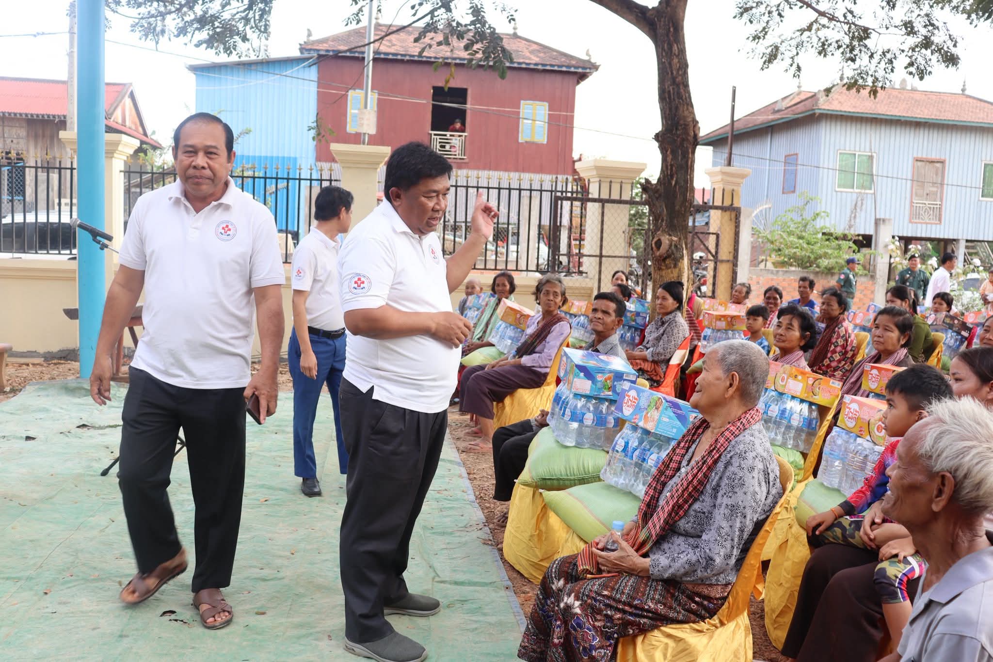 លោក ស៊ីម គង់ អភិបាលស្រុកជើងព្រៃ និងលោក ខាត់ សុខន ជំនួយការសម្ដេចតេជោ ហ៊ុន សែន អញ្ជើញជាអធិបតីភាព ក្នុងពិធីចែកអំណោយជូន ប្រជាពលរដ្ឋមានជីវភាពខ្វះខាត ៣០០គ្រួសារ ក្នុងមូលដ្ឋានឃុំព្រីងជ្រុំ ស្រុកជើងព្រៃ