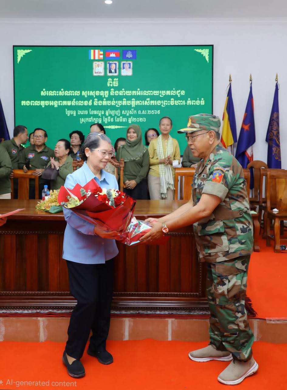 សម្តេចកិត្តិសង្គហបណ្ឌិត ម៉ែន សំអន ៖ សន្តិសុខ និងសន្តិភាព នឹងរួមចំណែកពន្លឿនការអភិវឌ្ឍសេដ្ឋកិច្ចជាតិ លើកកម្ពស់សុខុមាលភាព និងវិបុលភាពគ្រួសារនិងសង្គម===========សម្តេចកិត្តិសង្គហបណ្ឌិត ម៉ែន សំអន ឧត្តមប្រឹក្សាផ្ទាល់ព្រះមហាក្សត្រ និងជាប្រធានសមាគមនារីកម្ពុជា ដើម្បីសន្តិភាព និងអភិវឌ្ឍន៍ អញ្ជើញសួរសុខទុក្ខ និងនាំយកអំណោយប្រគល់ជូនកងពលតូចអន្តរាគមន៍លេខ៩ និងតំបន់ប្រតិបត្តិការសឹករងព្រះវិហារ-កំពង់ធំ ដែលបានរៀបចំនៅសាលាស្រុកជាំក្សាន្ត ខេត្តព្រះវិហារ និងអបអរសាទរខួបអនុស្សាវរីយ៍ លើកទី១១៥ ទិវានារីអន្តរជាតិ ៨មីនា ឆ្នាំ២០២៦ ក្រោមប្រធានបទ «សន្តិភាព និងសន្តិសុខសម្រាប់ស្រ្តី និងគ្រួសារ» នាព្រឹកថ្ងៃចន្ទ ខែផល្គុន ឆ្នាំម្សាញ់ សប្តស័ក ព.ស.២៥៦៩ ត្រូវនឹងថ្ងៃទី៩ ខែមីនា ឆ្នាំ២០២៦។ សម្តេចកិត្តិសង្គហបណ្ឌិត ក៏បានពាំនាំការផ្តាំផ្ញើនឹករលឹកពី សម្តេចអគ្គមហាសេនាបតីតេជោ ហ៊ុន សែន ប្រធានព្រឹទ្ធសភា និងសម្តេចកិត្តិព្រឹទ្ធបណ្ឌិត ប៊ុន រ៉ានី ហ៊ុនសែន ប្រធានកាកបាទក្រហមកម្ពុជា, សម្តេចមហាបវរធិបតី ហ៊ុន ម៉ាណែត នាយករដ្ឋមន្ត្រីនៃកម្ពុជា និងលោកជំទាវបណ្ឌិត ពេជ ចន្ទមុនី្ន ហ៊ុនម៉ាណែត ជូនដល់កងទ័ពទាំងអស់ដោយក្តីនឹករលឹក។ សម្តេចកិត្តិសង្គហបណ្ឌិត បានបន្តថា រាជរដ្ឋាភិបាលតែងតែយកចិត្តទុកដាក់ខ្ពស់ ចំពោះក្រុមគ្រួសារកងទ័ពទាំងអស់ ដើម្បីធានាថា ពួកគាត់ទទួលបានការគាំទ្រ និងជំនួយចាំបាច់ផ្សេងៗ ខណៈដែលស្វាមី កូន ឬបងប្អូនរបស់ពួកគាត់កំពុងបំពេញភារកិច្ចដ៏ថ្លៃថ្លាការពារជាតិ។ ជាមួយគ្នានេះដែរ សម្តេចកិត្តិសង្គហបណ្ឌិត ក៏បានណែនាំដល់អាជ្ញាធរគ្រប់ថ្នាក់បន្តយកចិត្តទុកដាក់ និងផ្ដល់ភាពកក់ក្ដៅជាប្រចាំដល់ក្រុមគ្រួសារកងទ័ពនៅក្នុងមូលដ្ឋានខេត្តរបស់ខ្លួន។ សម្តេចកិត្តិសង្គហបណ្ឌិត បានបន្តទៀតថាសម្រាប់ប្រធានបទ ទិវានារីអន្តរជាតិ ៨មីនា ឆ្នាំនេះ គឺ«សន្តិភាព និងសន្តិសុខសម្រាប់ស្រ្តី និងគ្រួសារ» គឺជាមូលដ្ឋានគ្រឹះនៃសុខុមាលភាពរបស់ស្ត្រី និងក្រុមគ្រួសារ ដែលផ្តល់នូវបរិយាកាសអំណោយផលអាចឱ្យពួកគេរស់នៅប្រកបដោយសុវត្ថិភាព គ្មានអំពើហិង្សា គ្មានការភ័យខ្លាច ការពារស្រ្តីនិងក្មេងស្រីពីអំពើហិង្សាទាក់ទងនឹងយេនឌ័រ ការពារសិទ្ធិស្រ្តីនិងក្មេងស្រី និងផ្តល់នូវកាលានុវត្តភាពពេញលេញសម្រាប់ស្រ្តីក្នុងការចូលរួមធ្វើសេចក្តីសម្រេចចិត្ត កសាង និងថែរក្សាសន្តិភាព និងសន្តិសុខទាំងបែបប្រពៃណី និងមិនប្រពៃណី ដែលទាំងនេះនឹងរួមចំណែកពន្លឿនការអភិវឌ្ឍសេដ្ឋកិច្ចជាតិ លើកកម្ពស់សុខុមាលភាព និងវិបុលភាពគ្រួសារនិងសង្គម។សម្ភារៈដែលបានប្រគល់ជូនថ្ងៃនេះ រួមមាន ៖ កងវរៈសេនាតូចអន្តរាគមន៍លេខ៣៩១, ៣៩២, ៣៩៣, ៣៩៤ និង៣៩៥ និងតំបន់