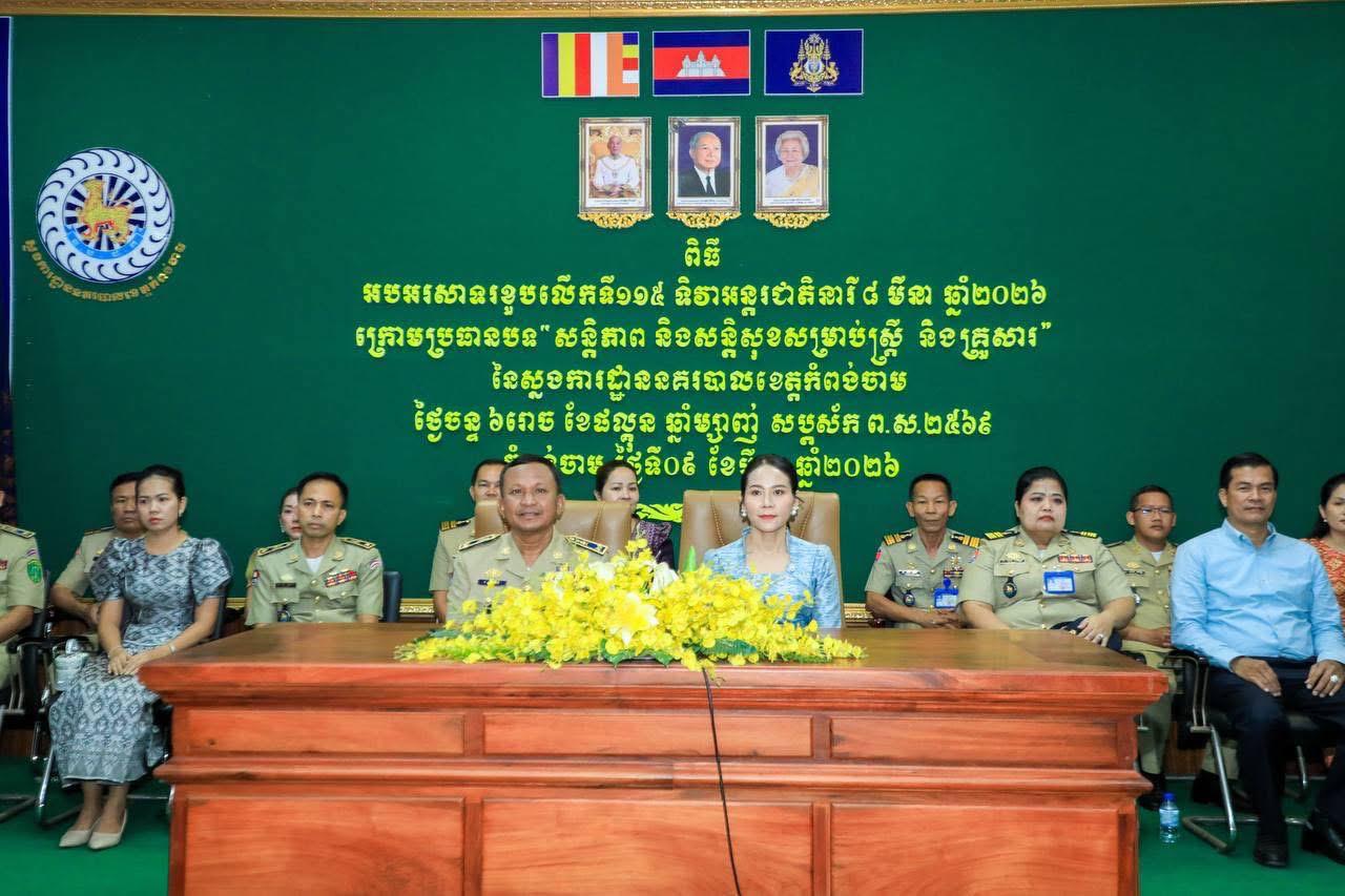 អបអរសាទរ ខួបលើកទី១១៥ ទិវាអន្តរជាតិនារី ៨មីនា ក្រោមប្រធានបទ “សន្តិភាព និងសន្តិសុខសម្រាប់ស្ត្រី និងគ្រួសារ”===================ដោយមានការយកចិត្តទុកដាក់ក្រោមការដឹកនាំរបស់ក្រសួងមហាផ្ទៃ អគ្គស្នងការដ្ឋាននគរបាលជាតិ និងគណៈបញ្ជាការឯកភាពរដ្ឋបាលខេត្តកំពង់ចាម នៅព្រឹកថ្ងៃចន្ទ ទី០៩ ខែមីនា ឆ្នាំ២០២៦នេះ លោកឧត្តមសេនីយ៍ទោ ហេង វុទ្ធី ស្នងការនគរបាលខេត្តកំពង់ចាម និងលោកស្រី ឈាង ស្រីនាថ ប្រធានកិត្តិយសអនុសាខាសមាគមនារីកម្ពុជាដើម្បីសន្តិភាព និងអភិវឌ្ឍន៍ស្នងការដ្ឋាននគរបាលខេត្តកំពង់ចាម បានអញ្ជើញជាអធិបតីភាព ក្នុងពិធីអបអរសាទរខួបលើកទី ១១៥ ទិវាអន្តរជាតិនារី ៨ មីនា ក្រោមប្រធានបទ “សន្តិភាព និងសន្តិសុខសម្រាប់ស្ត្រី និងគ្រួសារ” នៅសាលប្រជុំស្នងការដ្ឋាននគរបាលខេត្ត ។លោកឧត្តមសេនីយ៍ទោ ហេង វុទ្ធី បានថ្លែងក្នុងពិធីនេះថា ដោយការរៀបចំនេះពិធីអបអរសាទរ ទិវាអន្តរជាតិនារី ៨ មីនានេះ ស្របតាមផែនការយុទ្ធសាស្រ្តរបស់រាជរដ្ឋាភិបាល ក្រោមការដឹកនាំដ៏ឆ្លៀសវៃ ប្រកបដោយគតិបណ្ឌិតរបស់សម្តេចមហាបវរធិបតី ហ៊ុន ម៉ាណែត នាយករដ្ឋមន្ត្រី នៃព្រះរាជាណាចក្រកម្ពុជា បានដាក់ចេញនូវយុទ្ធសាស្ត្របញ្ចកោណ ដំណាក់កាលទី១ បន្តពង្រឹងក្របខណ្ឌ គោលនយោបាយនានា សំដៅលើកកម្ពស់សមភាពយេនឌ័រ ព្រមទាំងការបង្កើនភាពអង់អាច ក្លាហានដល់ស្ត្រី និងក្មេងស្រី ឱ្យកាន់តែមានភាពប្រសើរឡើងជាលំដាប់។ ជាមួយគ្នានេះ លោកឧត្តមសេនីយ៍ទោ ហេង វិទ្ធី ក៏បានលើកយកខ្លឹមសារដ៏មានអត្ដន័យរបស់លោកជំទាវបណ្ឌិត ពេជ ចន្ទមុន្នី ហ៊ុន ម៉ាណែត ដែលបានថ្លែងថា នៅក្នុងផ្ទះ បើមិនមានភរិយាខ្លាំង មិនមានម្តាយល្អ នោះ ស្វាមី និងឪពុក ក៏ពិបាកនឹងមានឱកាសគ្រប់គ្រាន់ ធ្វើរឿងជោគជ័យនៅខាងក្រៅដែរ ។ តួនាទីរបស់ស្ត្រី ពិតជាមានសារៈសំខាន់ និងមិនអាចខ្វះបាន ដោយត្រូវរ៉ាប់រងបន្ទុកគ្រួសារ និងមានការទទួលខុសត្រូវជាច្រើនទៀត បន្ថែមលើការងារនៅក្នុង អង្គភាព។ដូច្នេះហើយ បានជារាងរាល់ឆ្នាំ បានប្រារព្ធនូវ ទិវាអន្តរជាតិនារី ៨ មីនា ដើម្បីរំលឹកពីការតស៊ូ ទាមទារសិទ្ធិ សេរីភាព និងឆ្លុះបញ្ចាំងអំពីវឌ្ឍនភាព សមិទ្ធផល បញ្ហាប្រឈម ការប្តេជ្ញាចិត្ត និងវិធានការជា វិជ្ជមាននានា ក្នុងការសម្រេចបាននូវសមភាពយេនឌ័រ និងការបង្កើនភាពអង់អាច ដល់ស្ត្រី និងក្មេងស្រីគ្រប់រូប។ស្ថិតក្នុងឱកាសនោះដែរ លោកឧត្តមសេនីយ៍ស្នងការ និងភរិយា ក៏បានជូនវត្ថុអនុស្សាវរីយ៍ដល់កងកម្លាំងនគរបាលជានារី ចំនួន២៩២នាក់ ផងដែរ ៕