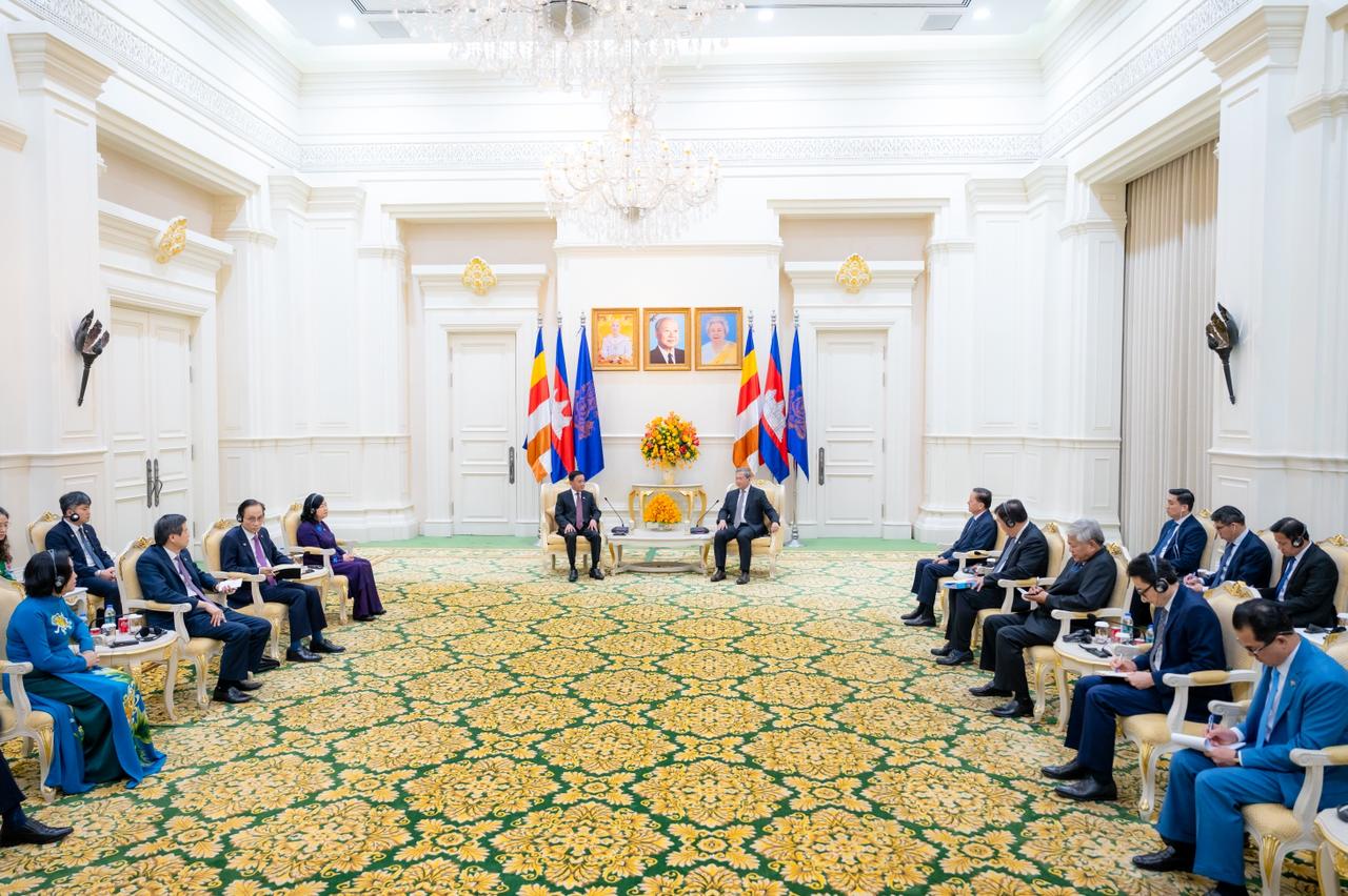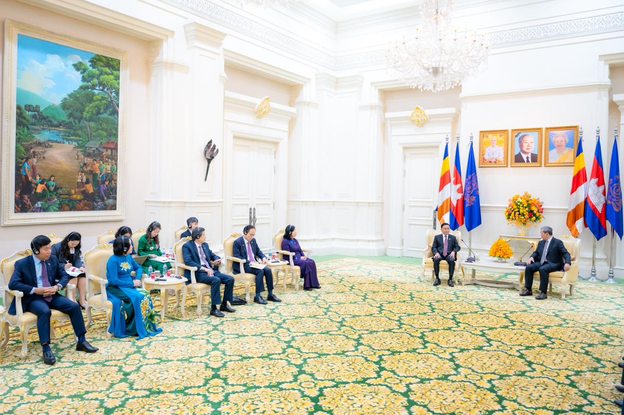 កម្ពុជា-វៀតណាម ប្ដេជ្ញាពង្រឹង និងពង្រីកកិច្ចសហប្រតិបត្តិការទ្វេភាគីបន្ថែមទៀតនាព្រឹកថ្ងៃទី១០ ខែមេសា ឆ្នាំ២០២៦, សម្ដេចមហាបវរធិបតី ហ៊ុន ម៉ាណែត នាយករដ្ឋមន្ត្រីនៃព្រះរាជាណាចក្រកម្ពុជា បានជួបពិភាក្សាការងារជាមួយ ឯកឧត្តម ត្រិន កឹមទូ សមាជិកការិយាល័យនយោបាយ និងជាសមាជិកប្រចាំការគណៈលេខាធិការមជ្ឈិមបក្សកុម្មុយនីស្តវៀតណាម នៅវិមានសន្តិភាព ។ក្នុងឱកាសនៃជំនួបនេះ, ឯកឧត្តម ត្រិន កឹមទូ បានសម្ដែងនូវការអរគុណយ៉ាងជ្រាលជ្រៅចំពោះសម្ដេចធិបតី ដែលបានឆ្លៀតពេលដ៏មមាញឹកជួបពិភាក្សាការងារជាមួយឯកឧត្តម ក្នុងឱកាសនៃដំណើរទស្សនកិច្ចនៅកម្ពុជា។ ឯកឧត្តមក៏បានពាំនាំនូវការផ្ដាំផ្ញើការសួរសុខទុក្ខពីសំណាក់ ឯកឧត្តម តូ ឡឹម (To Lam) អគ្គលេខាធិការបក្សកុម្មុយនីស្តវៀតណាម និងជាប្រធានរដ្ឋ និងឯកឧត្តម ឡេ មីញហ៊ឹង (Le Minh Hung) នាយករដ្ឋមន្ត្រីថ្មីវៀតណាមជូនចំពោះសម្តេចធីបតី ព្រមទាំងបានអបអរសាទរចំពោះសមិទ្ធផលនានាជាច្រើនដែលកម្ពុជាសម្រេចបាននាពេលកន្លងមក។ ឯកឧត្តមមានជំនឿជឿជាក់ថា ក្រោមការដឹកនាំប្រកបដោយចក្ខុវិស័យវែងឆ្ងាយរបស់សម្ដេចធិបតី កម្ពុជានឹងបន្តសម្រេចបាននូវជោគជ័យថ្មីៗបន្ថែមទៀតសម្រាប់ជាតិ និងប្រជាជនកម្ពុជា។ ទន្ទឹមនឹងនេះ ឯកឧត្តមក៏បានសម្តែងនូវការពេញចិត្ត និងវាយតម្លៃខ្ពស់ចំពោះភាពរីកចម្រើននៃទំនាក់ទំនង និងកិច្ចសហប្រតិបត្តិការដ៏ល្អរវាងប្រទេសទាំងពីរ ដែលកំពុងឈានចូលដល់ដំណាក់កាលថ្មី។ ជាការឆ្លើយតប, សម្ដេចធិបតីបានសម្ដែងនូវការស្វាគមន៍យ៉ាងកក់ក្ដៅចំពោះឯកឧត្តម និងគណៈប្រតិភូ និងបានអបអរសាទរចំពោះភាពជោគជ័យនៃមហាសន្និបាតលើកទី១៤ របស់បក្សកុម្មុយនីស្ដវៀតណាម ព្រមទាំងការបោះឆ្នោតជ្រើសរើសថ្នាក់ដឹកនាំ វៀតណាម នាពេលថ្មីៗនេះ។ សម្ដេចធិបតីបានវាយតម្លៃខ្ពស់ចំពោះកំណើនសេដ្ឋកិច្ច និងសមិទ្ធផលធំៗដែលបក្ស និងរដ្ឋវៀតណាមសម្រេចបាន។ ក្នុងឱកាសនោះ, សម្ដេចធិបតីក៏បានផ្ដាំផ្ញើនូវការសួរសុខទុក្ខជូនចំពោះឯកឧត្តមអគ្គលេខាធិការបក្ស និងជាប្រធានរដ្ឋ និងឯកឧត្តមនាយករដ្ឋមន្ត្រីថ្មីនៃប្រទេសវៀតណាមផងដែរ។ សម្ដេចធិបតីក៏បានវាយតម្លៃខ្ពស់ចំពោះភាពរីកចម្រើននៃទំនាក់ទំនង និងកិច្ចសហប្រតិបត្តិការដ៏ល្អរវាងប្រទេសទាំងពីរ និងបានបញ្ជាក់ជាថ្មីនូវការបន្តពង្រឹង និងពង្រីកទំនាក់ទំនង និងកិច្ចសហប្រតិបត្តិការរវាងប្រទេសទាំងពីរលើគ្រប់វិស័យឱ្យកាន់តែរីកចម្រើន និងរឹងមាំបន្ថែមទៀត។សម្ដេចធិបតី និងឯកឧត្តម ត្រិន កឹមទូ ក៏បានពិភាក្សា និងផ្លាស់ប្ដូរយោបល់អំពីការជំរុញកិច្ចសហប្រតិបត្តិការលើវិស័យសំខាន់ៗមួយចំនួន រួមមាន៖ វិស័យនយោបាយ, សេដ្ឋកិច្ច, ពាណិជ្ជកម្ម, សន្ដិសុខ និងការពារជាតិ, អប់រំ និងការតភ្ជាប់រវាងប្រជាជន និងប