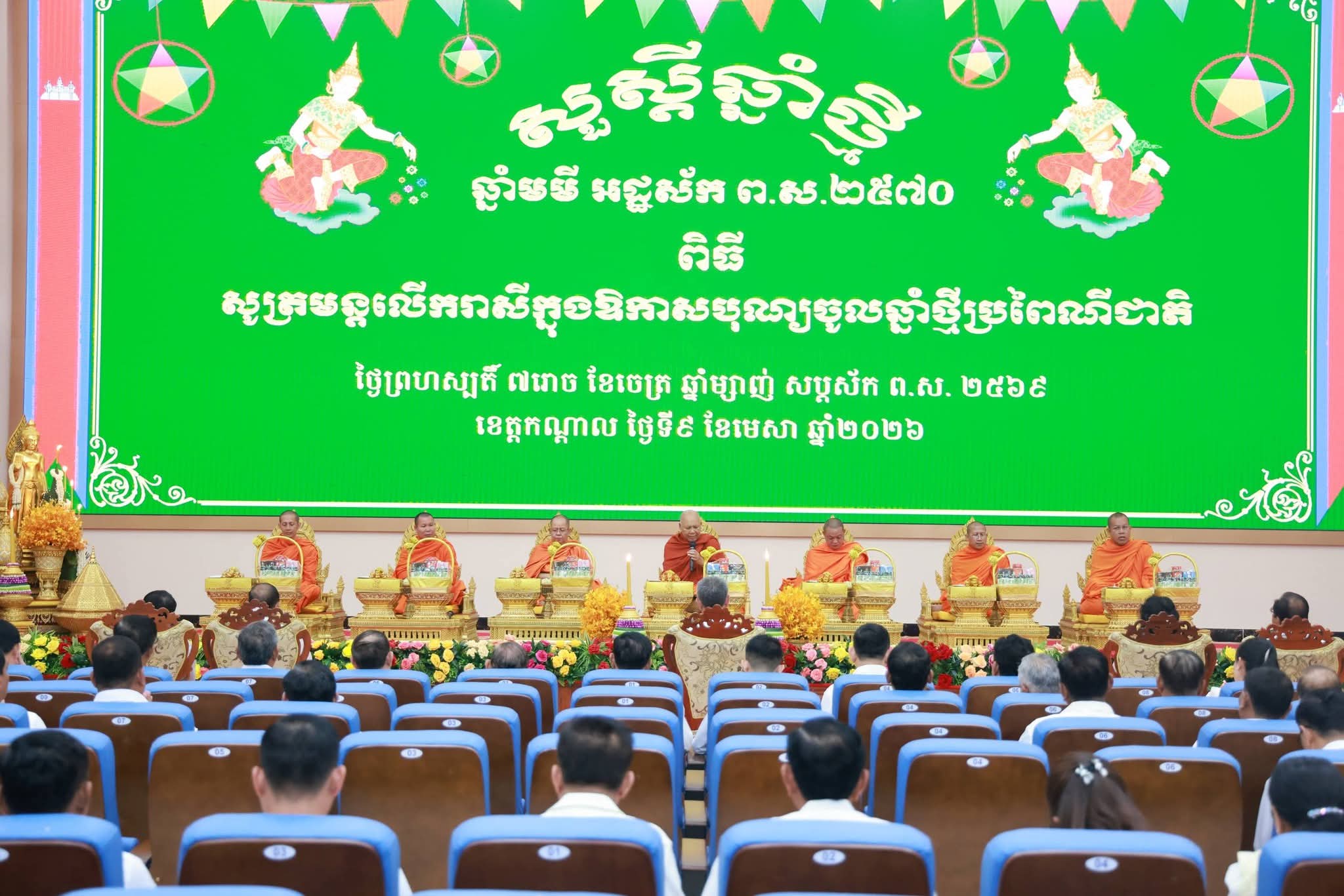 រដ្ឋបាលខេត្តកណ្ដាល រៀបចំពិធីសូត្រមន្តលើករាសី ក្នុងឱកាសបុណ្យចូលឆ្នាំថ្មីប្រពៃណីជាតិខ្មែរ ក្រោមអធិបតីភាពឯកឧត្ដម នូ សាខន ប្រធានក្រុមប្រឹក្សាខេត្តកណ្តាល និងលោកជំទាវ និងឯកឧត្ដម គួច ចំរើន អភិបាលខេត្តកណ្ដាលរដ្ឋបាលខេត្តកណ្តាលរៀបចំសូត្រមន្តលើករាសី ចម្រើនព្រះបរិត្ត ប្រសិទ្ធពរជ័យសិរីសួស្ដី ជ័យមង្គល វិបុលសុខក្នុងឱកាសពិធីបុណ្យចូលឆ្នាំថ្មីប្រពៃណីជាតិខ្មែរ! ខេត្តកណ្តាល៖នារសៀលថ្ងៃទី០៩ ខែមេសា ឆ្នាំ២០២៦ រដ្ឋបាលខេត្តកណ្ដាលរៀបចំពិធីសូត្រមន្តលើករាសីក្នុងឱកាសបុណ្យចូលឆ្នាំថ្មីប្រពៃណីជាតិខ្មែរ ក្រោមអធិបតីភាពឯកឧត្ដម នូ សាខន ប្រធានក្រុមប្រឹក្សាខេត្តកណ្តាល និងលោកជំទាវ និងឯកឧត្ដម គួច ចំរើន អភិបាល នៃគណៈអភិបាលខេត្តកណ្ដាល។ ថ្នាក់ដឹកនាំខេត្ត បានធ្វើកិច្ចនមស្ការព្រះរតនត្រ័យ ថ្វាយគ្រឿងសក្ការបូជា ទេយ្យទាន និងទេយ្យវត្ថុ ដល់ព្រះសង្ឃព្រមទាំងនិមន្តព្រះសង្ឃសូត្រមន្តចម្រើនព្រះបរិត្ត ពុទ្ធជ័យមង្គល សិរីសួស្តី វិបុលសុខ សមាទានសីលទៅតាមទំនៀមទម្លាប់ប្រពៃណីខ្មែរ និងព្រះពុទ្ធសាសនា។ សូមទេវតាឆ្នាំថ្មីព្រះនាង រាក្យសាទេវី បុត្រីទីបីកបិលមហាព្រហ្ម ជួយប្រោះព្រំប្រសិទ្ធពរជ័យសិរីសួស្តី វិបុលសុខមហាប្រសើរ កើតមានដល់ថ្នាក់ដឹកនាំ ថ្នាក់ដឹកនាំ កងកម្លាំង មន្រ្តីរាជការ និងប្រជាពលរដ្ឋទូទាំងខេត្តកណ្តាល សូមមានសុខភាពល្អ កម្លាំងពលំមាំមួន សេចក្តីសុខ សេចក្តីចម្រើន បញ្ញាភ្លឺថ្លា អាយុយឺនយូរ គ្រប់ក្រុមគ្រួសារ៕