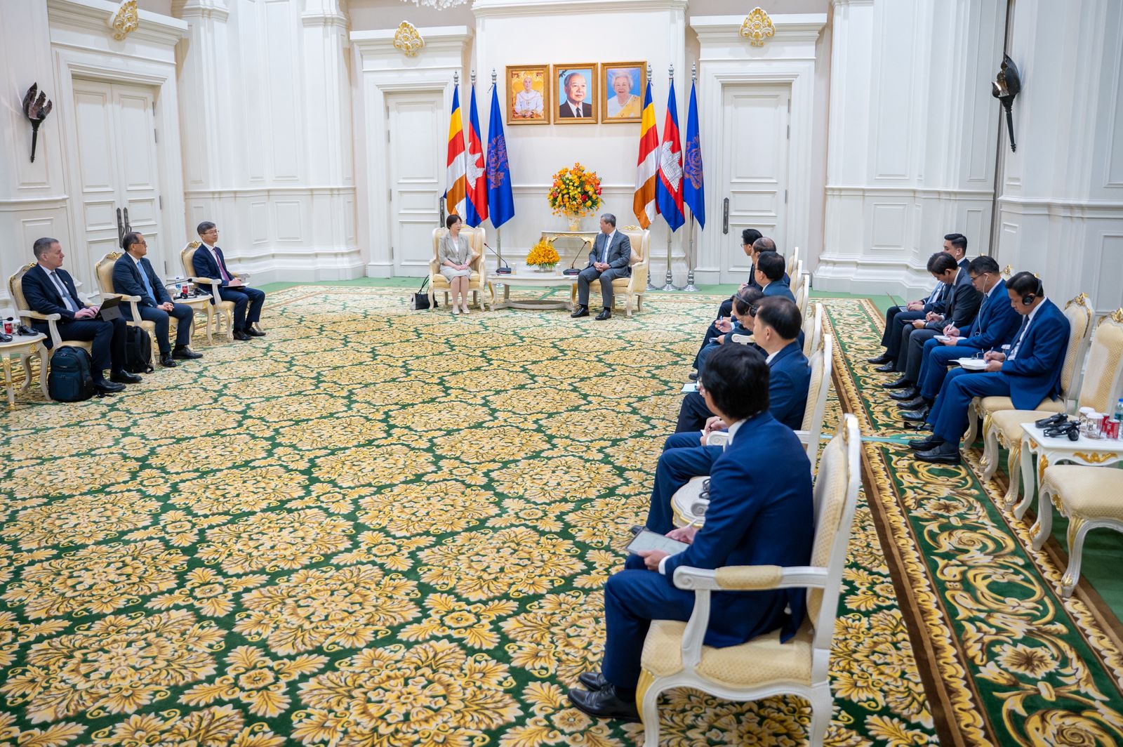 ប្រធានធនាគារ AIIB ប្ដេជ្ញាបន្តគាំទ្រដល់គម្រោងអភិវឌ្ឍន៍នានារបស់កម្ពុជា នាព្រឹកថ្ងៃទី១ ខែមេសា ឆ្នាំ២០២៦ នៅវិមានសន្តិភាព សម្ដេចមហាបវរធិបតី ហ៊ុន ម៉ាណែត នាយករដ្ឋមន្ត្រីនៃព្រះរាជាណាចក្រកម្ពុជា បានអនុញ្ញាតឱ្យ លោកជំទាវ Zou Jiayi ប្រធានធនាគារវិនិយោគហេដ្ឋារចនាសម្ព័ន្ធអាស៊ី (AIIB) ចូលជួបសម្តែងការគួរសម និងពិភាក្សាការងារ។ ក្នុងឱកាសនៃជំនួបនេះ លោកជំទាវប្រធានធនាគារ AIIB បានកោតសរសើរសមិទ្ធផល និងការរីកចម្រើនយ៉ាងរហ័សនៅកម្ពុជា និងបានវាយតម្លៃខ្ពស់ចំពោះការដាក់ចេញនូវគោលដៅអភិវឌ្ឍន៍ជាតិរយៈពេលវែងរបស់រាជរដ្ឋាភិបាល។ លោកជំទាវបានថ្លែងអំណរគុណដល់រាជរដ្ឋាភិបាលកម្ពុជា ក៏ដូចជាក្រសួង-ស្ថាប័នពាក់ព័ន្ធ ដែលតែងតែផ្តល់ទំនុកចិត្ត និងគាំទ្រដល់ធនាគារ AIIB នាពេលកន្លងមក។ លោកជំទាវបានគោរពជម្រាបជូនសម្តេចធិបតីអំពីគោលនយោបាយអាទិភាព ៤ របស់ធនាគារ ដែលរួមមាន៖ ការប្រែប្រួលអាកាសធាតុ និងថាមពលស្អាត, ការតភ្ជាប់ហេដ្ឋារចនាសម្ព័ន្ធក្នុងតំបន់ និងឆ្លងប្រទេស, ការអភិវឌ្ឍហេដ្ឋារចនាសម្ព័ន្ធគាំទ្របច្ចេកវិទ្យា, និង ការអភិវឌ្ឍវិស័យឯកជន។ លោកជំទាវបានសង្កត់ធ្ងន់ថា គោលនយោបាយអាទិភាពទាំងនេះមានសង្គតិភាព ទៅនឹងចក្ខុវិស័យអភិវឌ្ឍន៍របស់កម្ពុជា។ លោកជំទាវក៏បានបញ្ជាក់ដែរថា កម្ពុជាគឺជាដៃគូយុទ្ធសាស្ត្រដ៏សំខាន់បំផុតមួយ និងប្ដេជ្ញាបន្តពង្រឹងកិច្ចសហប្រតិបត្តិការ និងគាំទ្រដល់គម្រោងអភិវឌ្ឍន៍នានា នៅកម្ពុជា ឱ្យកាន់តែរីកចម្រើនថែមទៀត។ ជាការឆ្លើយតប សម្ដេចធិបតីបានសម្តែងការស្វាគមន៍ និងអបអរសាទរយ៉ាងកក់ក្តៅចំពោះលោកជំទាវដែលត្រូវបានតែងតាំងជាប្រធានធនាគារ AIIB។ សម្តេចធិបតីមានជំនឿយ៉ាងមុតមាំថា ក្រោមការដឹកនាំរបស់លោកជំទាវ កិច្ចសហប្រតិបត្តិការរវាងកម្ពុជា និង ធនាគារ AIIB នឹងកាន់តែរឹងមាំ និងមានផ្លែផ្កាបន្ថែមទៀត។ សម្តេចធិបតីបានគូសបញ្ជាក់ថា គោលនយោបាយអាទិភាពទាំង ៤ របស់ធនាគារ AIIB ឆ្លើយតបទៅនឹងយុទ្ធសាស្ត្រអភិវឌ្ឍន៍ និងវិស័យអាទិភាពរបស់កម្ពុជា។ សម្ដេចធិបតីបានបន្ថែមទៀតថា ចំពោះការអភិវឌ្ឍថាមពលស្អាត រាជរដ្ឋាភិបាលកម្ពុជាបានដាក់គោលដៅជំរុញការប្រើប្រាស់ថាមពលកកើតឡើងវិញឱ្យបាន៧០% នៅឆ្នាំ២០៣០ និងបានដាក់ចេញនូវគោលនយោបាយលើកទឹកចិត្តឱ្យប្រើប្រាស់រថយន្តអគ្គិសនី (EV) ដើម្បីរួមចំណែកឈានទៅសម្រេចបាននូវគោលដៅ អព្យាក្រឹតកាបូន នាពេលអនាគត។ ជាមួយគ្នានេះ សម្ដេចធិបតីក៏បានគូសបញ្ជាក់ពីការកែសម្រួលវិធានការចាំបាច់មួយចំនួន ក្នុងវិស័យឡូជីស្ទិក និងថាមពល ដើម្បីពង្រឹងសមត្ថភាពប្រកួតប្រជែងរបស់កម្ពុជាក្នុងតំបន់ និងសកលលោក។ មុននឹងបញ្ចប់ សម្ដេចធិបតីបានលើកទឹកចិត្តឱ្យធនាគារ AIIB បន្តពិភាក្សា និងផ្សារភ្ជាប់ទំនាក់ទំនងឱ្យកាន់តែជិ