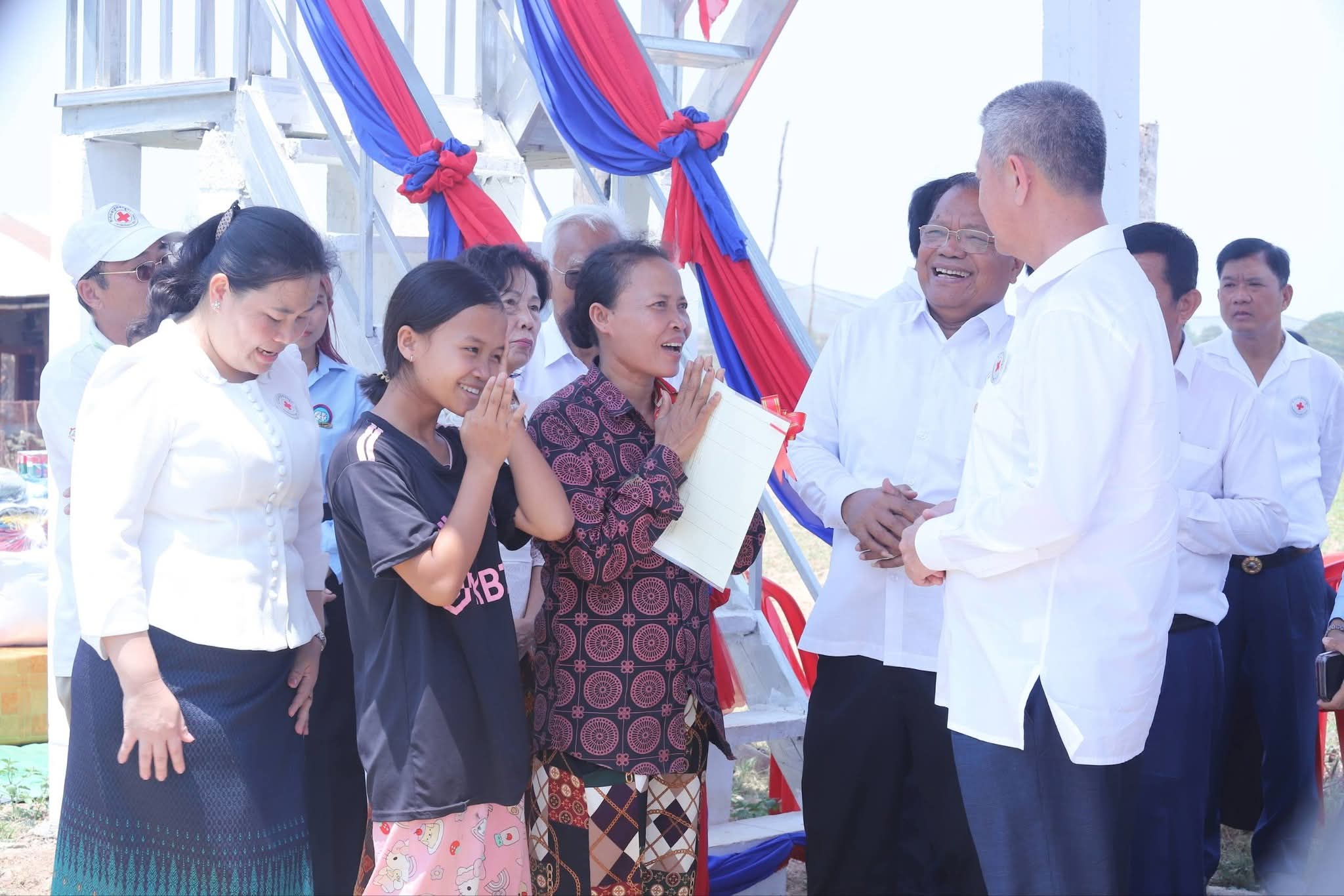 ជាកិច្ចឆ្លើយតបលោកស្រី រ៉ាន់ វ៉ិត តំណាងឱ្យក្រុមគ្រួសារងាយរងគ្រោះ បានថ្លែងអំណរគុណយ៉ាងជ្រាលជ្រៅបំផុតចំពោះឯកឧត្តម គួច ចំរើន ប្រធានគណៈកម្មាធិការសាខា ជាពិសេសសម្តេចកិត្តិព្រឹទ្ធបណ្ឌិត ប៊ុន រ៉ានី ហ៊ុនសែន ដែលបានគិតគូរ និងជួយឧបត្ថម្ភជាបន្តបន្ទាប់ ជាពិសេសផ្ទះថ្មី១ខ្នងនេះ ដែលមិននឹកស្មានដល់ថានឹងមានជម្រកយ៉ាងសមរម្យស្រស់ស្អាតបែបនេះទេក្នុង១ជីវិតរបស់គាត់។ លោកស្រី បានសន្យានឹងខិតខំថែរក្សាផ្ទះថ្មីនេះឱ្យបានល្អ គង់វង្សយូរអង្វែង ជាពិសេសមិនធ្វើឱ្យអ្នកម្តាយមនុស្សធម៌ សម្តេចកិត្តិព្រឹទ្ធបណ្ឌិត ប៊ុន រ៉ានី ហ៊ុនសែន ក៏ដូចជាសប្បុរសជនដទៃទៀតខកបំណងឡើយ។ ដើម្បីជួយសម្រាលដល់ជីវភាពរស់នៅប្រចាំថ្ងៃ សាខាកាកបាទក្រហមកម្ពុជាខេត្ត បានផ្តល់ជូន អំណោយសម្រាប់ក្នុងពិធីប្រគល់ផ្ទះនេះរួមមាន៖ អង្ករ ២០០គីឡូក្រាម, មី ២កេស, ទឹកត្រី ២យួរ, ទឹកស៊ីអ៊ីវ ២យួរ, ត្រីខ ២យួរ, ទឹកបរិសុទ្ធ ២កេស, សម្ភារៈផ្ទះបាយ ១ឈុត, ឆៃប៉ូវ ២គីឡូក្រាម, ឃីត ២កញ្ចប់, សម្ភារៈផ្ទះបាយ ១ឈុត, និងថវិកា ១,០០០,០០០ លានរៀល (មួយលានរៀលគត់)៕
