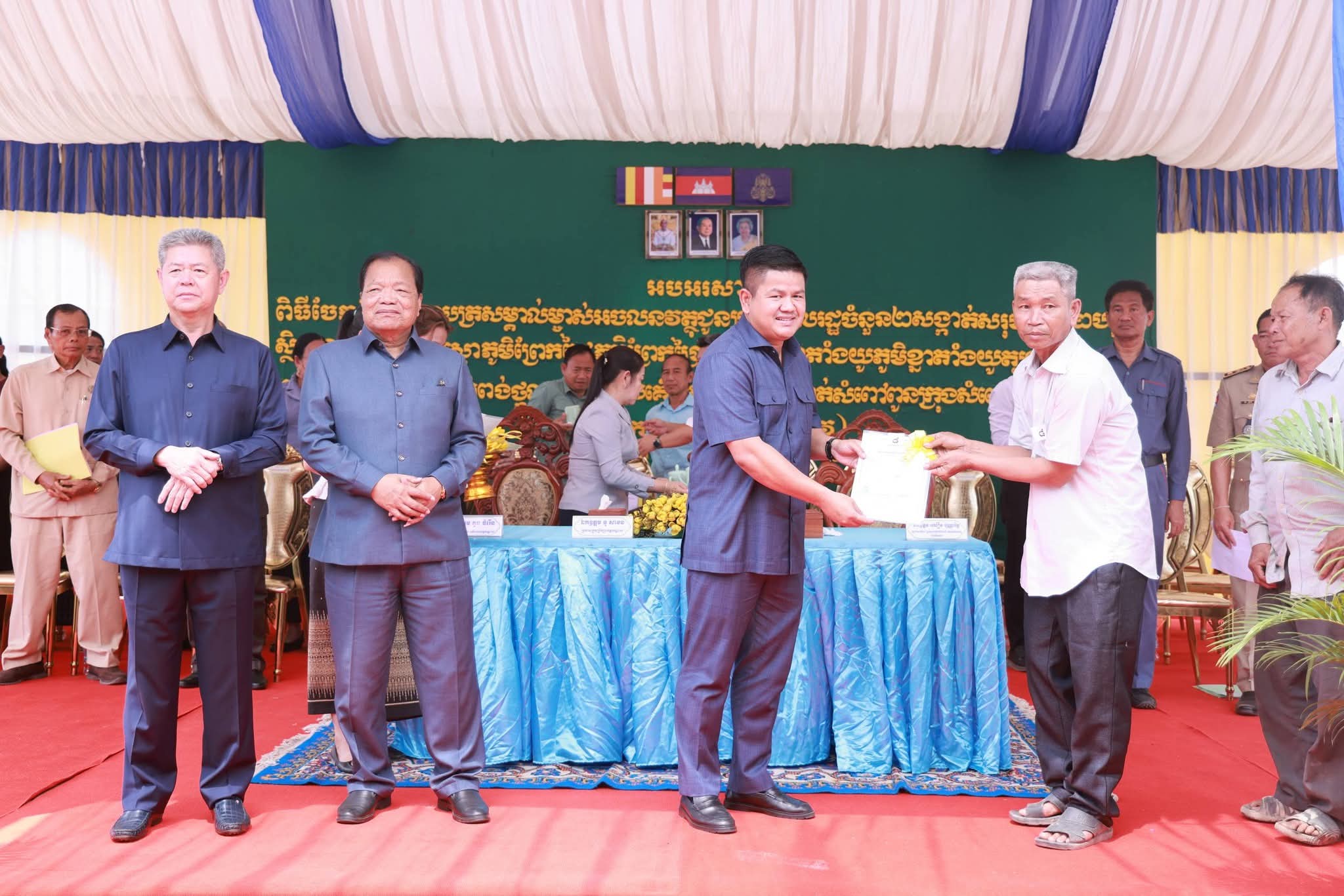 ឯកឧត្តម គួច ចំរើន អភិបាលខេត្តកណ្ដាល អំពាវនាវដល់បងប្អូនប្រជាពលរដ្ឋ ដែលជាម្ចាស់កម្មសិទ្ធដីធ្លី ស្ថិតក្នុងភូមិចំនួន ៩ នៃសង្កាត់ព្រែកជ្រៃ និងសង្កាត់សំពៅពូន ក្រុងសំពៅពូន ខេត្តកណ្ដាល សូមអញ្ជើញមកយកបណ្ណកម្មសិទ្ធិដីធ្លី(ប្លង់រឹង)របស់បងប្អូន នៅការិយាល័យច្រកចេញចូលតែមួយ សាលាក្រុងសំពៅពូន។ ការអំពាវនាវនេះធ្វើឡើងនៅក្នុងពិធីចែកវិញ្ញាបណ្ណបត្រសម្គាល់ម្ចាស់អចលនវត្ថុជូនប្រជាពលរដ្ឋចំនួន ០៩ភូមិ សរុបចំនួន ៤៦៨២បណ្ណ នៅភូមិជ្រោយស្នោ ភូមិព្រែកជ្រៃ ភូមិខ្នារតាំងយូ ភូមិព្រែកជ្រៃក្រៅ ភូមិខ្នាតាំងយូត្បូង ភូមិព្រែកទន្លា សង្កាត់ព្រែកជ្រៃ, ភូមិកំពង់ថ្កុល ភូមិកប៉ាល់គឿង និងភូមិជ្រៃធំ សង្កាត់សំពៅពូន ក្រុងសំពៅពូន ខេត្តកណ្តាល ក្រោមអធិបតីភាពឯកឧត្តម ឈឿន ប៊ុណ្ណារ័ត្ន រដ្ឋលេខាធិការក្រសួងរៀបចំដែនដី នគរូបនីយកម្ម និងសំណង់ និងជាប្រធានក្រុមការងារសម្របសម្រួលដោះស្រាយវវិវាទដីធ្លីខេត្តកណ្តាល ឯកឧត្តម នូ សាខន ប្រធានក្រុមប្រឹក្សាខេត្តកណ្ដាល និងឯកឧត្តម គួច ចំរើន អភិបាល នៃគណៈអភិបាលខេត្តកណ្តាល នាព្រឹកថ្ងៃទី០១ ខែមេសា ឆ្នាំ២០២៦ នៅសាលាក្រុងសំពៅពូន។ ឯកឧត្តម គួច ចំរើន អភិបាលខេត្តកណ្ដាល បន្តថា៖ ការផ្ដល់បានកម្មសិទ្ធិនៅពេលនេះ គឺផ្ដល់ជូនប្រជាពលរដ្ឋនៅកាយាល័យចាកចេញចូលតែមួយរបស់សាលាក្រុងសំពៅពូន ដោយត្រូវផ្ដល់បានកម្មសិទ្ធិទាំងនេះ ជូនប្រជាពលរដ្ឋរហូតអស់បណ្ណកម្មសិទ្ធិ។ ដូច្នេះសូមបងប្អូនប្រជាពលរដ្ឋដែលជាម្ចាស់កម្មសិទ្ធិដីធ្លីស្ថិតនៅភូមិខាងលើ សូមមកទទួលបានកម្មសិទ្ធិដីធ្លីនេះឱ្យបានគ្រប់ៗគ្នា។ ឯកឧត្តមអភិបាលខេត្ត បន្ថែមថា៖ ការផ្ដល់បណ្ណកម្មសិទ្ធិនៅការិយាល័យច្រកចេញចូលតែមួយនេះ គឺប្រជាពលរដ្ឋមិនតម្រូវឱ្យកាន់ឯកសាររត់ការទៅកន្លែងណាផ្សេងឡើយ គឺមកទទួលនូវការិយាល័យច្រកចេញចូលតែមួយ ហើយរាល់ឯកសារទាំងអស់ គឺមន្ត្រីជាអ្នកសម្របសម្រួល ធ្វើជូនប្រជាពលរដ្ឋដោយមិនគិតលុយឡើយ តែប្រជាពលរដ្ឋនៅតែមានកាតព្វកិច្ច ក្នុងការបង់ពន្ធជូនរដ្ឋ តាមការកំណត់របស់រដ្ឋ។ ជាមួយគ្នានេះដែរ ឯកឧត្តមអភិបាលខេត្តកណ្ដាល បានណែនាំដល់មន្ត្រីសុរិយោដីទាំងអស់ ត្រូវធានាថារាល់បានកម្មសិទ្ធិទាំងអស់ ត្រូវបានផ្ដល់ជូនដល់ដៃម្ចាស់កម្មសិទ្ធិករបានគ្រប់ៗគ្នា ហើយមិនត្រូវរុញឯកសារឱ្យប្រជាពលរដ្ឋ ធ្វើការរត់ឯកសារដោយផ្ទាល់នោះទេ ហើយក្នុងករណីដែលមានមន្ត្រីឱ្យឯកសារទៅប្រជាពលរដ្ឋ ដើម្បីរត់ការ ឯកឧត្តមអភិបាលខេត្តកណ្ដាល សូមឱ្យប្រជាពលរដ្ឋរាយការណ៍ជូនលោកផ្ទាល់ ដើម្បីមានវិធានការដោះស្រាយបានទាន់ពេលវេលា។ឯកឧត្តមអភិបាលខេត្ត បានផ្ដាំផ្ញើដល់បងប្អូនប្រជាពលរដ្ឋ នៅពេលទទួលបានបណ្ណហើយ សូមគិតគូទុកដាក់ថែរក្សាឱ្យបានល្អ 