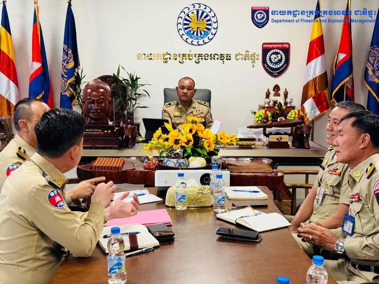 លោកឧត្តមសេនីយ៍ទោ សែម គន្ធា ប្រធាននាយកដ្ឋានគ្រប់គ្រងអាវុធ ជាតិផ្ទុះ អញ្ជើញដឹកនាំកិច្ចប្រជុំត្រួតពិនិត្យមើលវឌ្ឍនភាពការងារ និងផ្តល់អនុសាសន៍តម្រង់ទិសសម្រាប់ការងារជំនាញរបស់ការិយាល័យគ្រប់គ្រងគ្រឿងផ្ទុះ =============ទីស្តីការក្រសួងមហាផ្ទៃ៖ ដោយទទួលបានការអនុញ្ញាតដ៏ខ្ពង់ខ្ពស់ពី ឯកឧត្តម នាយឧត្តមសេនីយ៍ ស ថេត អគ្គស្នងការនគរបាលជាតិ ឱ្យលោកឧត្តមសេនីយ៍ទោ សែម គន្ធា ប្រធាននាយកដ្ឋានគ្រប់គ្រងអាវុធ ជាតិផ្ទុះ អញ្ជើញដឹកនាំកិច្ចប្រជុំត្រួតពិនិត្យមើលវឌ្ឍនភាពការងារ និងផ្តល់អនុសាសន៍តម្រង់ទិសសម្រាប់ការងារជំនាញរបស់ការិយាល័យគ្រប់គ្រងគ្រឿងផ្ទុះ ដោយមានការចូលរួមពីលោកឧត្តមសេនីយ៍ វរសេនីយ៍ អនុប្រធាននាយកដ្ឋាន នាយ-នាយរងការិយាល័យ និងមន្ត្រីពាក់ព័ន្ធ ចំណុះនាយកដ្ឋានគ្រប់គ្រងអាវុធ ជាតិផ្ទុះ នាព្រឹកថ្ងៃសុក្រ ទី៣ ខែមេសា ឆ្នាំ២០២៦ នៅសាលប្រជុំនាយកដ្ឋានគ្រប់គ្រងអាវុធ ជាតិផ្ទុះ។