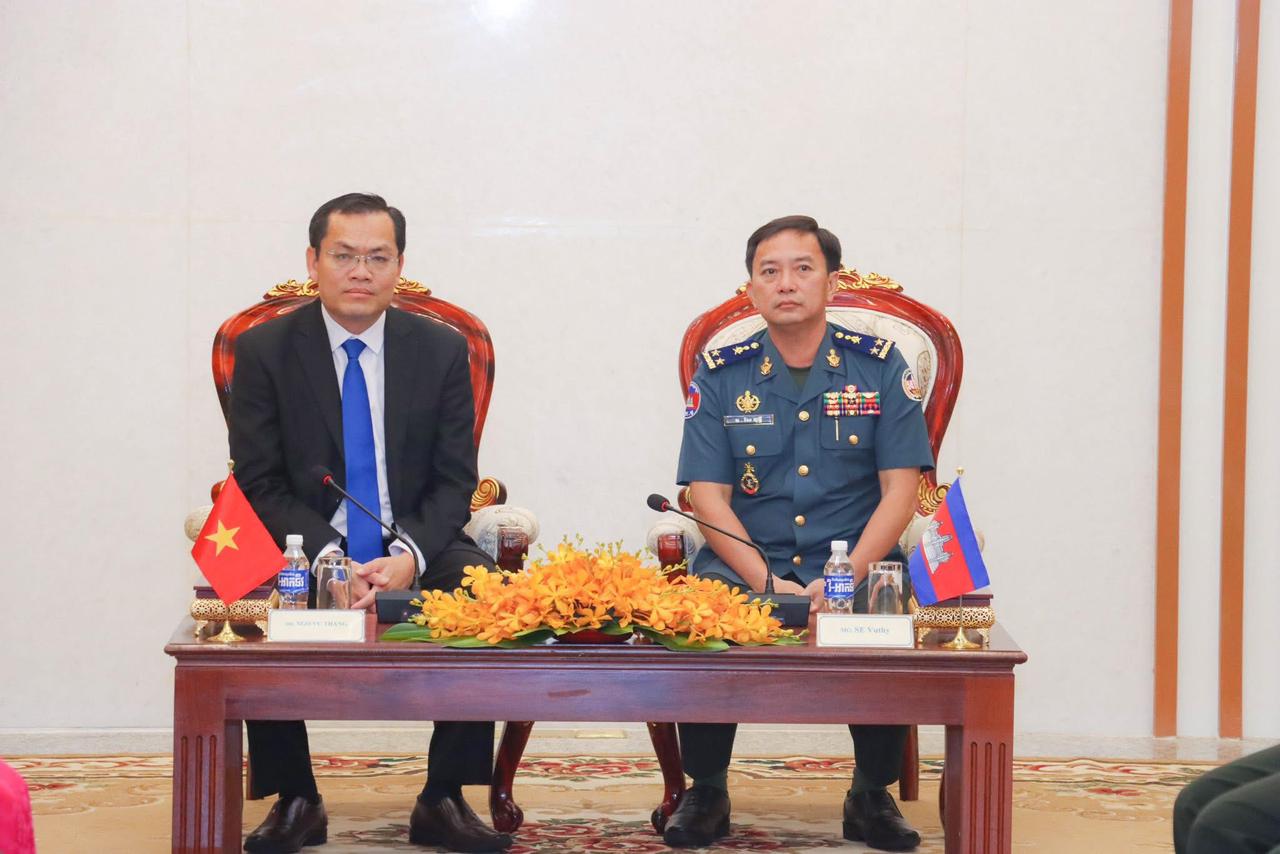 ឧត្តមសេនីយ៍ទោ សែ វុទ្ធី ទទួលជួបសម្តែងការគួរសមពីប្រតិភូខេត្តកាំម៉ៅ=============ភ្នំពេញ៖ នៅបញ្ជាការដ្ឋានកងរាជអាវុធហត្ថលើផ្ទៃប្រទេស នារសៀលថ្ងៃពុធ ទី៨ ខែមេសា ឆ្នាំ២០២៦ លោកឧត្តមសេនីយ៍ទោ សែ វុទ្ធី មេបញ្ជាការរង កងរាជអាវុធហត្ថលើផ្ទៃប្រទេស តំណាង លោកនាយឧត្តមសេនីយ៍ សៅ សុខា អគ្គមេបញ្ជាការរង នៃកងយោធពលខេមរភូមិន្ទ មេបញ្ជាការ កងរាជអាវុធហត្ថលើផ្ទៃប្រទេស បានទទួលជួប ឯកឧត្តម ង វូថាំង អភិបាលរងខេត្តកាំម៉ៅ នៃសាធារណរដ្ឋសង្គមនិយមវៀតណាម អញ្ជើញចូលជួបសម្តែងការគួរសម ពិភាក្សរការងារ និងជូនពរឆ្នាំថ្មីប្រពៃណីជាតិខ្មែរដែលនឹងមកដល់នាពេលខាងមុខនេះ ពិសេសដើម្បីរឹតចំណងសាមគ្គីភាព សហប្រតិបត្តិការឱ្យកាន់តែរឹងមាំថែមទៀត។